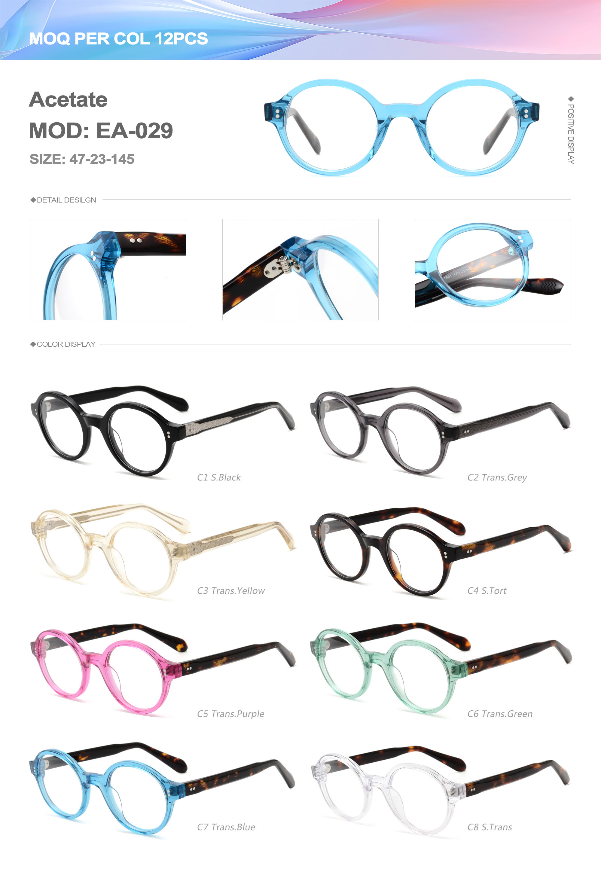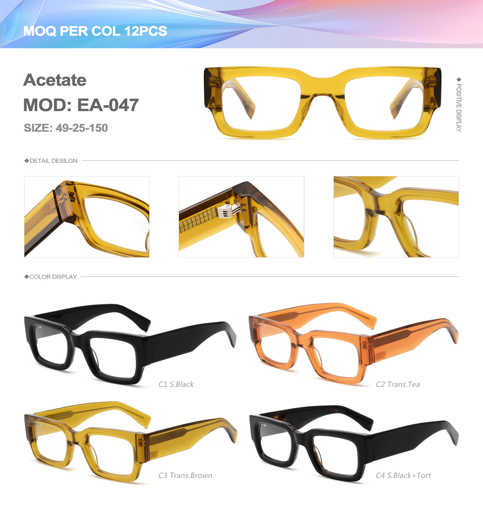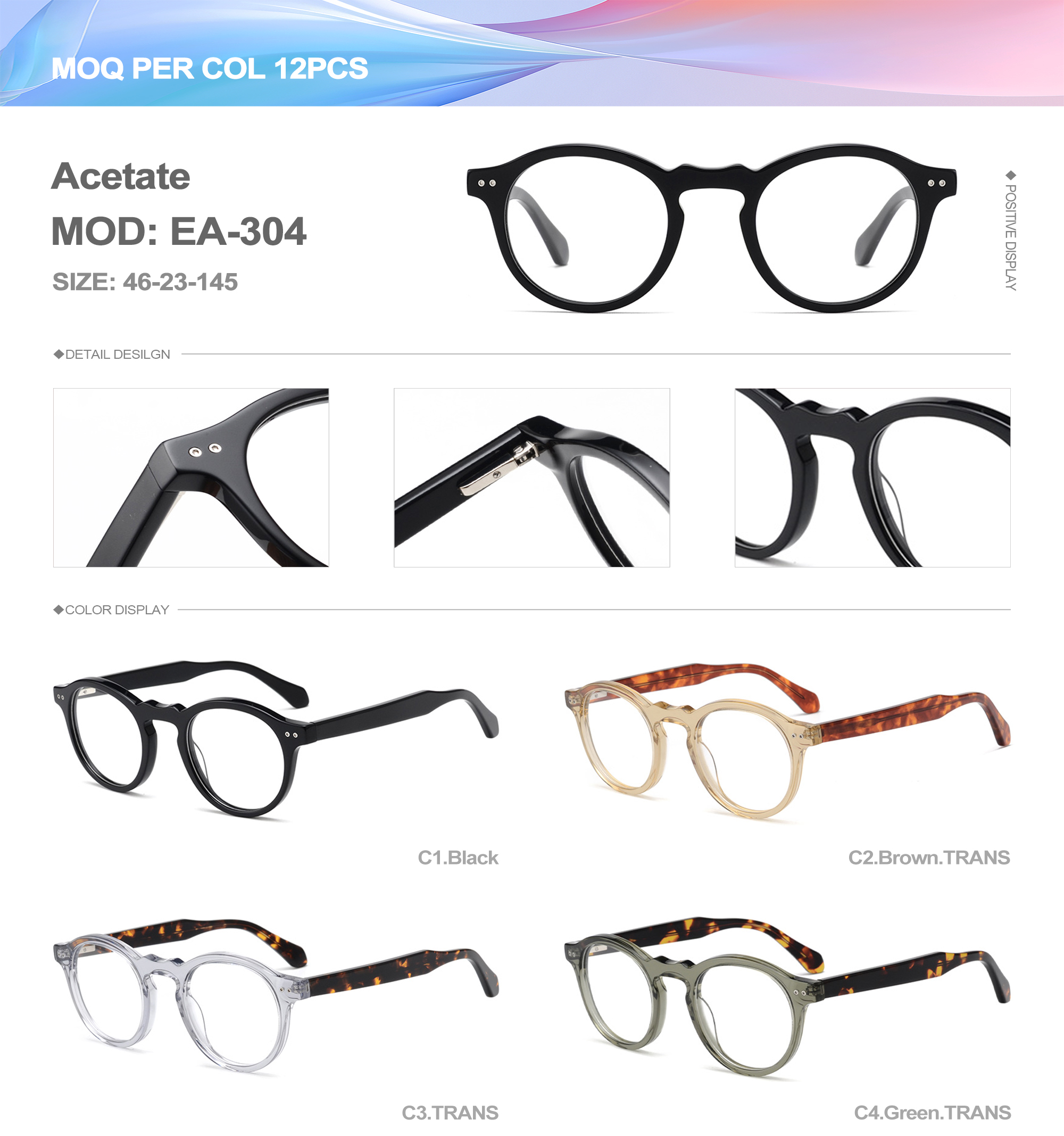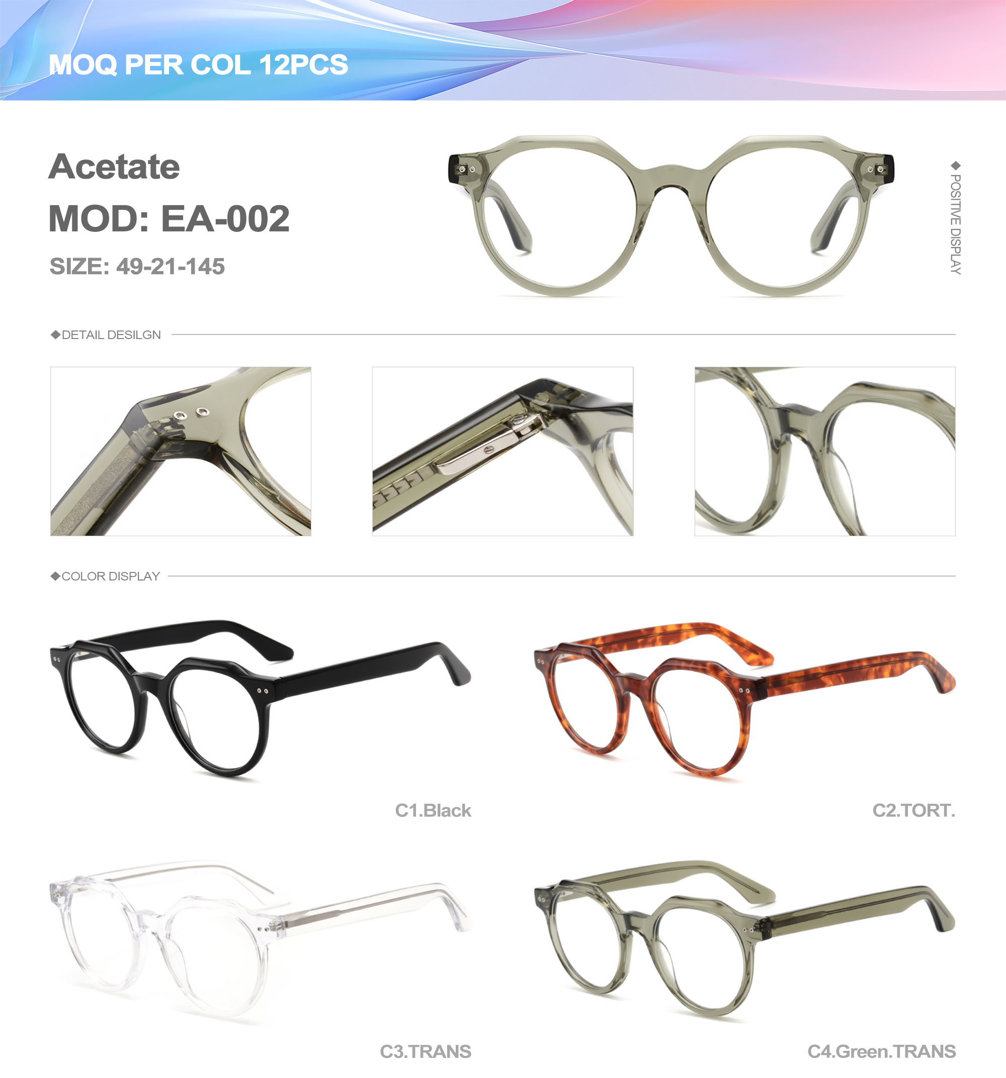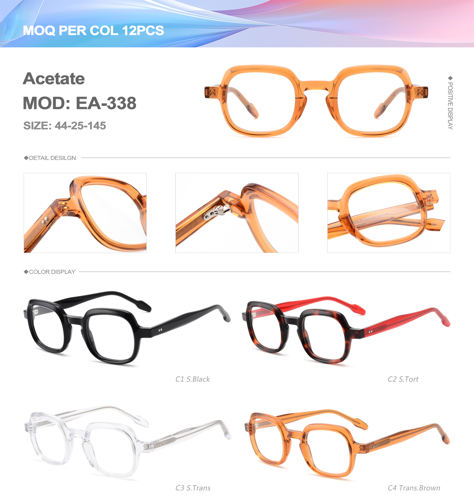 Acetate is an ideal material for eyeglass frames, it is durable and does not cause skin irritation. The acetate frame is made with a unique technology that turns plant material into durable plastic.