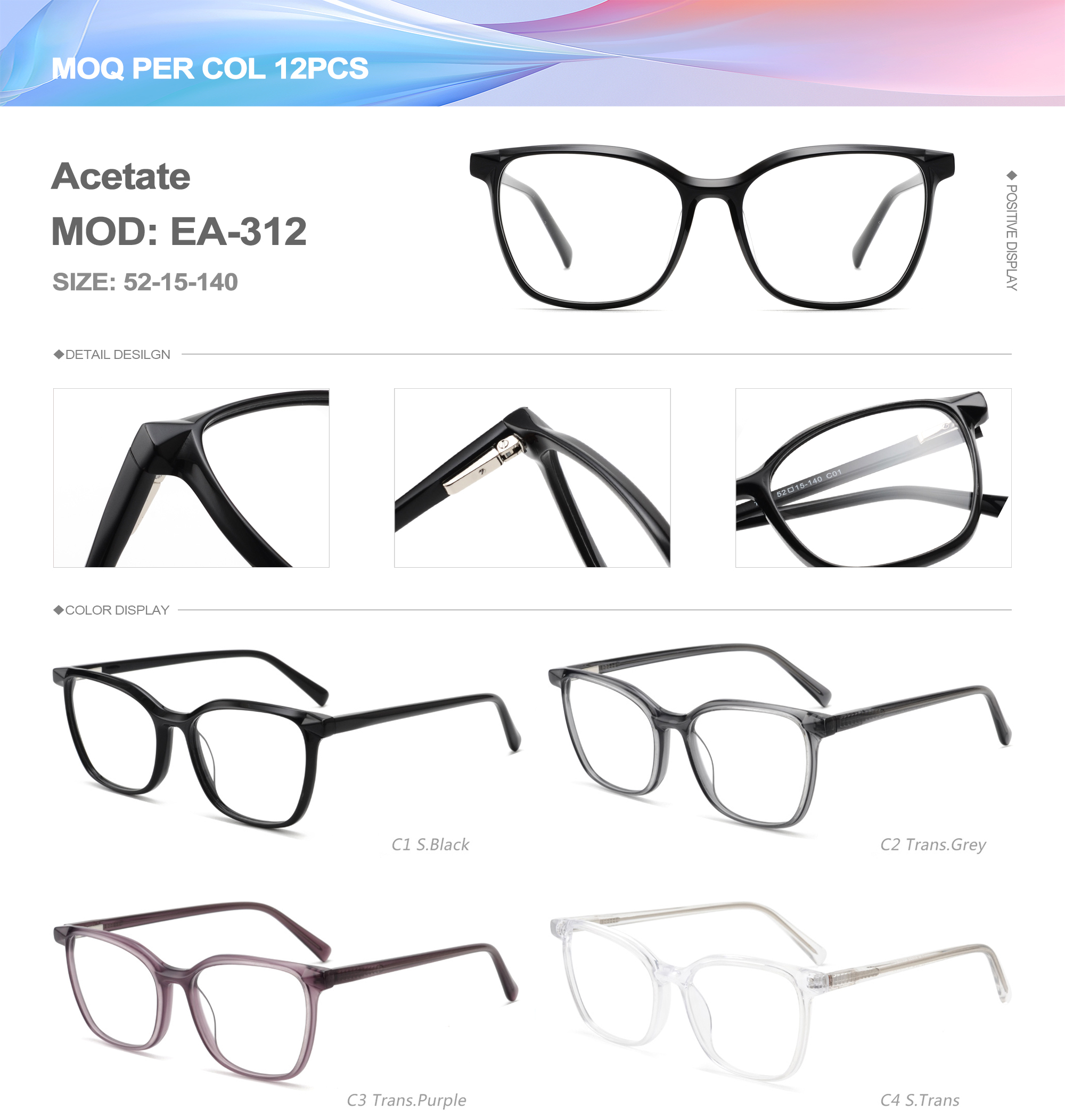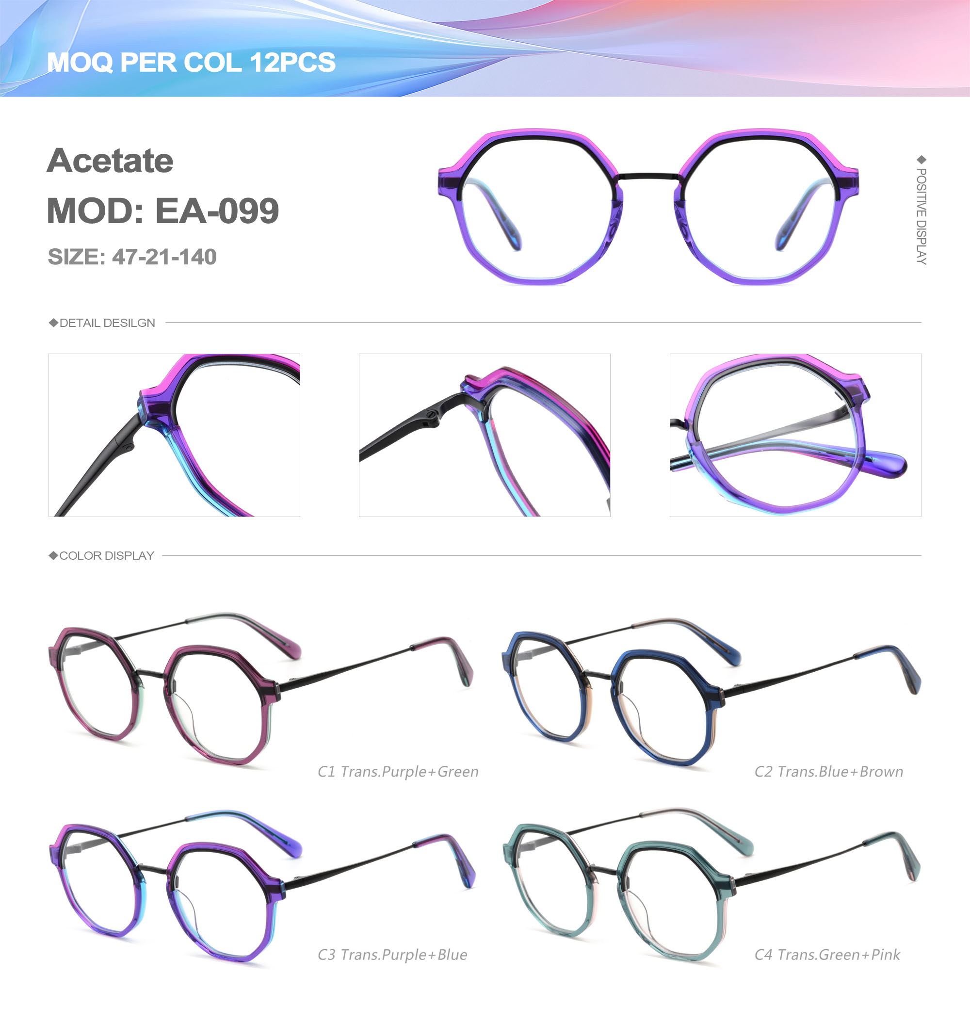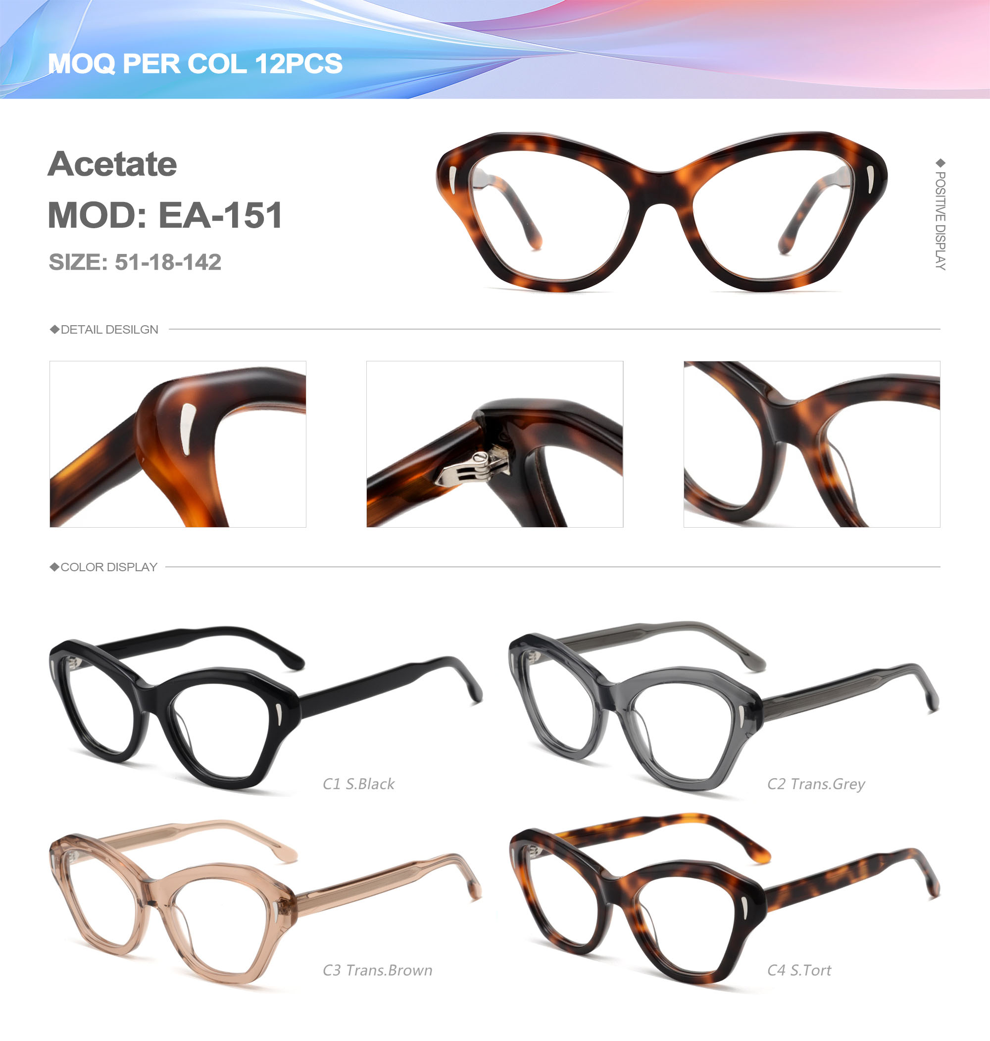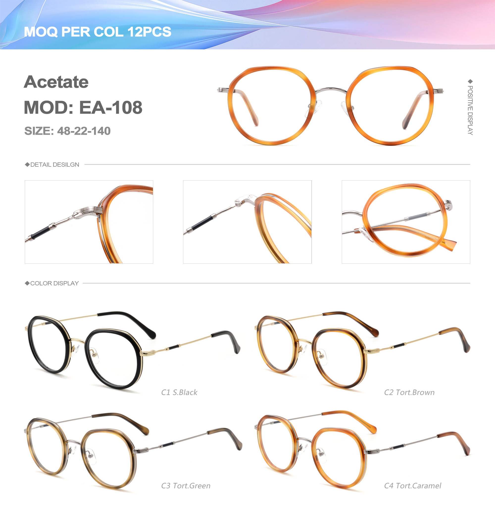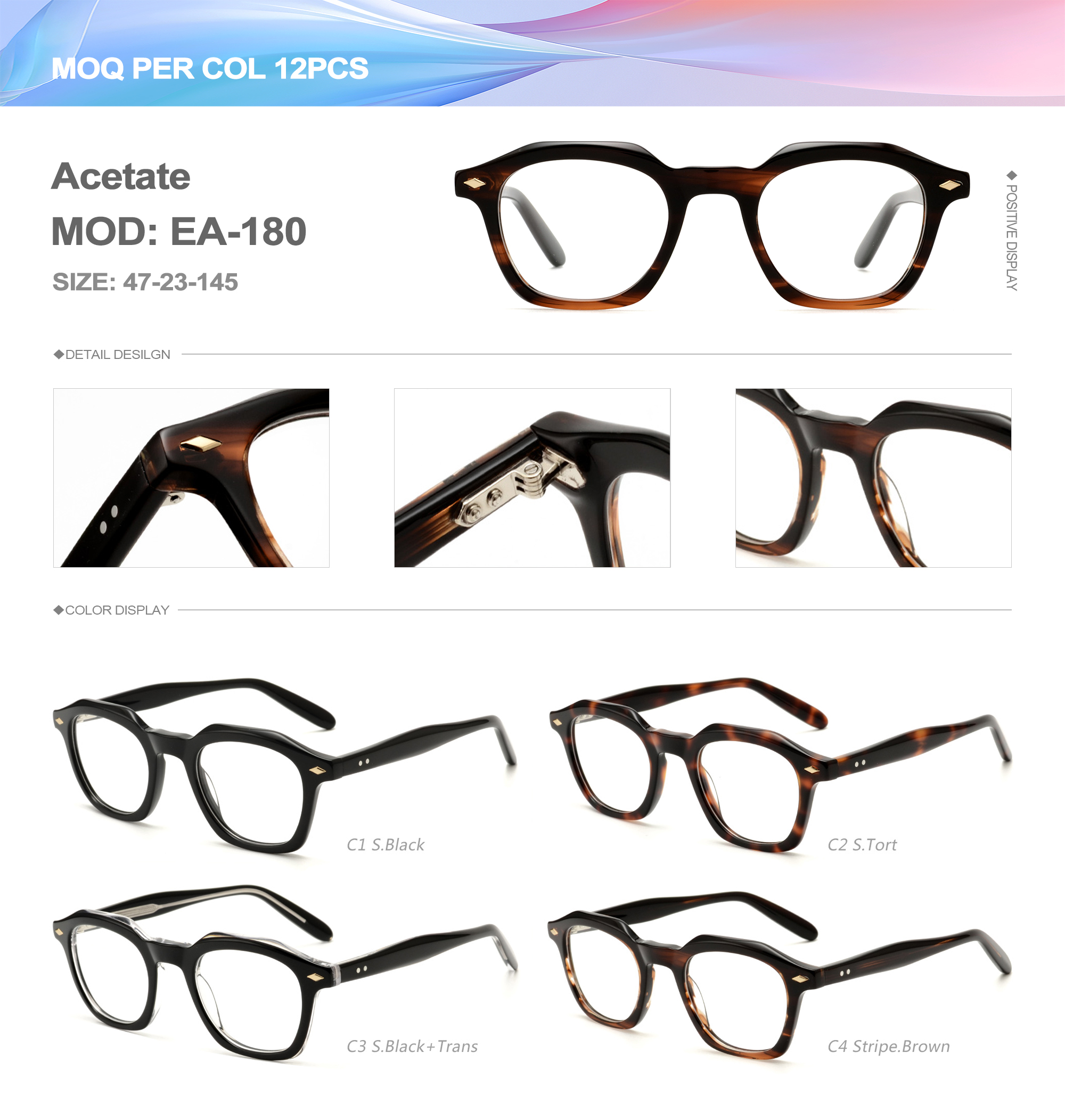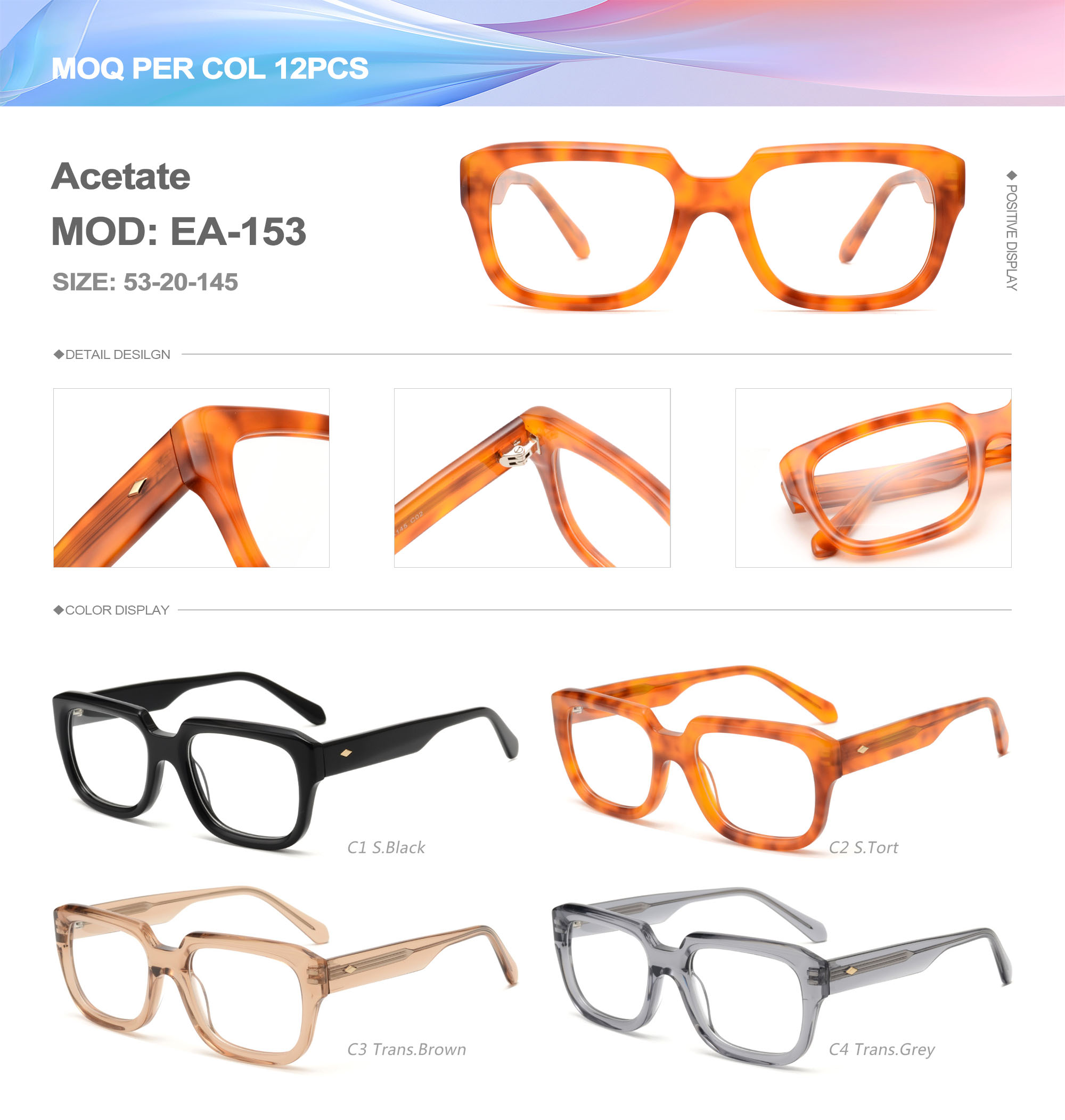 Acetate is an ideal material for eyeglass frames, it is durable and does not cause skin irritation. The acetate frame is made with a unique technology that turns plant material into durable plastic.