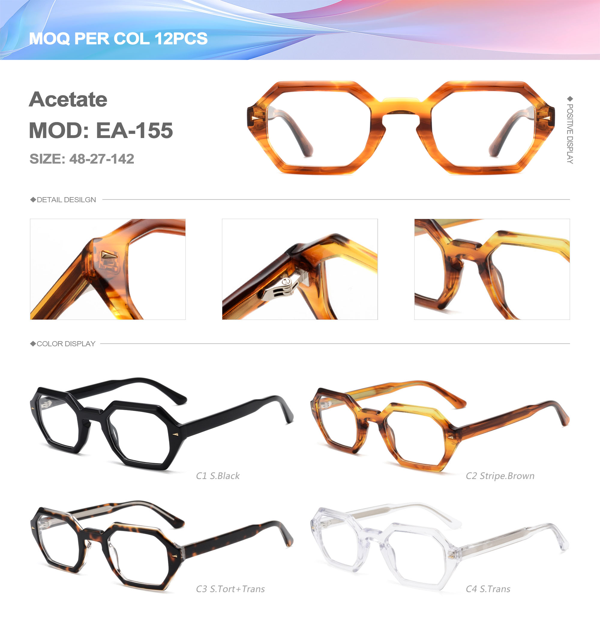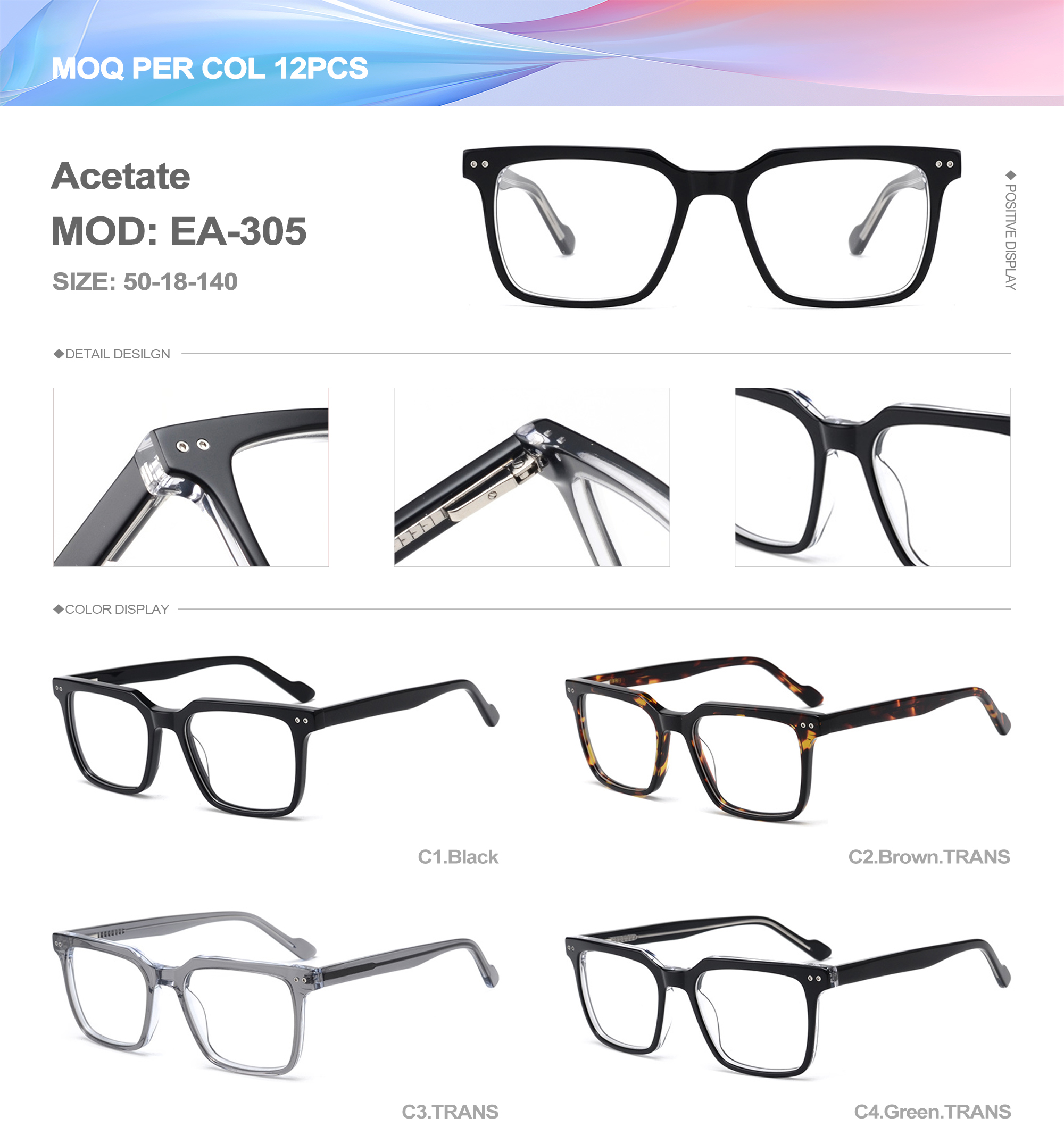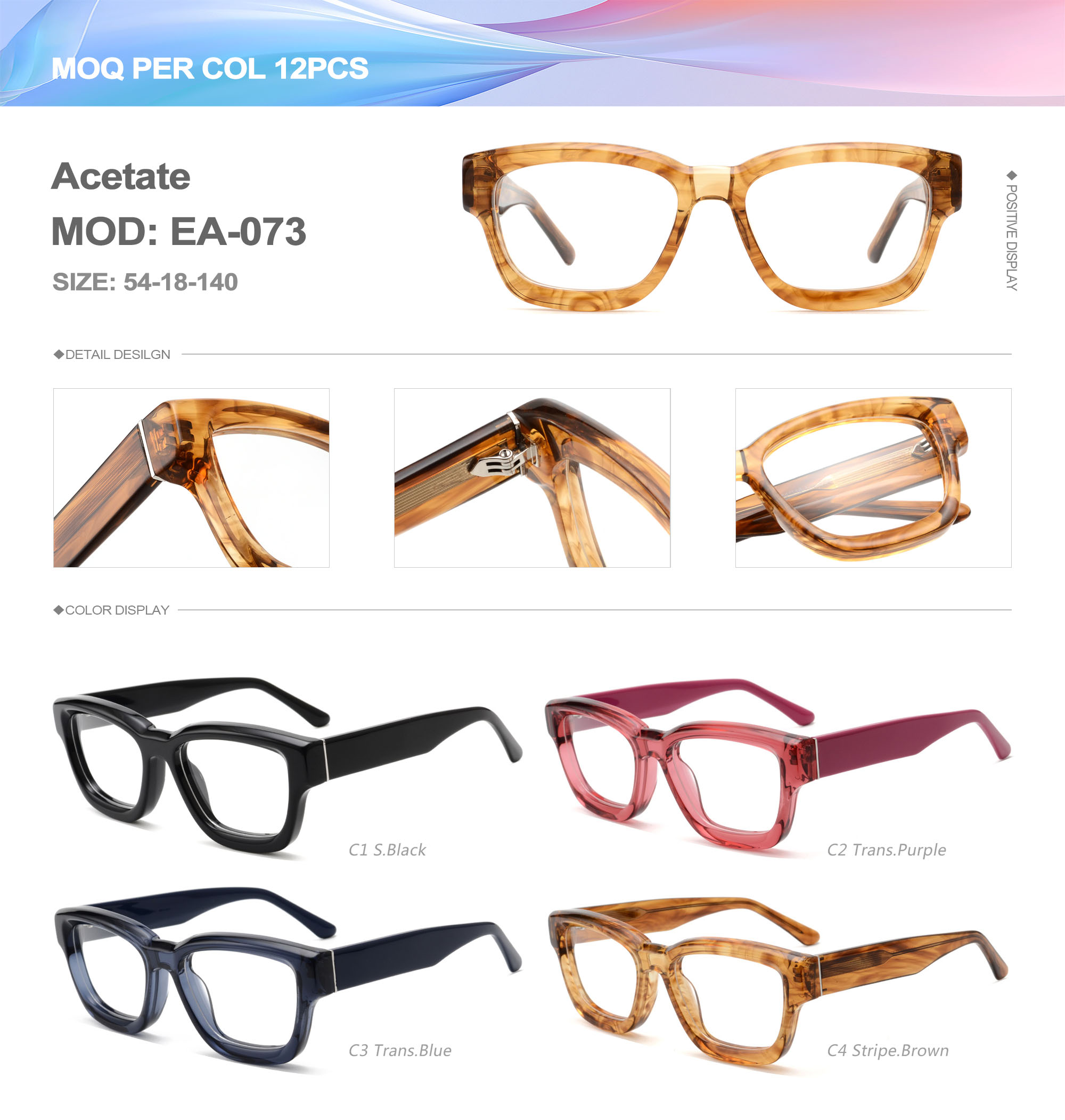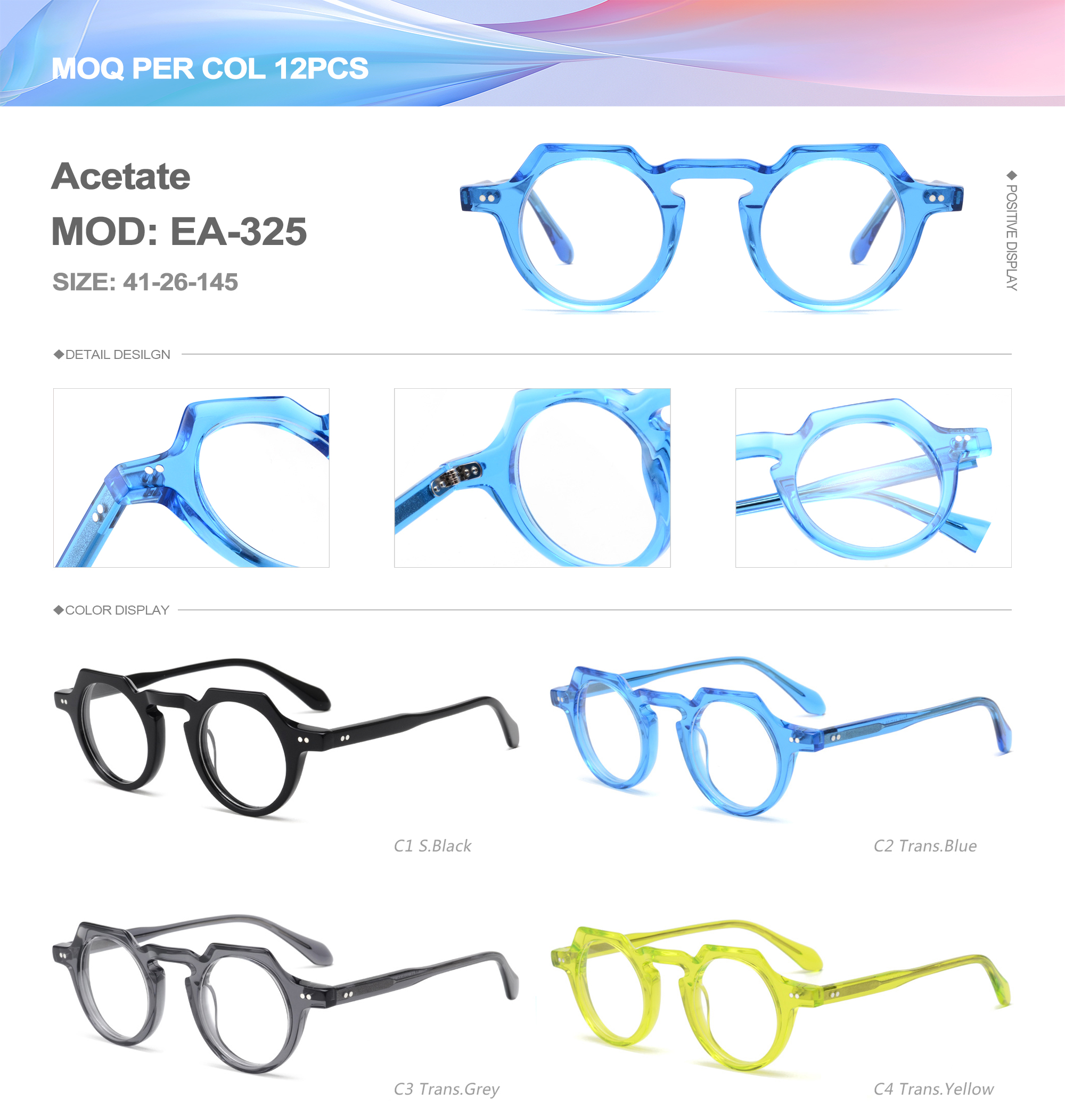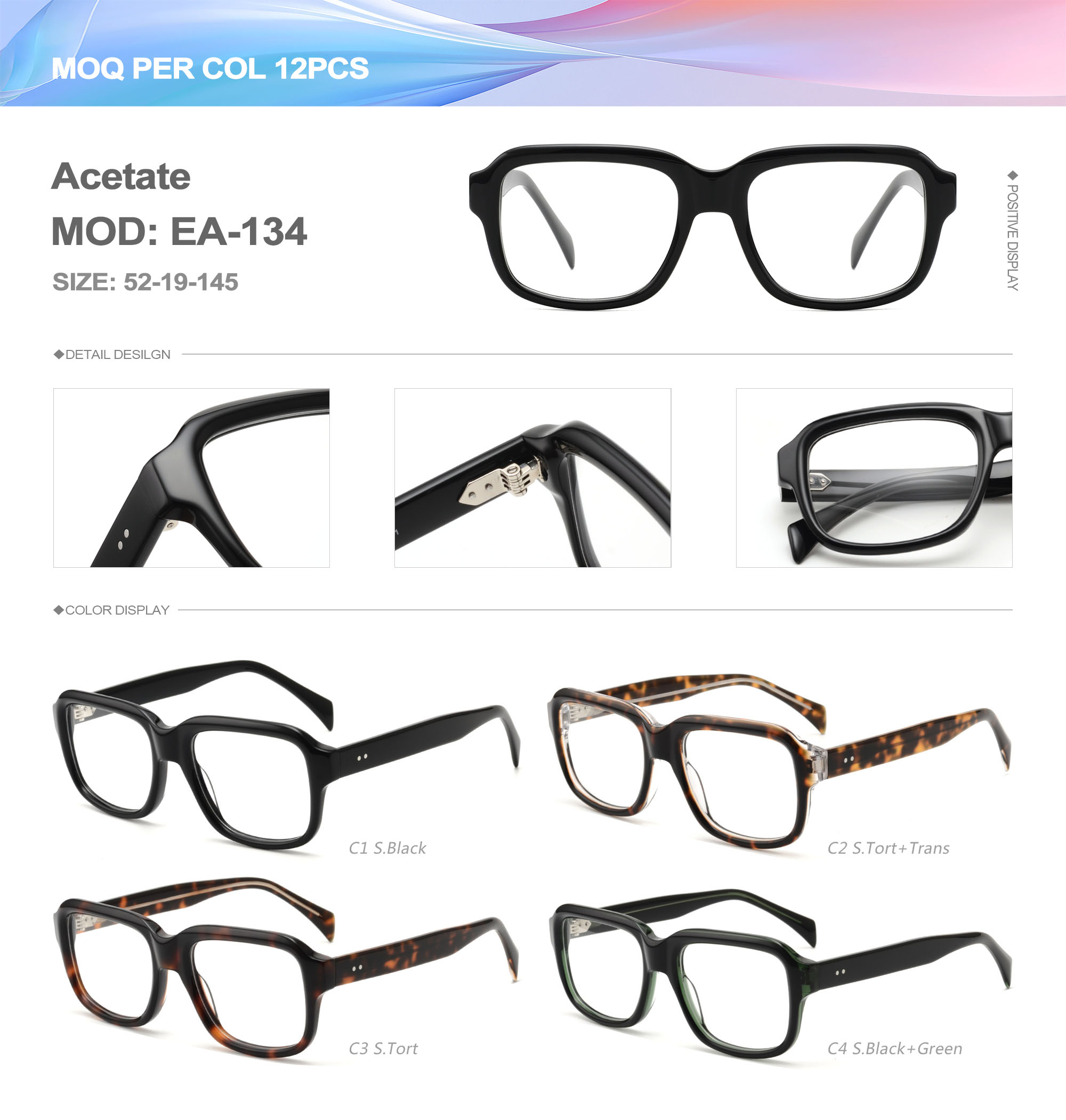 Acetate is an ideal material for eyeglass frames, it is durable and does not cause skin irritation. The acetate frame is made with a unique technology that turns plant material into durable plastic.