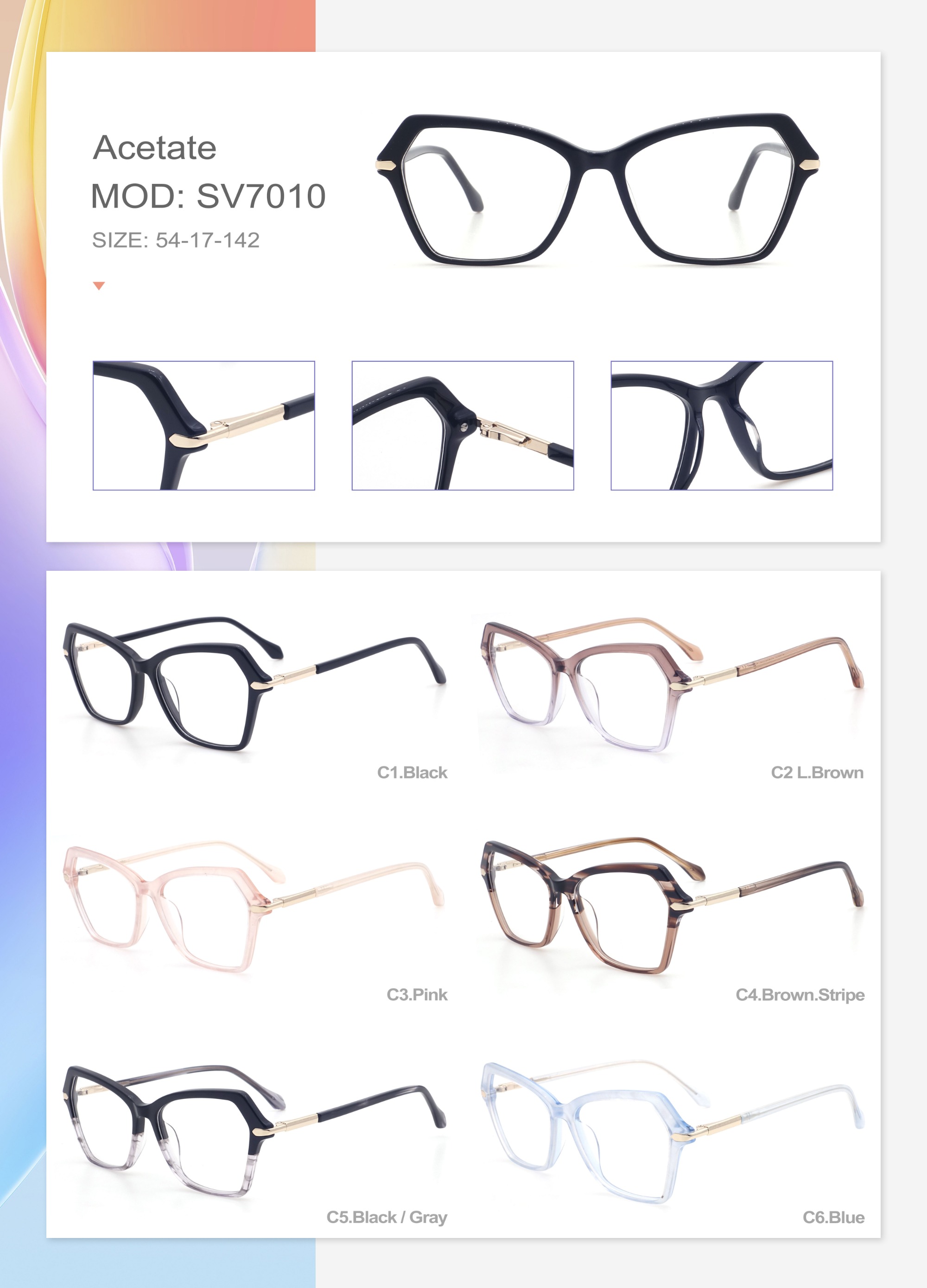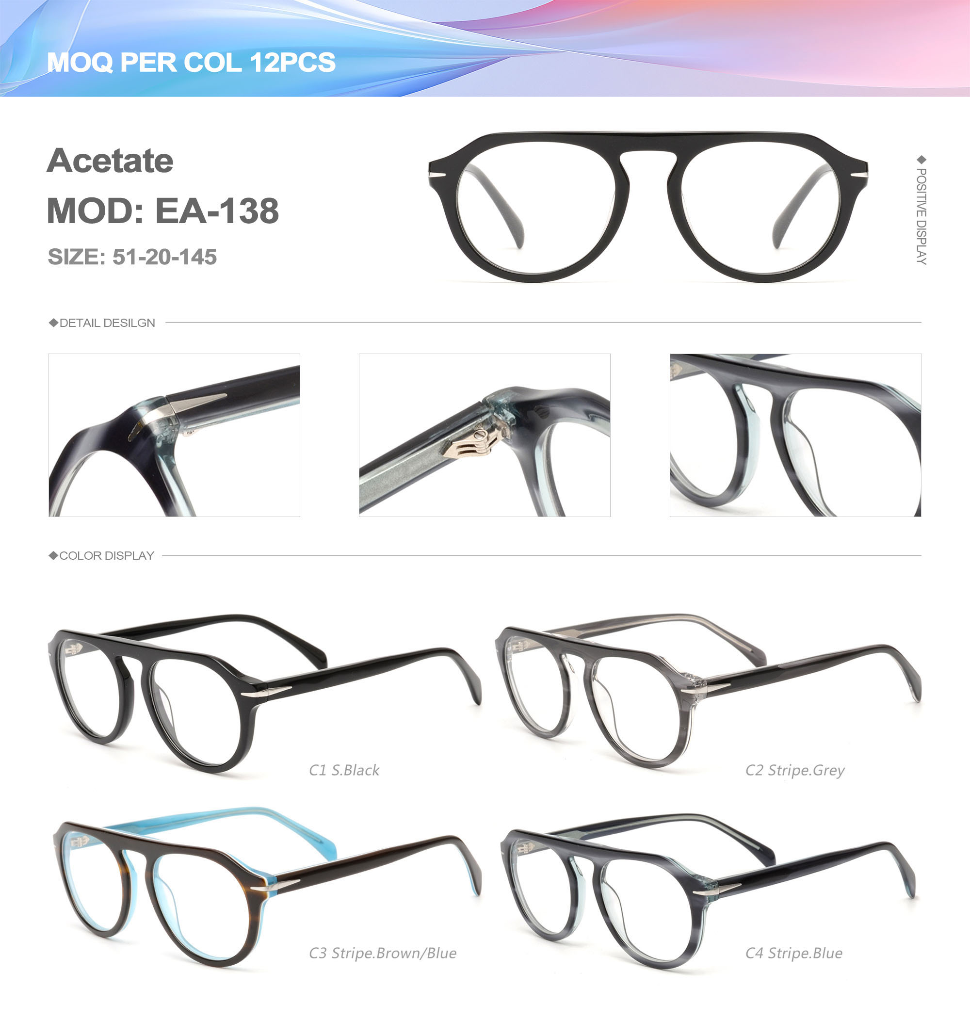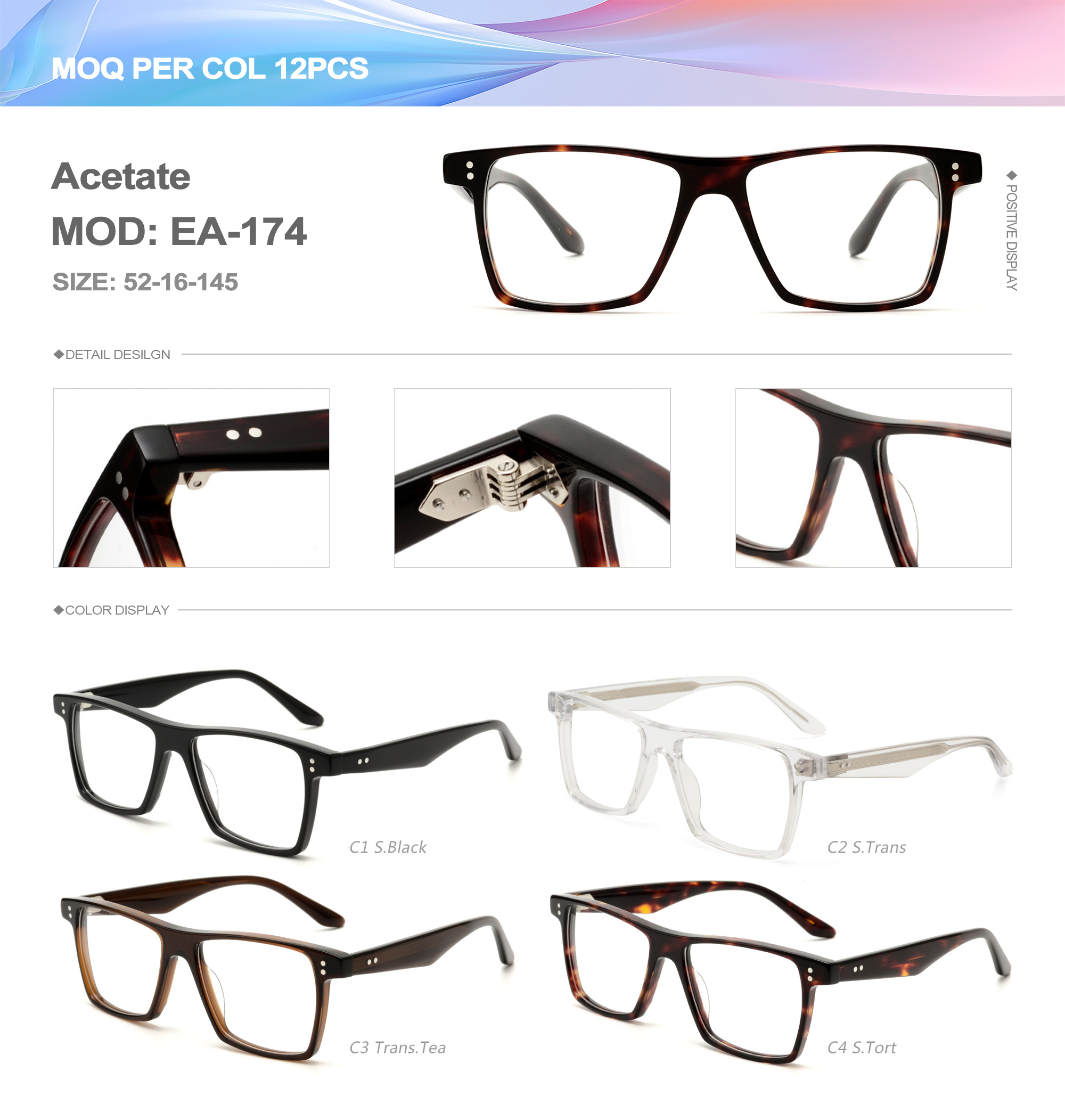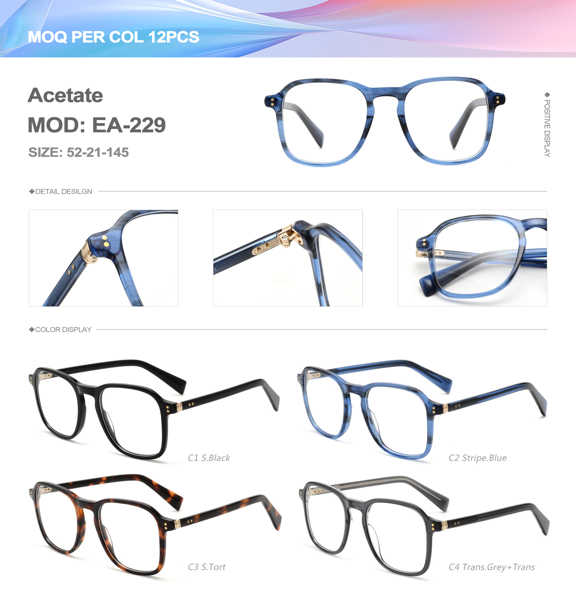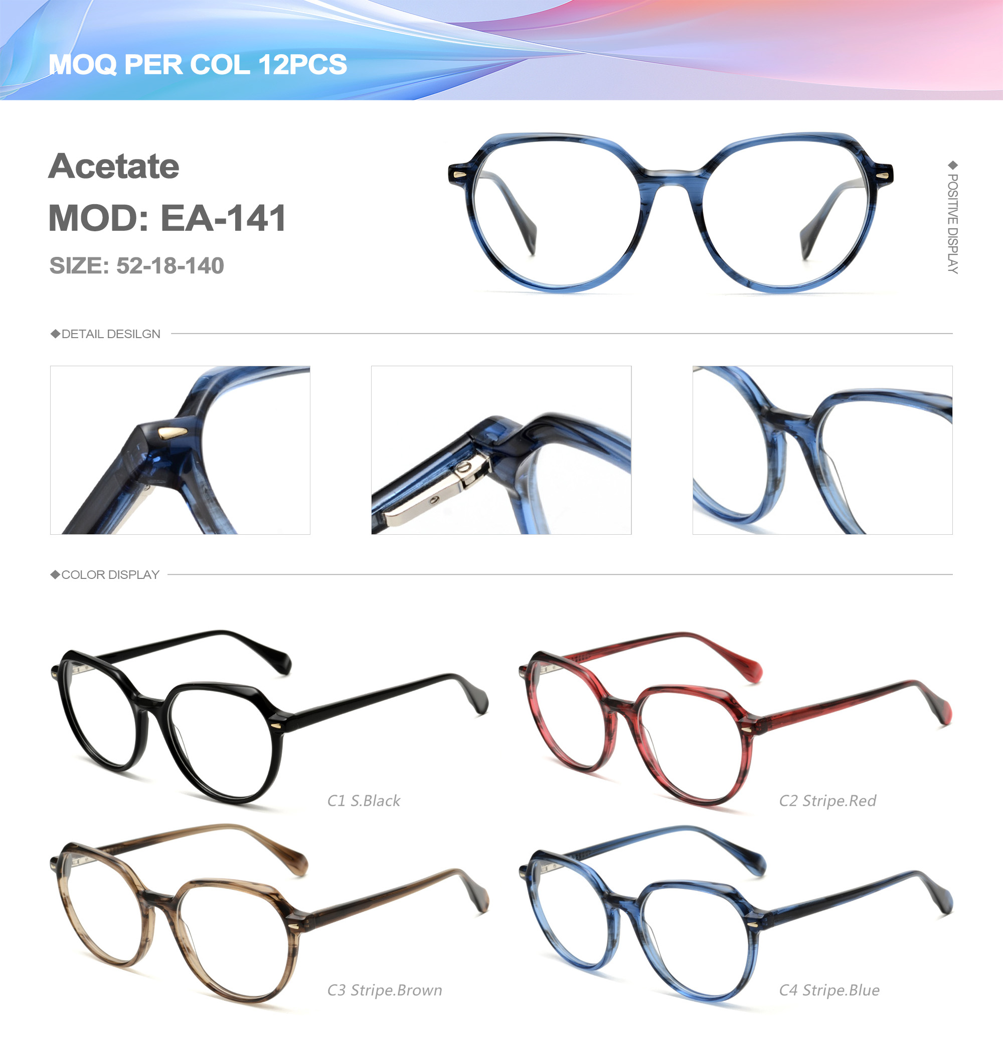 Acetate is an ideal material for eyeglass frames, it is durable and does not cause skin irritation. The acetate frame is made with a unique technology that turns plant material into durable plastic.
