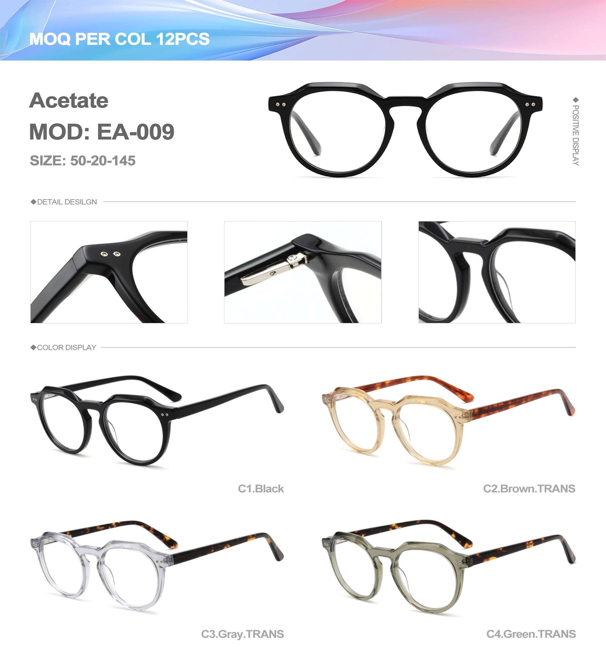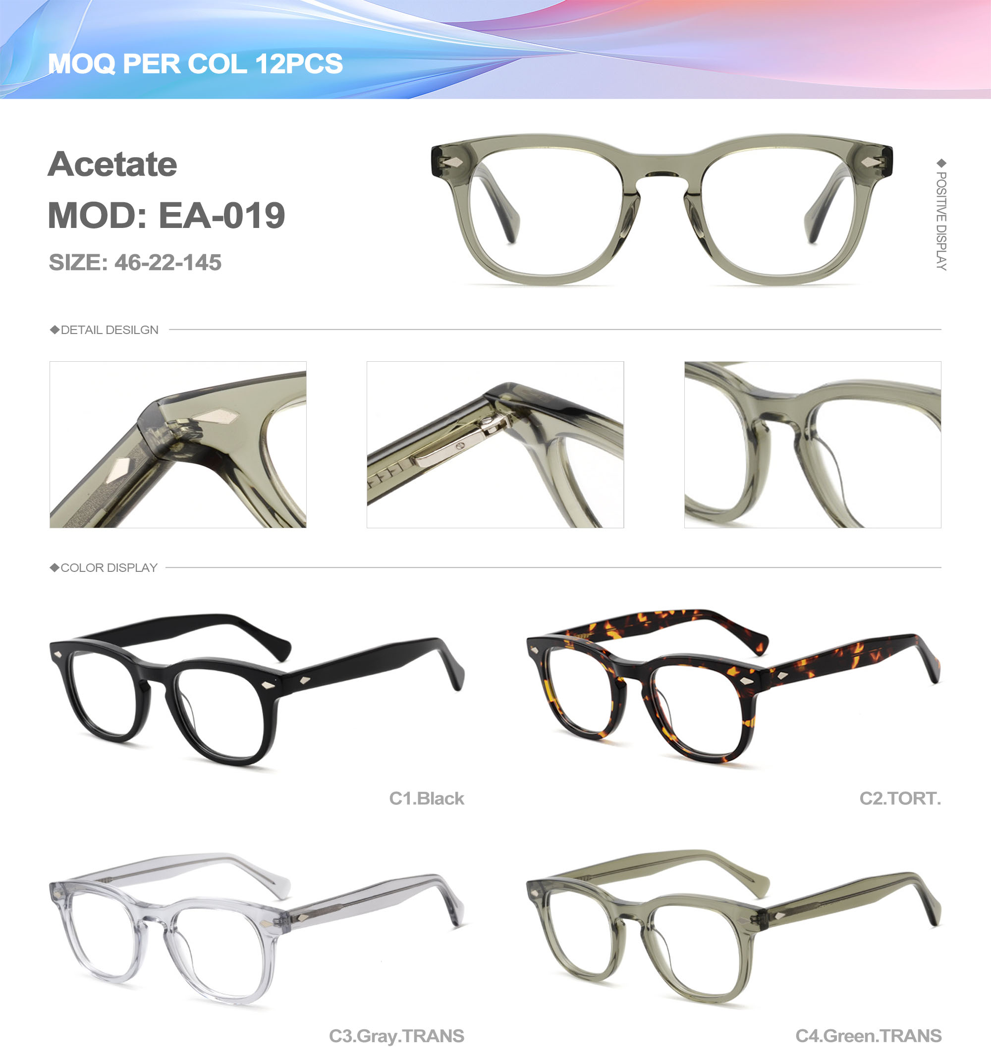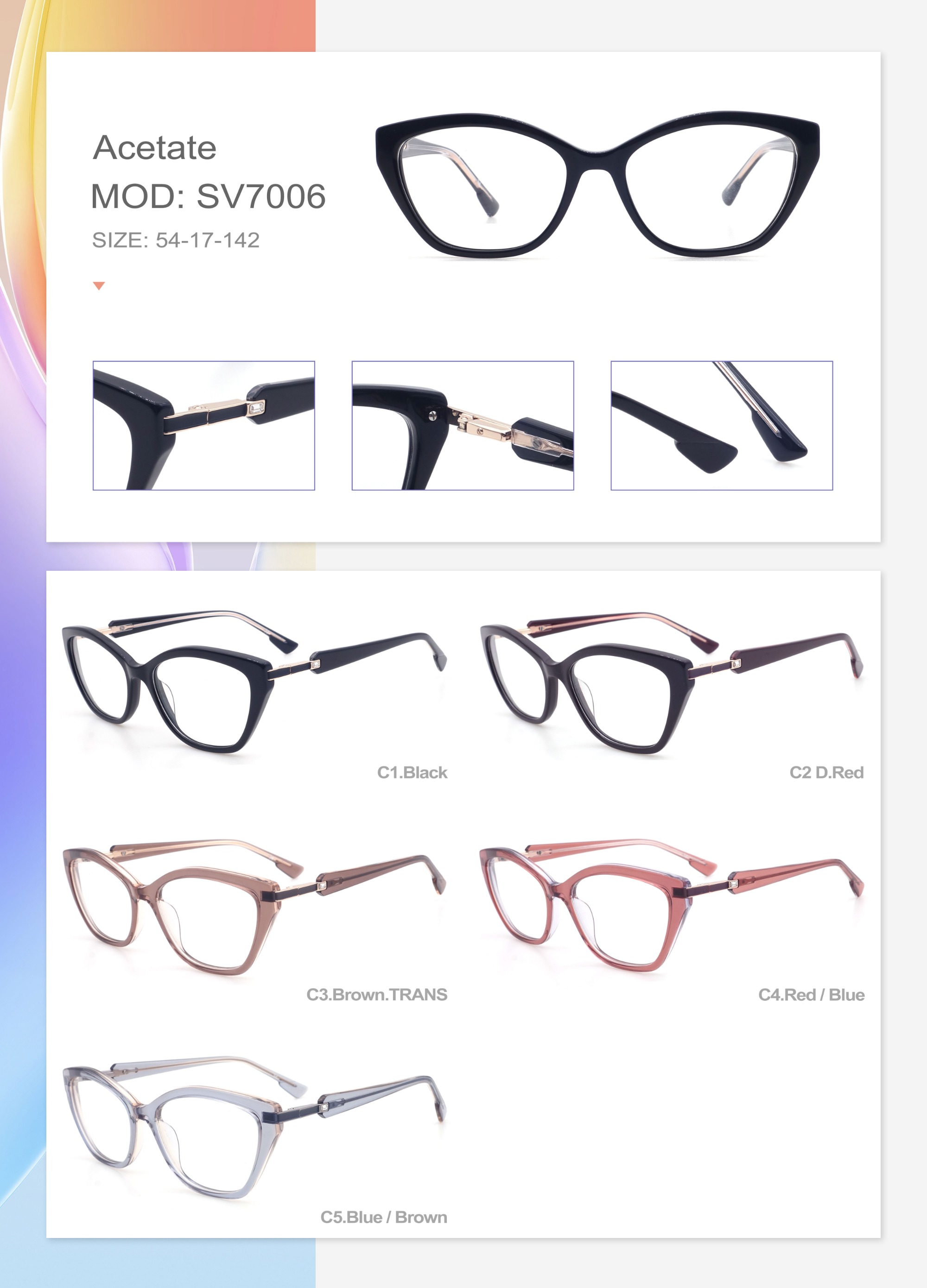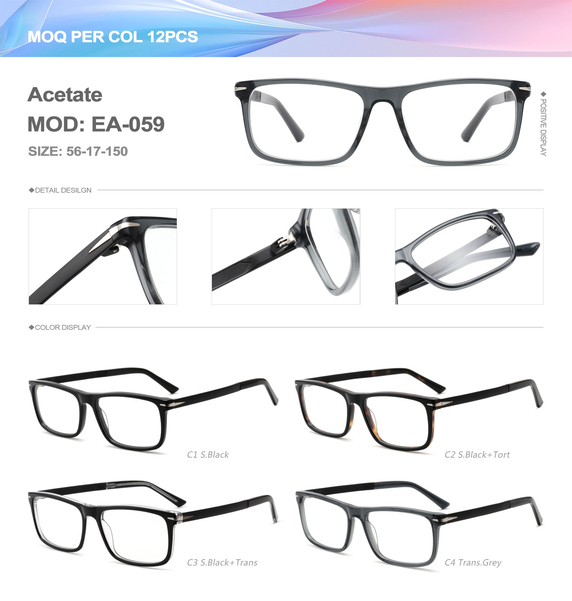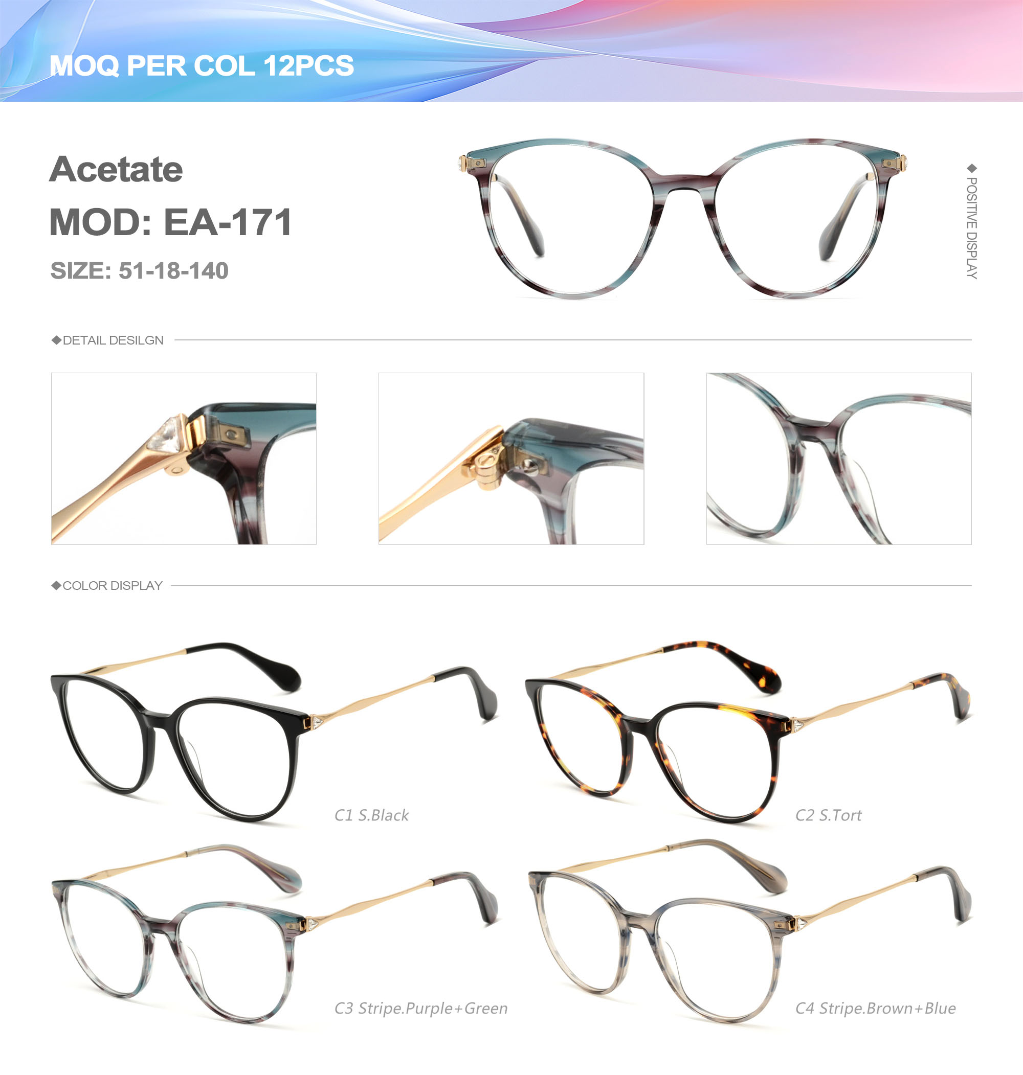 Acetate is an ideal material for eyeglass frames, it is durable and does not cause skin irritation. The acetate frame is made with a unique technology that turns plant material into durable plastic.