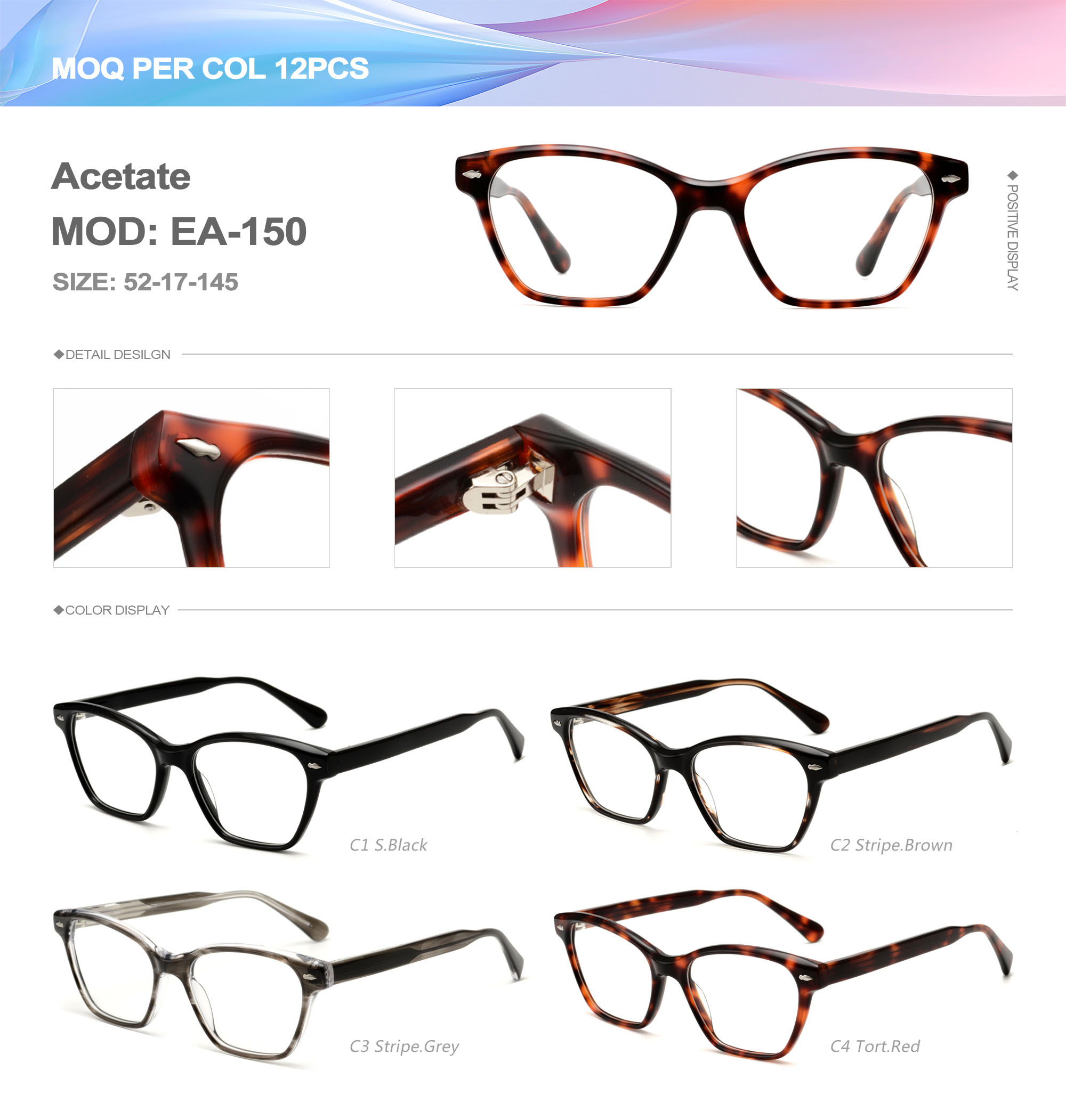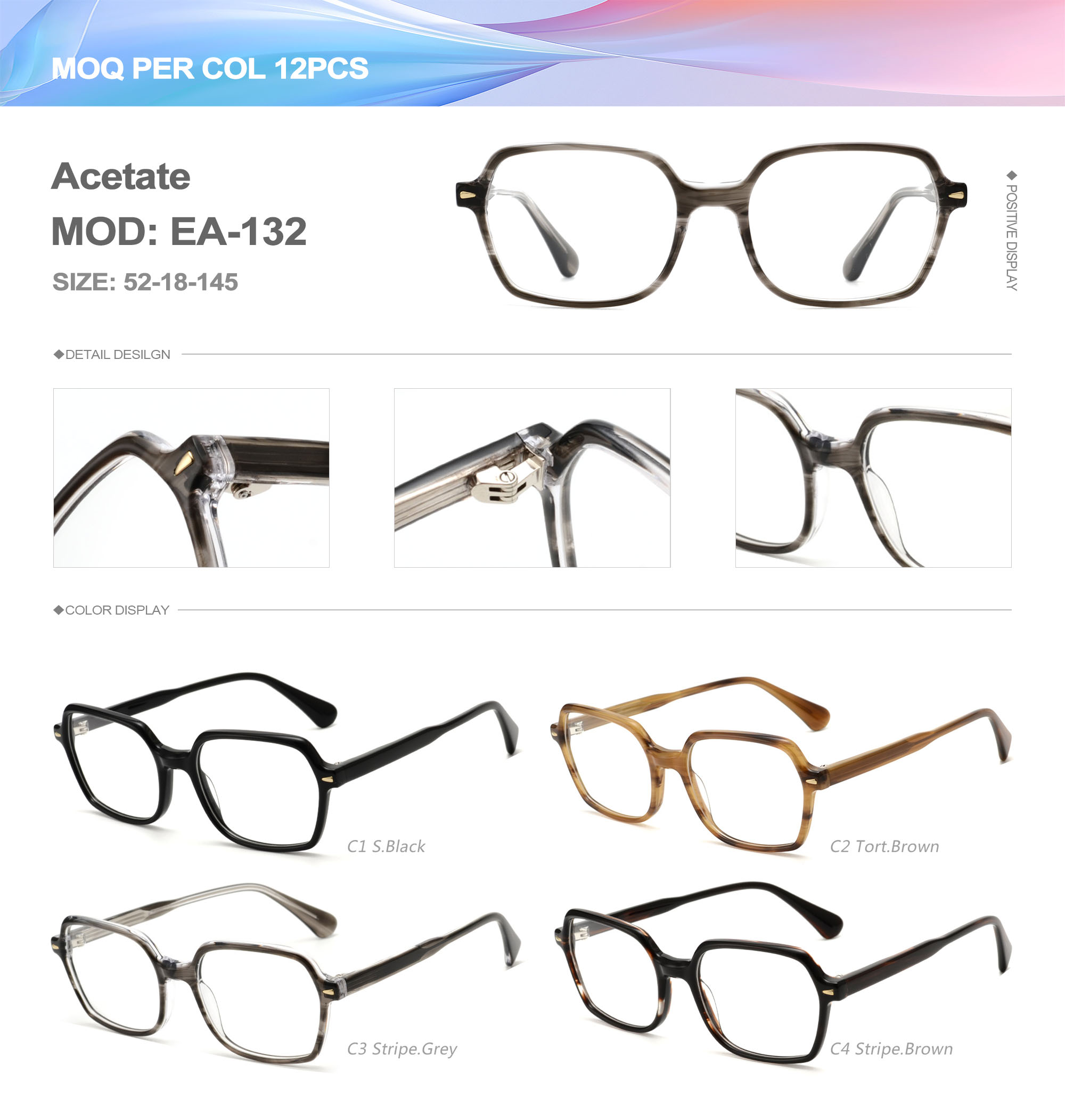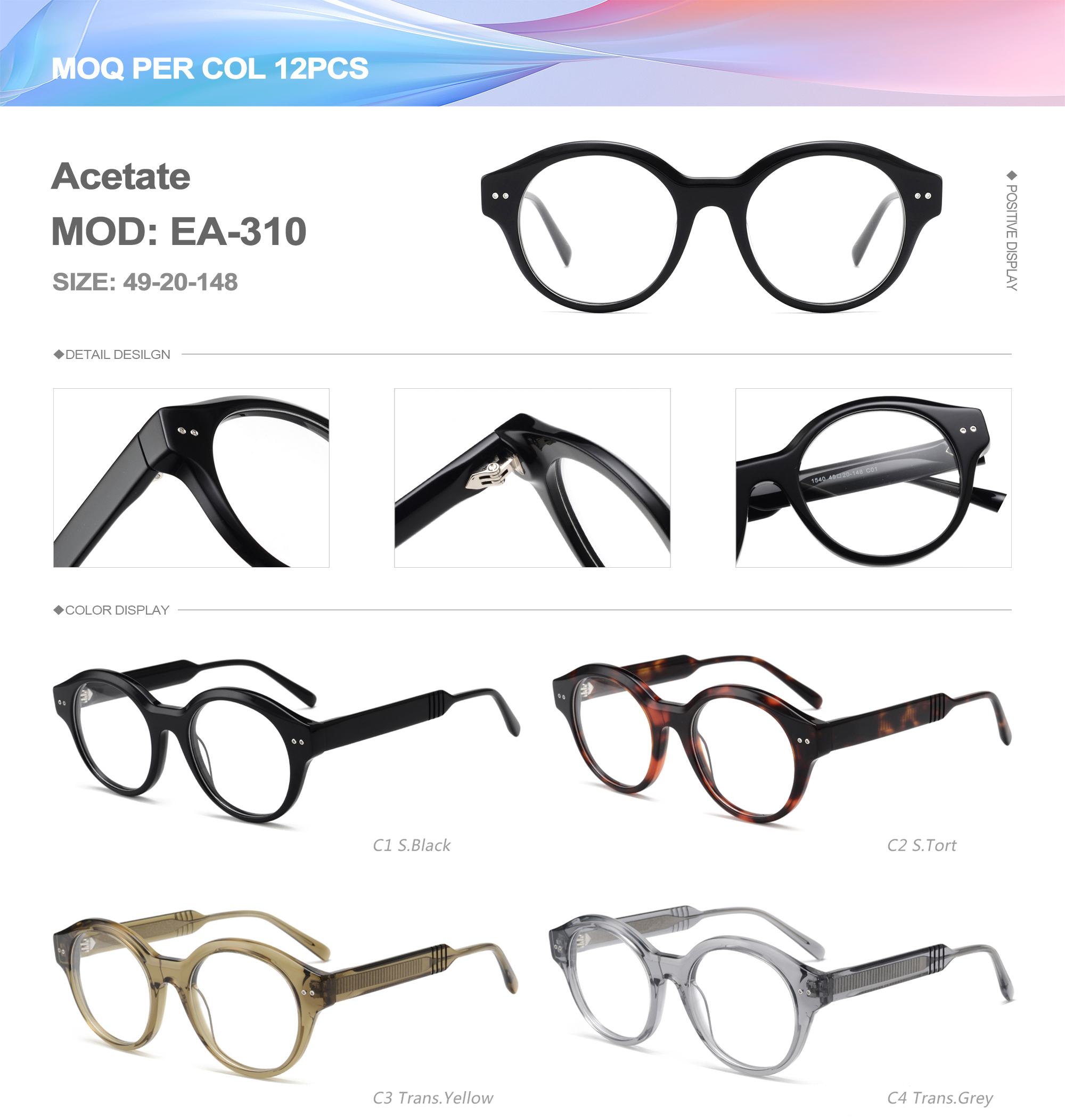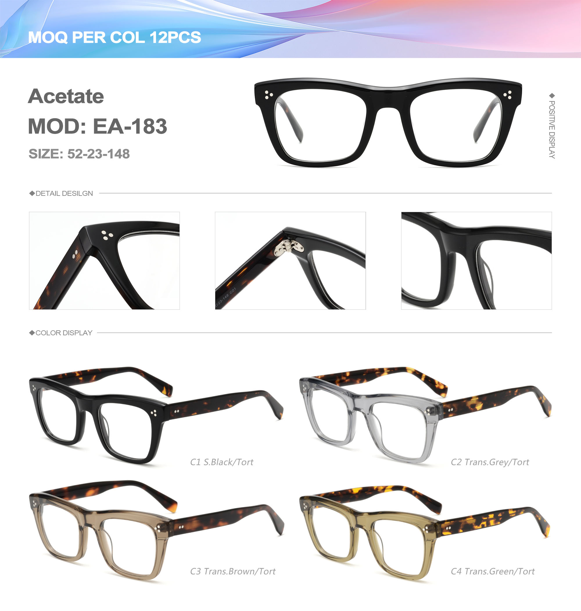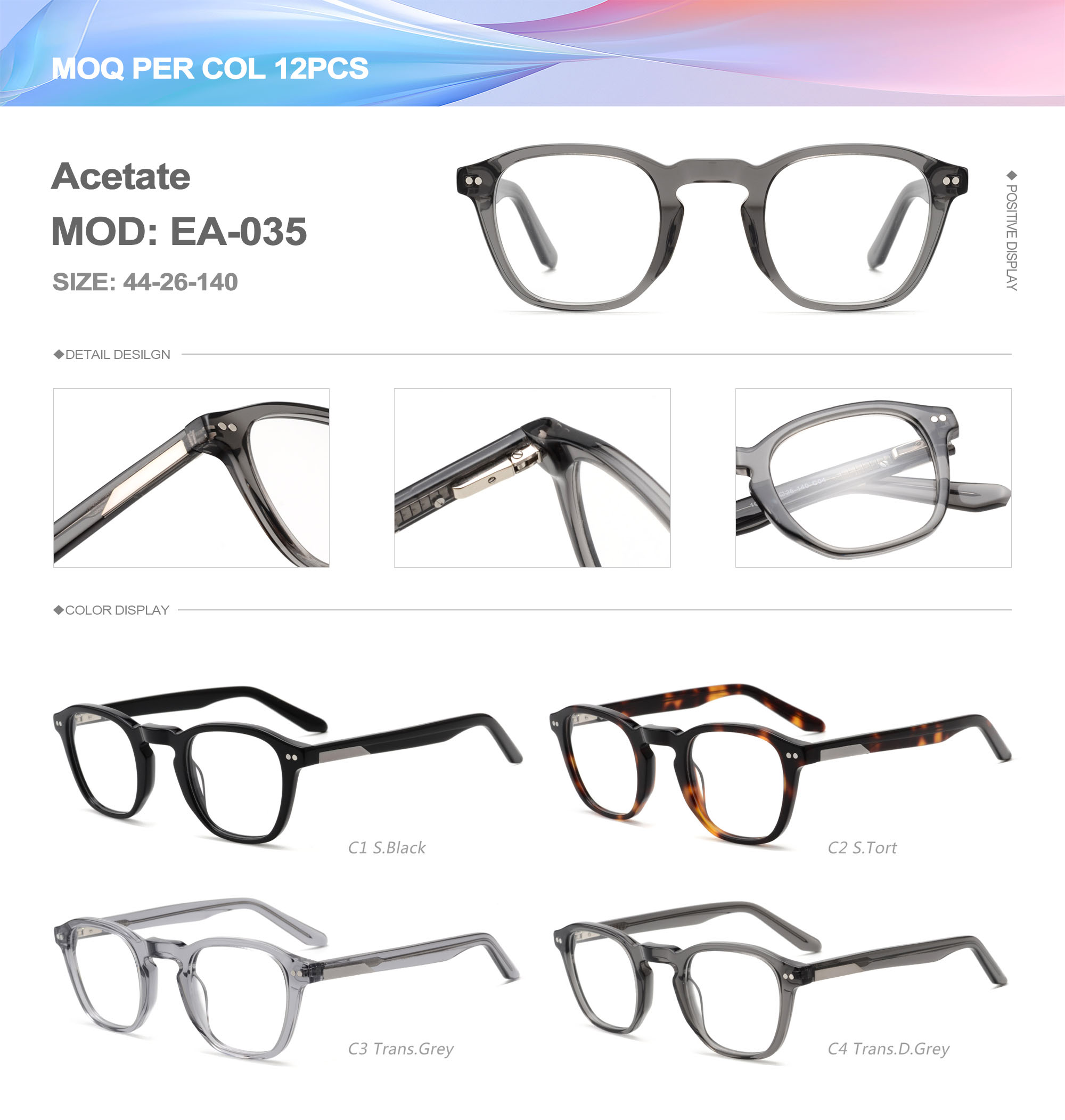 Acetate is an ideal material for eyeglass frames, it is durable and does not cause skin irritation. The acetate frame is made with a unique technology that turns plant material into durable plastic.