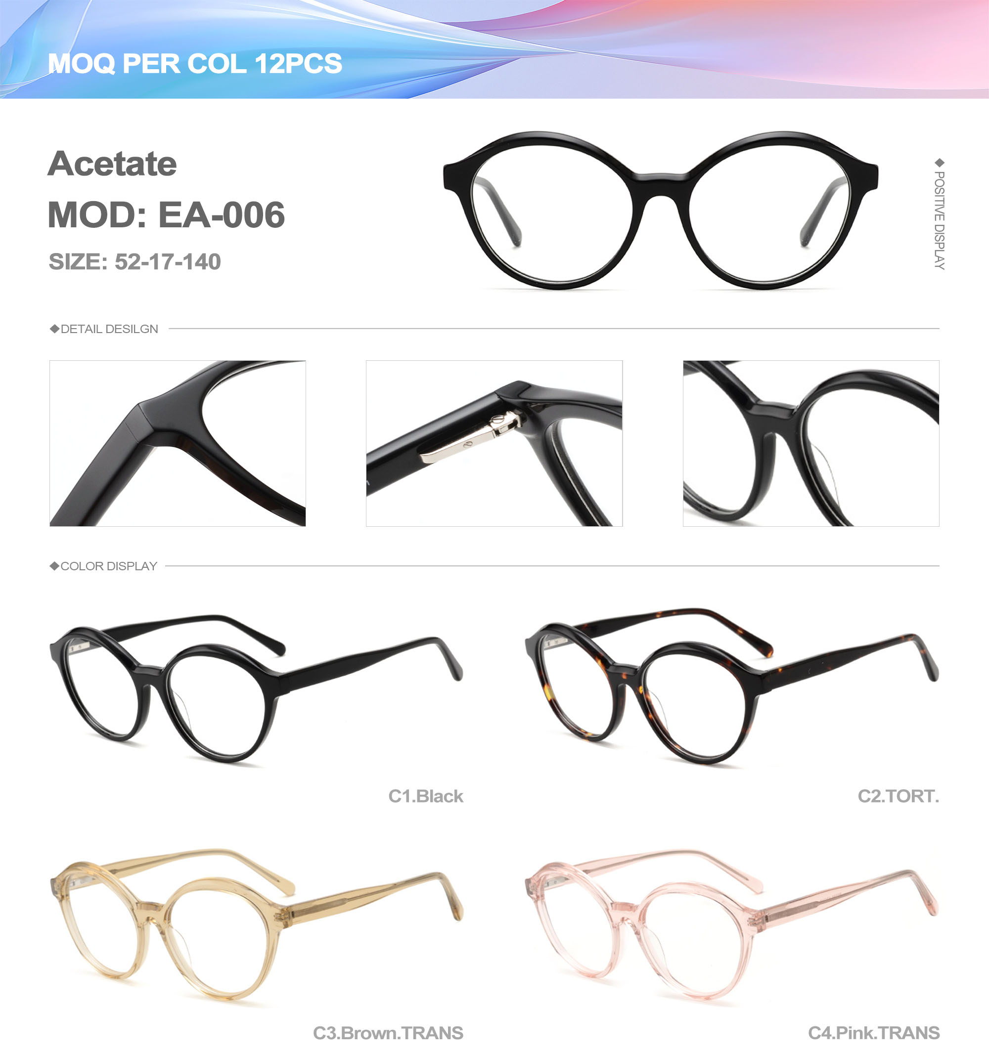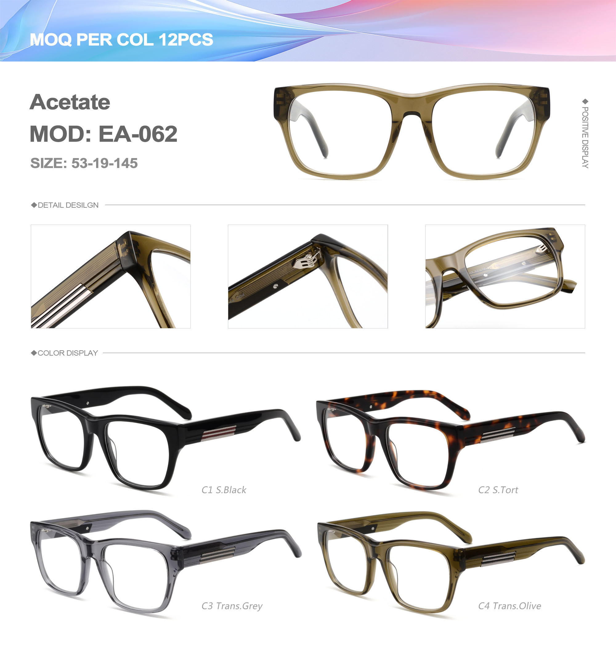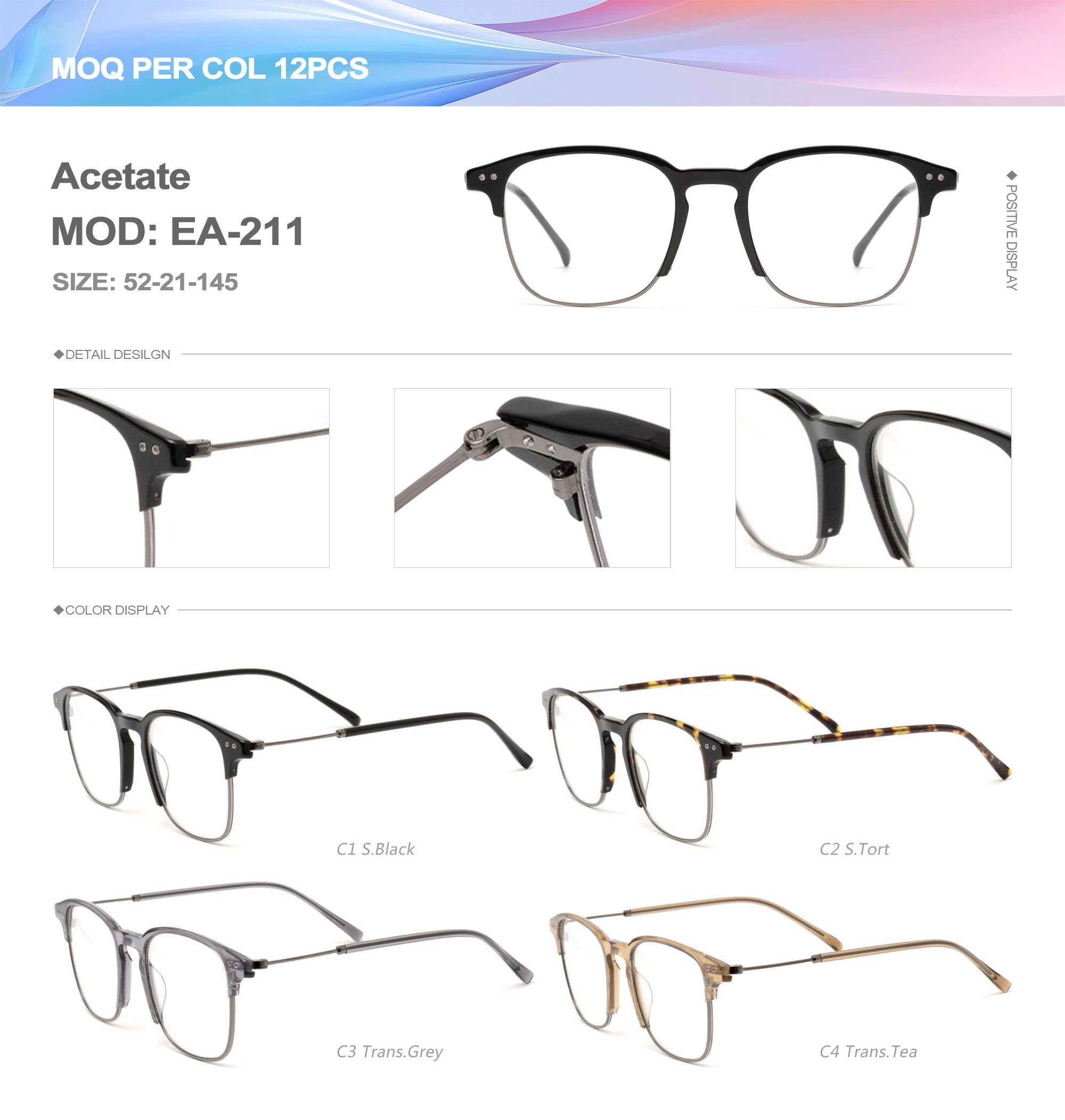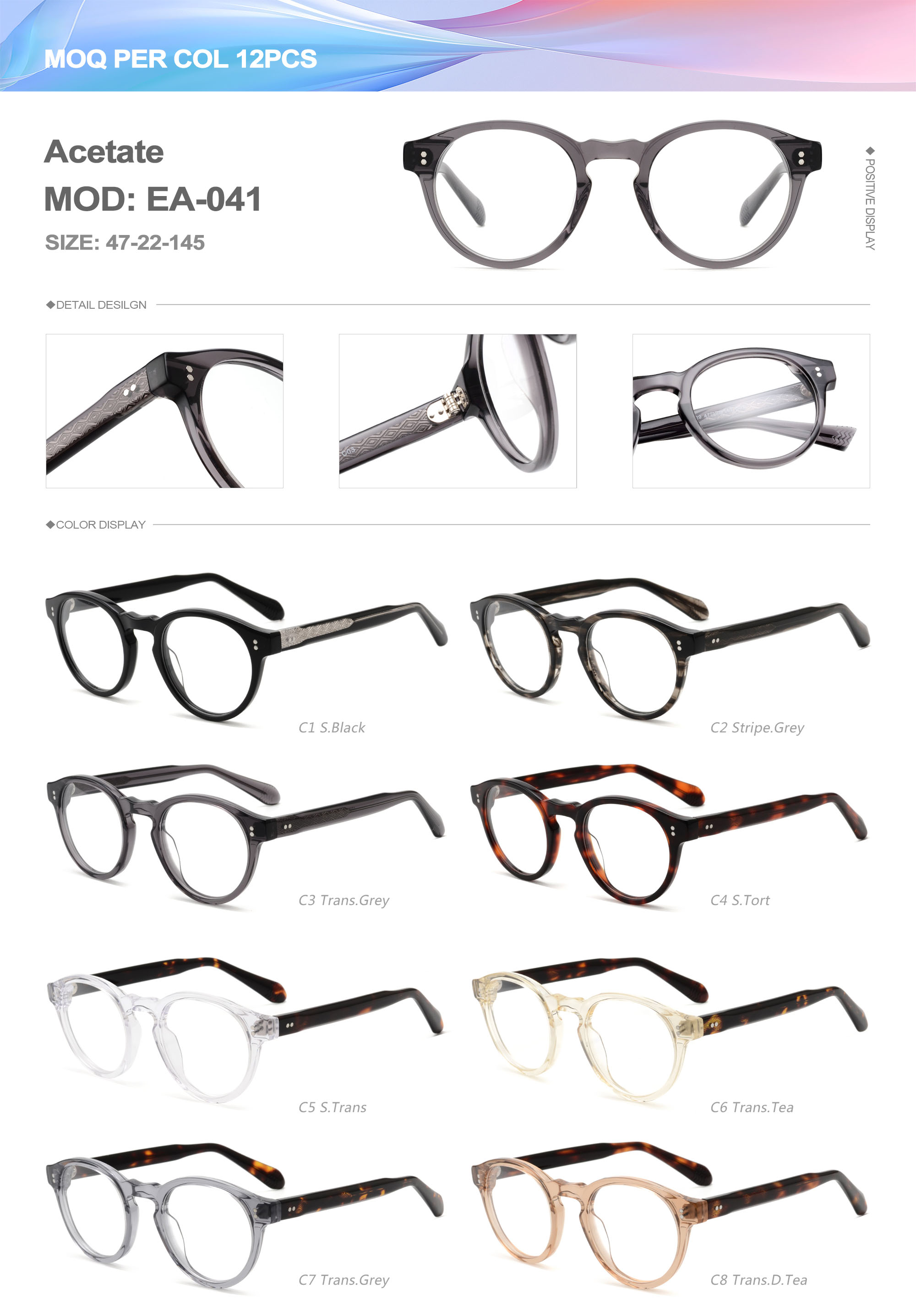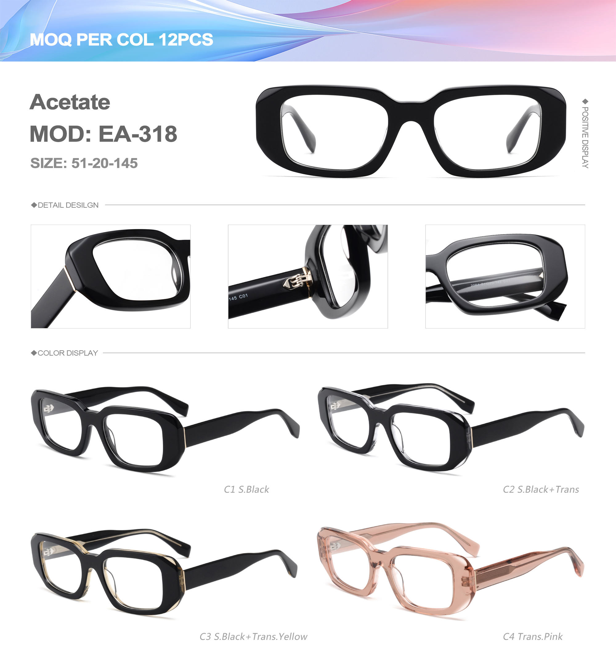 Acetate is an ideal material for eyeglass frames, it is durable and does not cause skin irritation. The acetate frame is made with a unique technology that turns plant material into durable plastic.