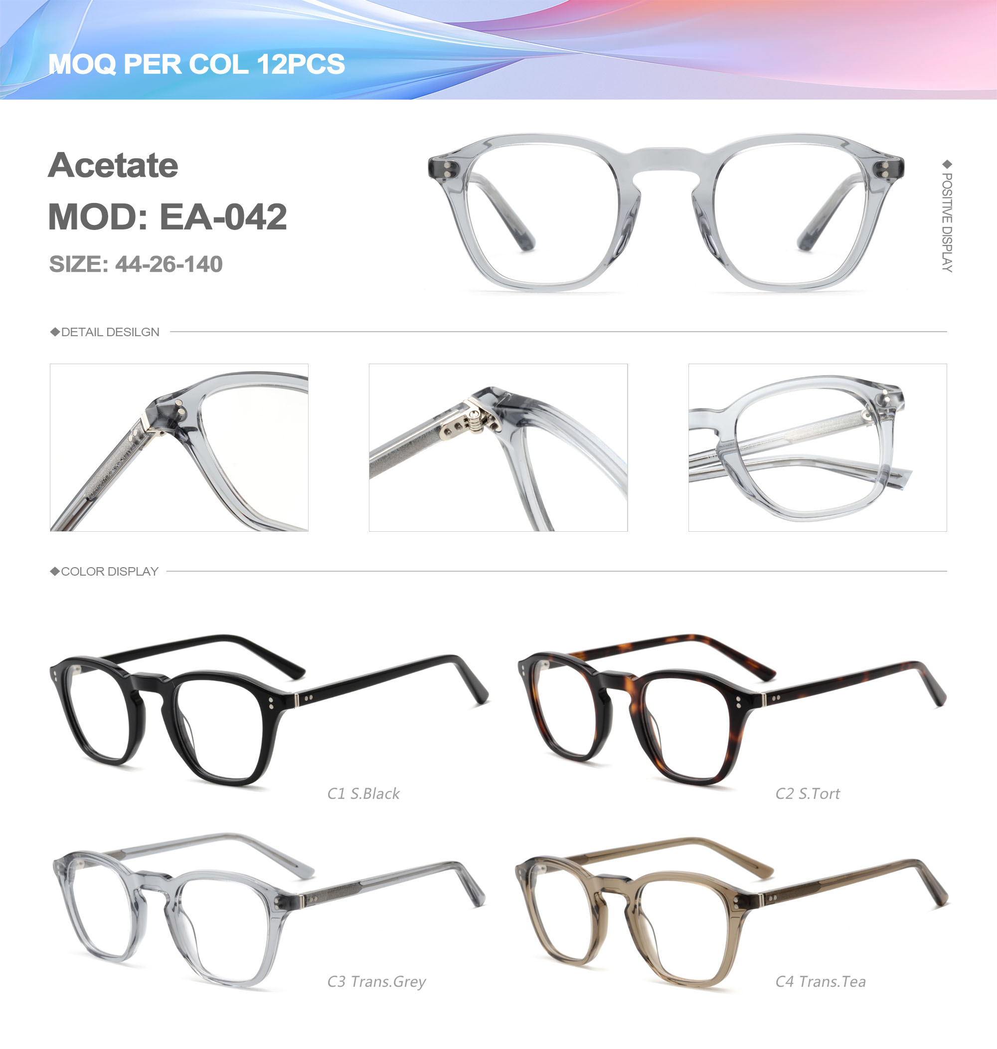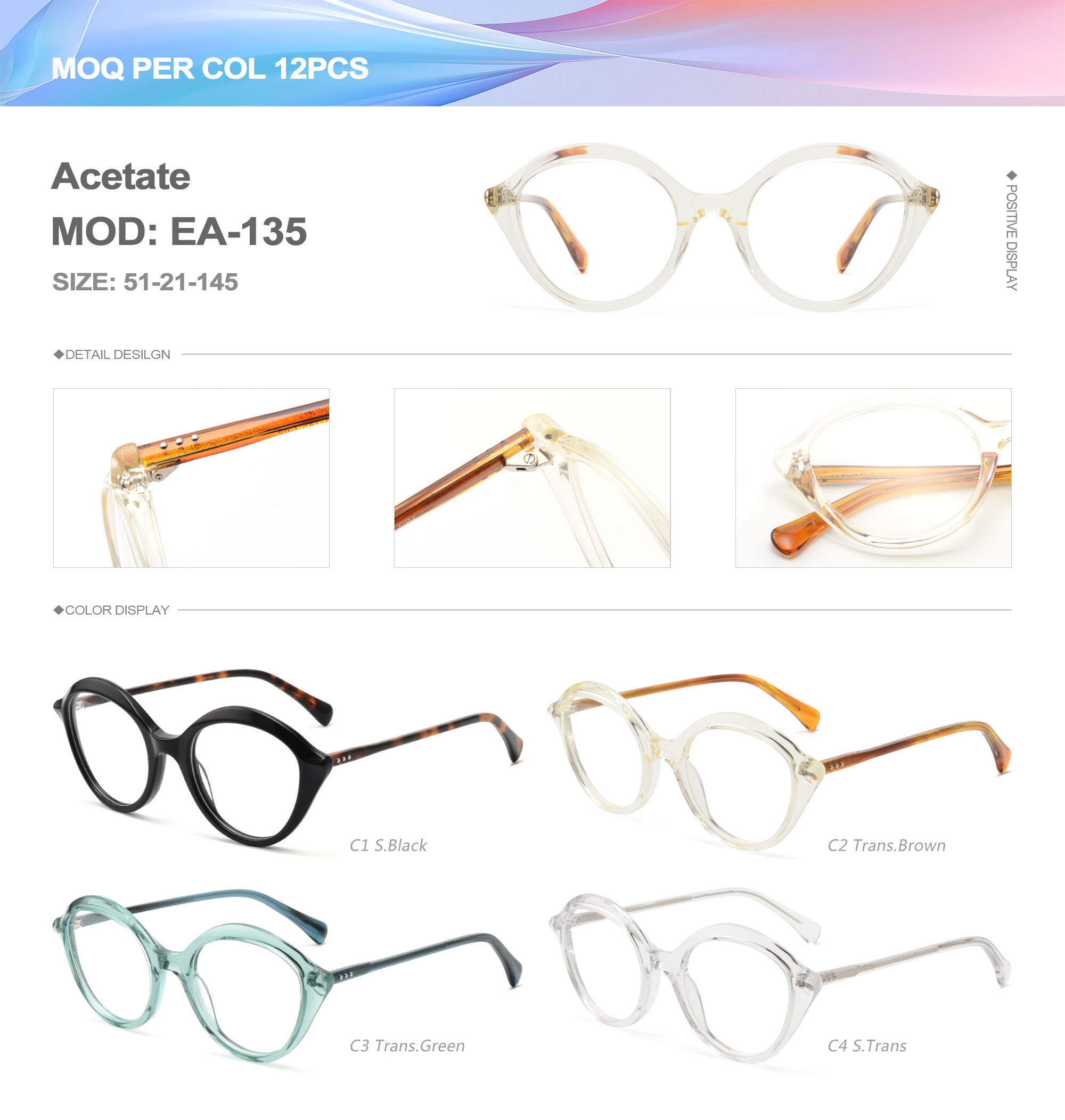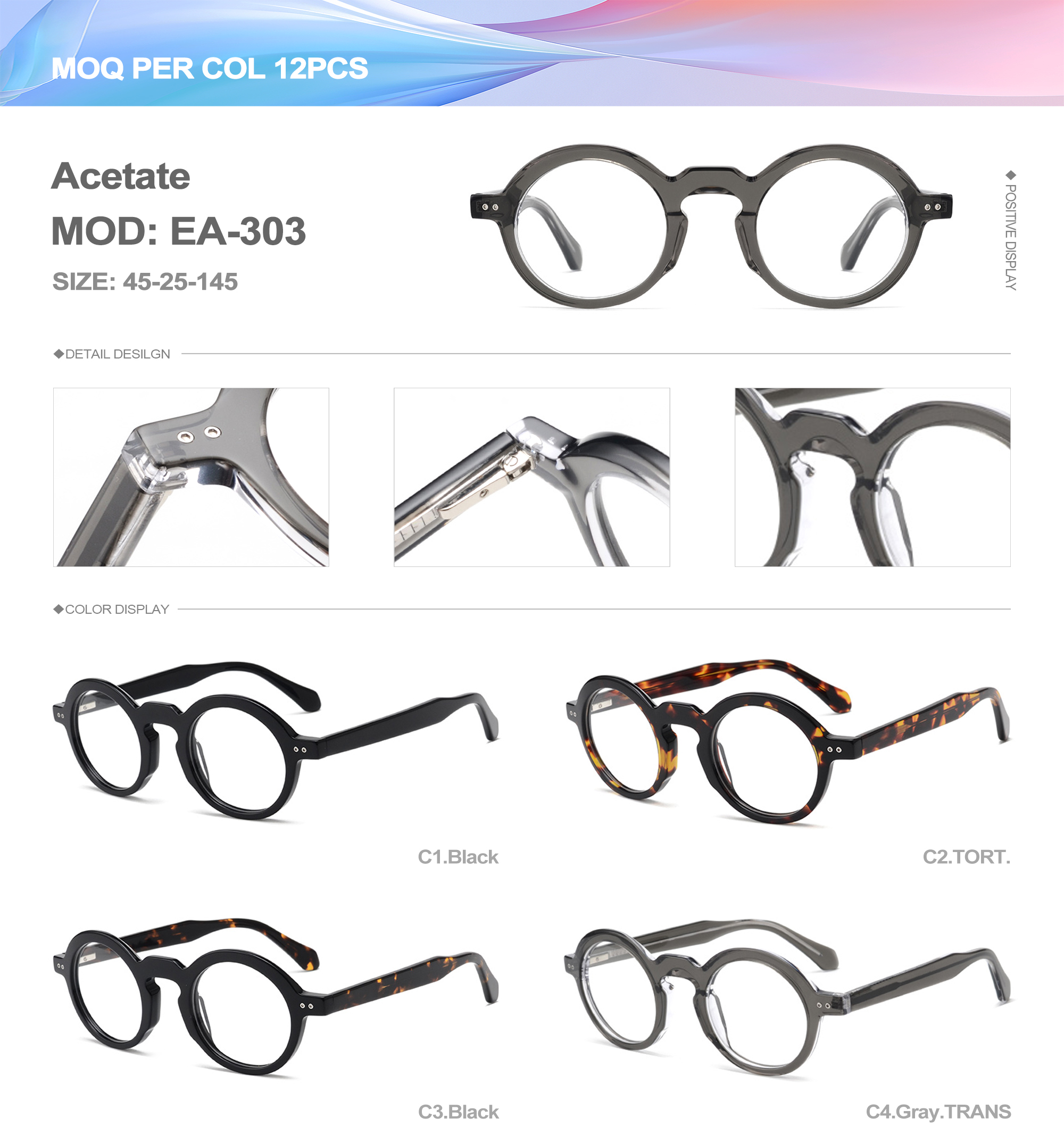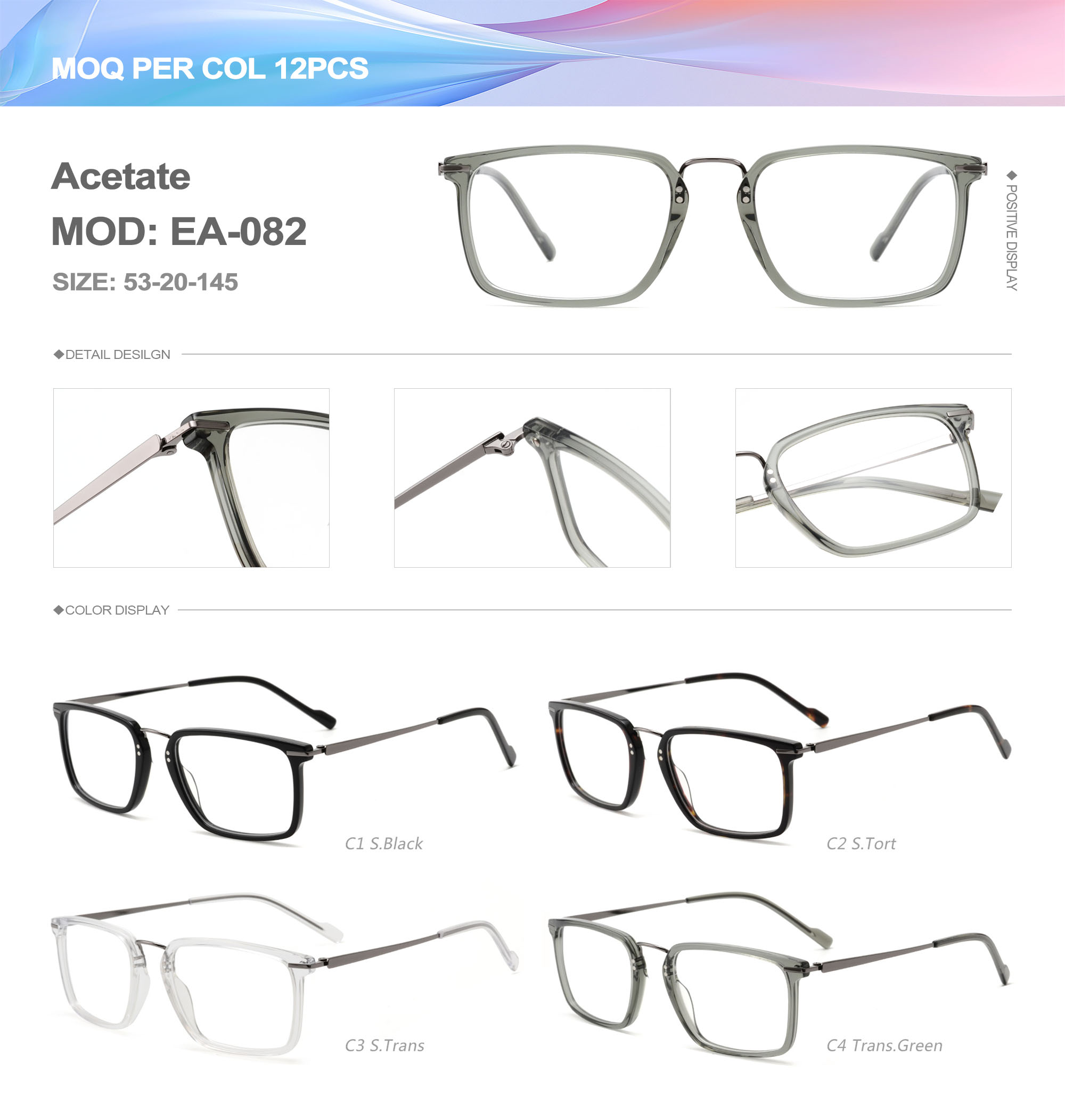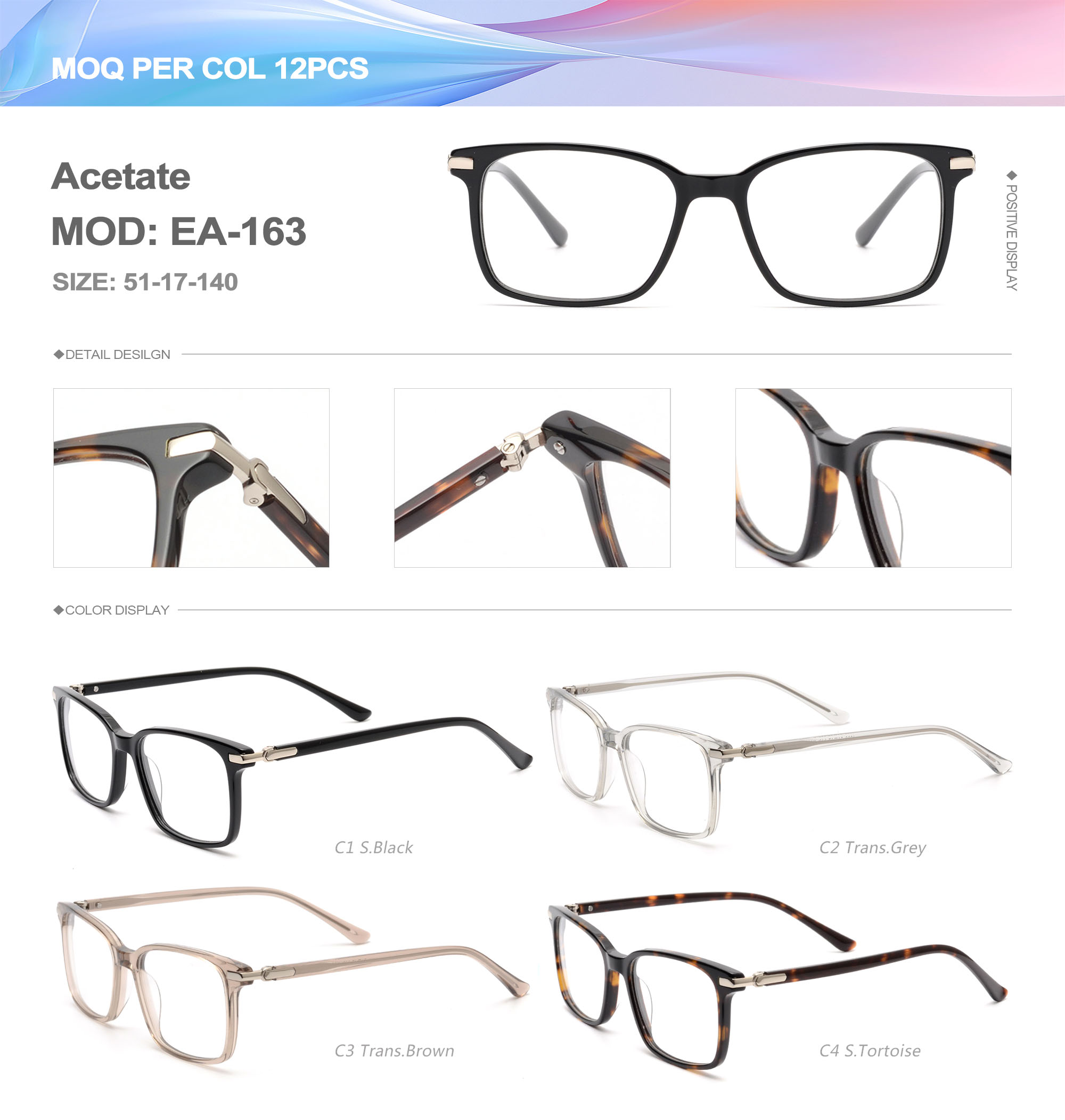 Acetate is an ideal material for eyeglass frames, it is durable and does not cause skin irritation. The acetate frame is made with a unique technology that turns plant material into durable plastic.