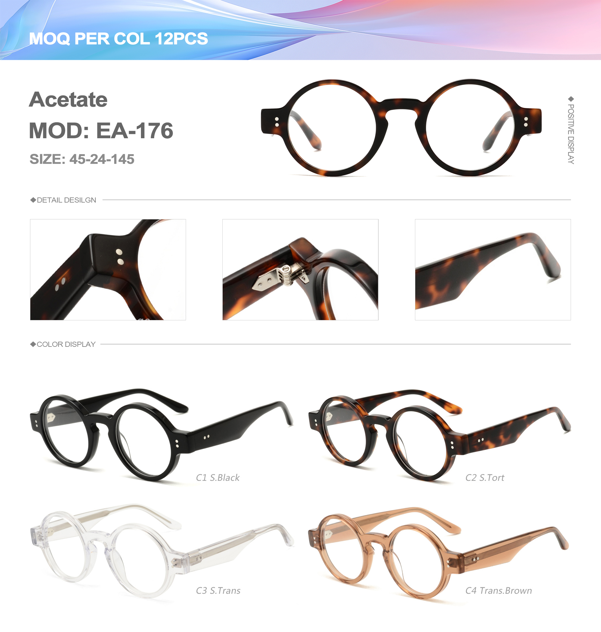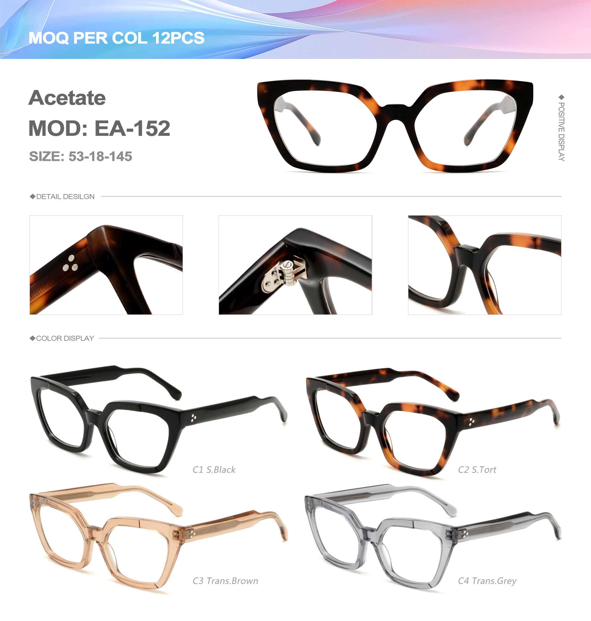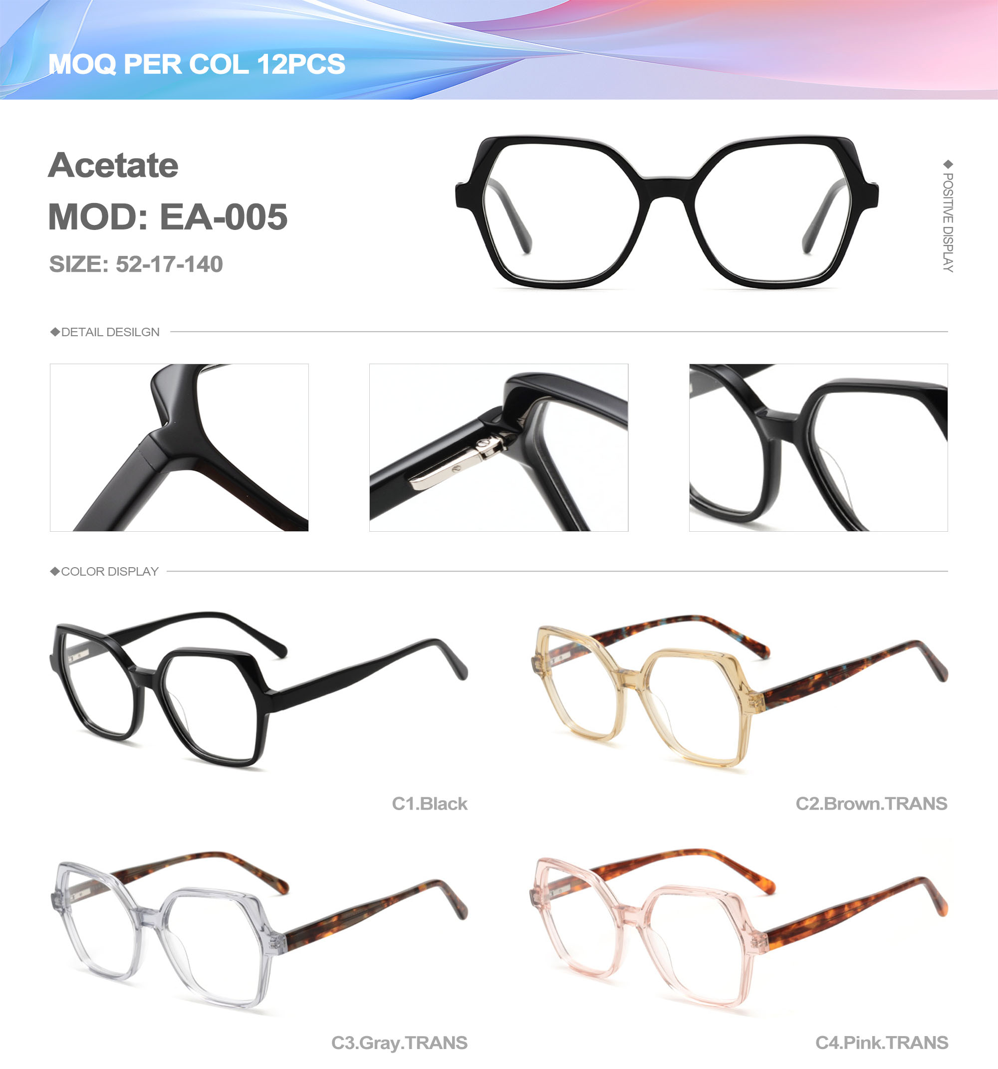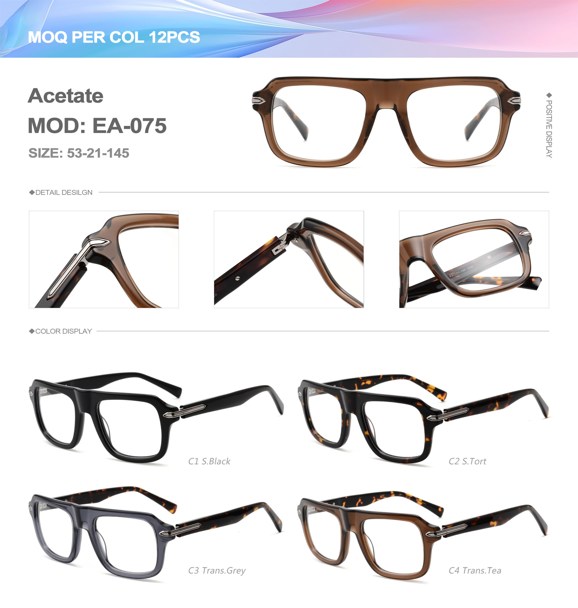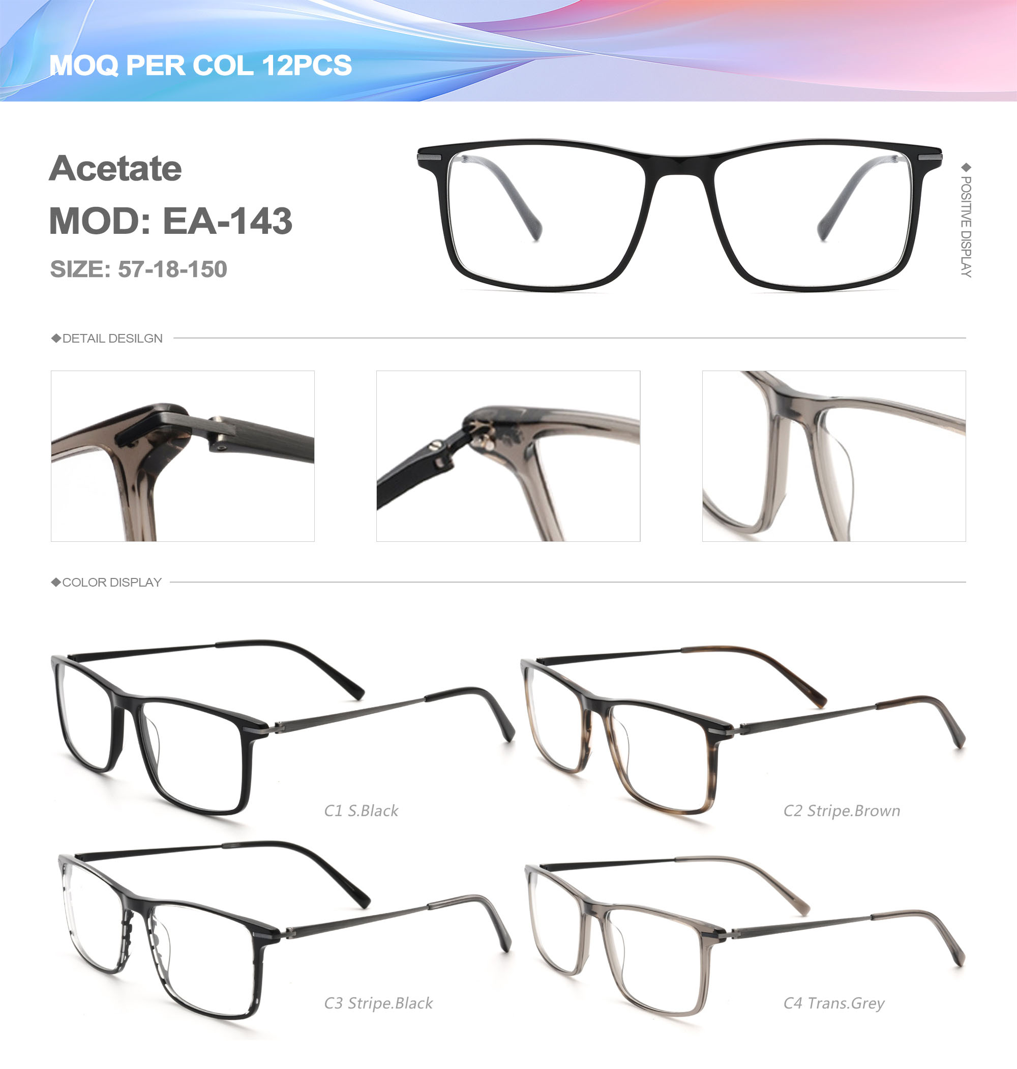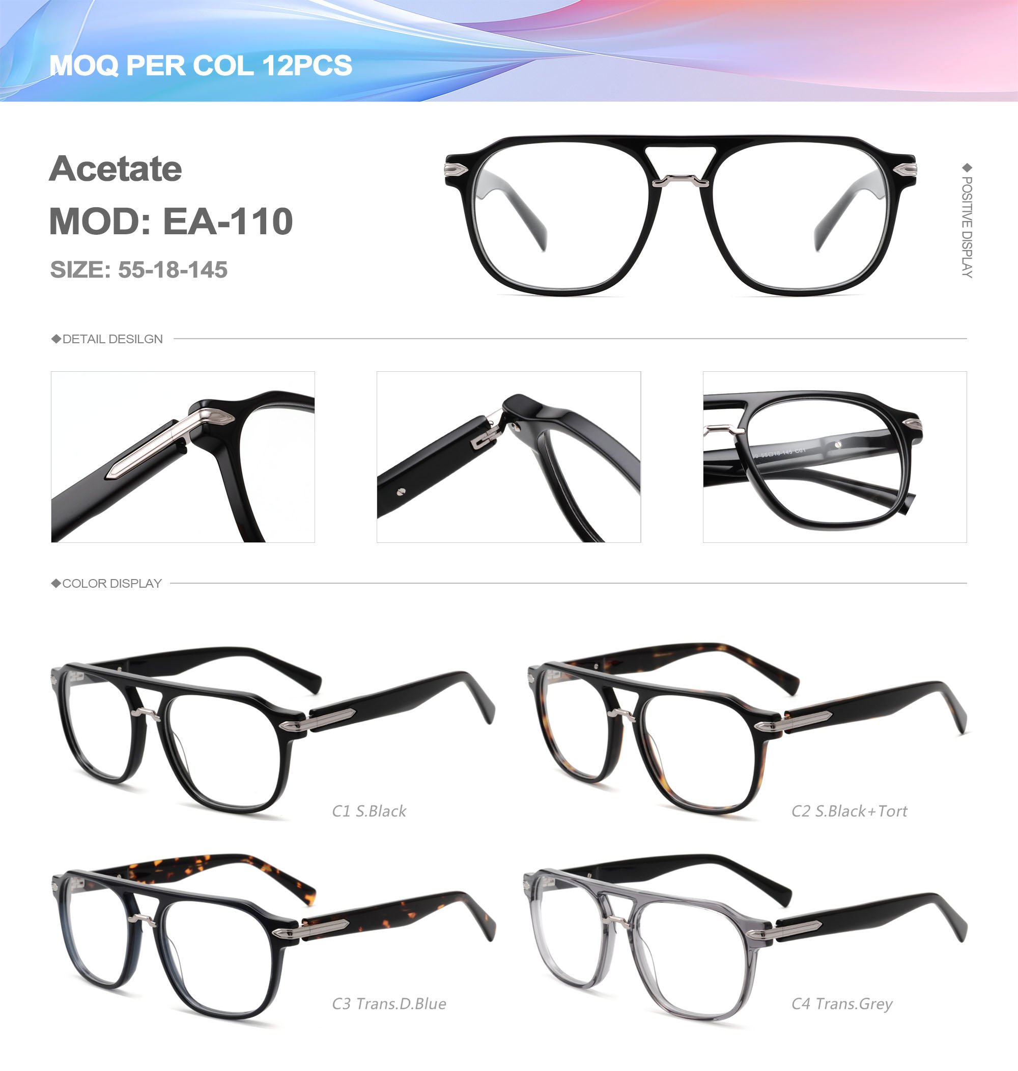Acetate is an ideal material for eyeglass frames, it is durable and does not cause skin irritation. The acetate frame is made with a unique technology that turns plant material into durable plastic.