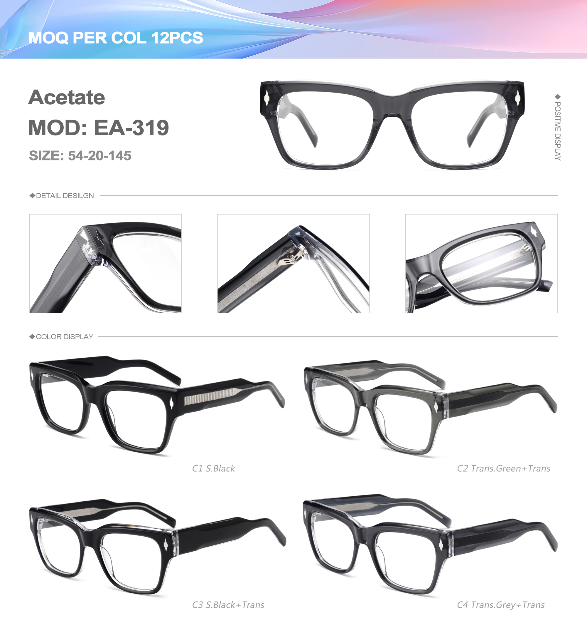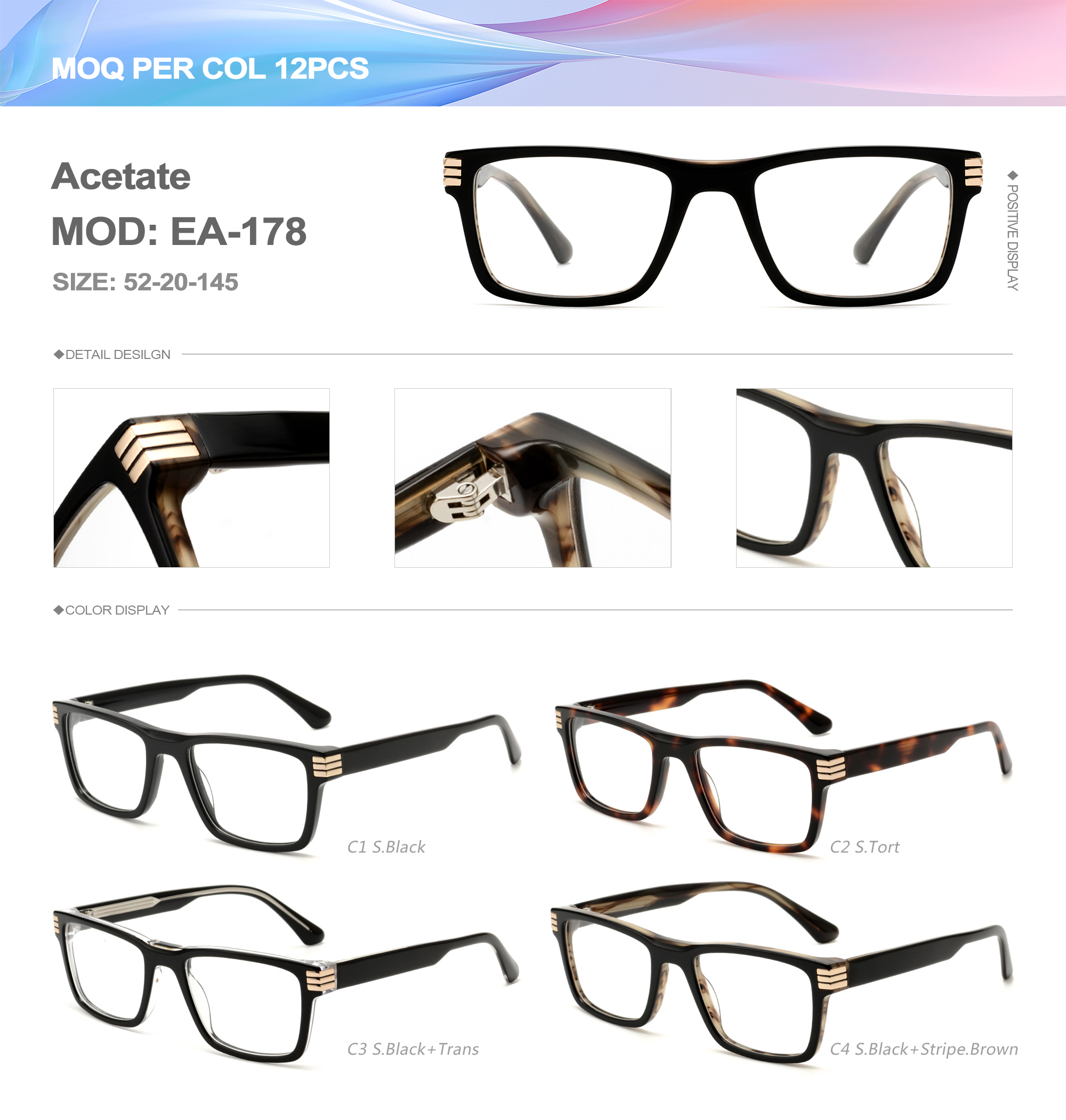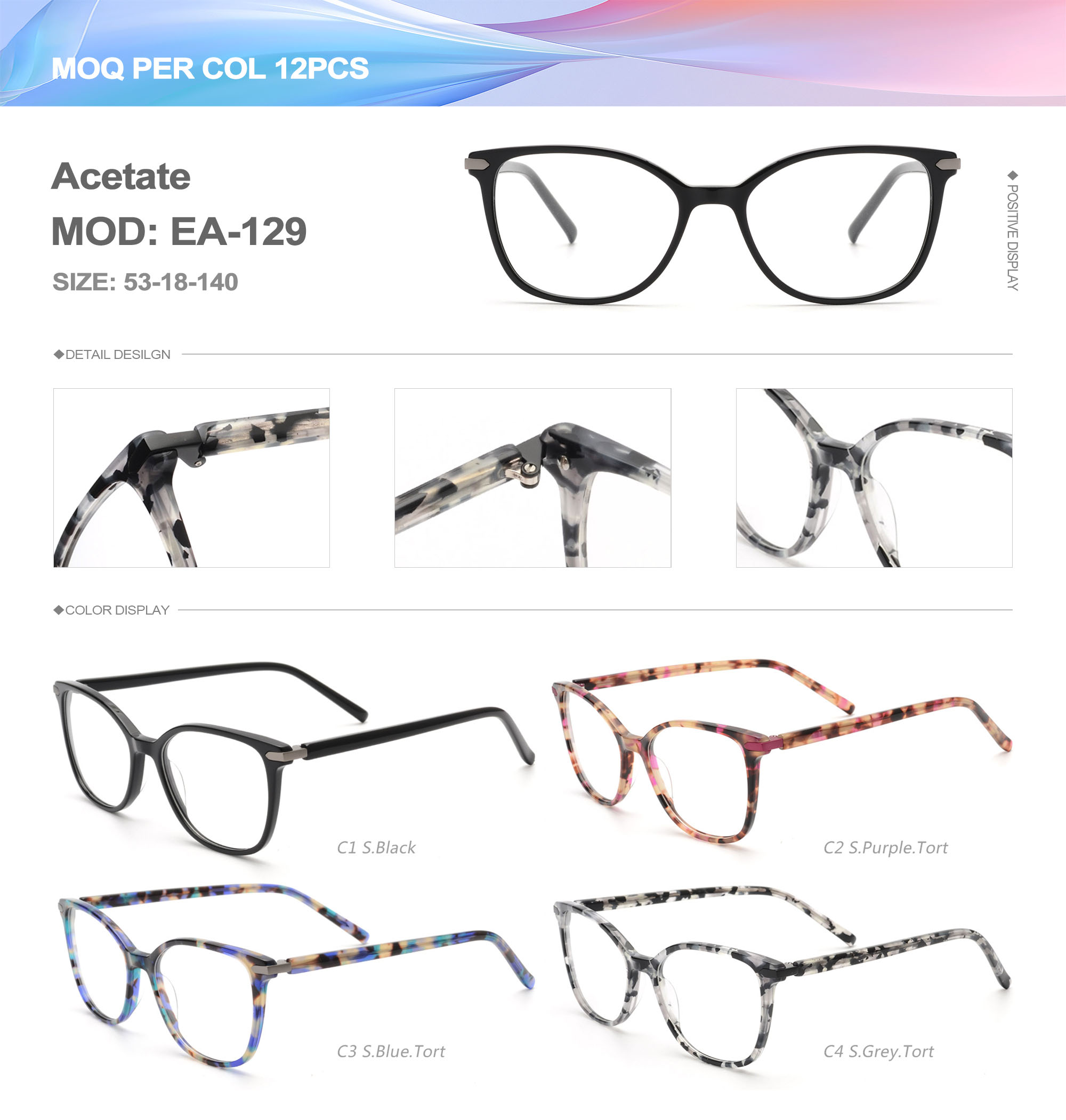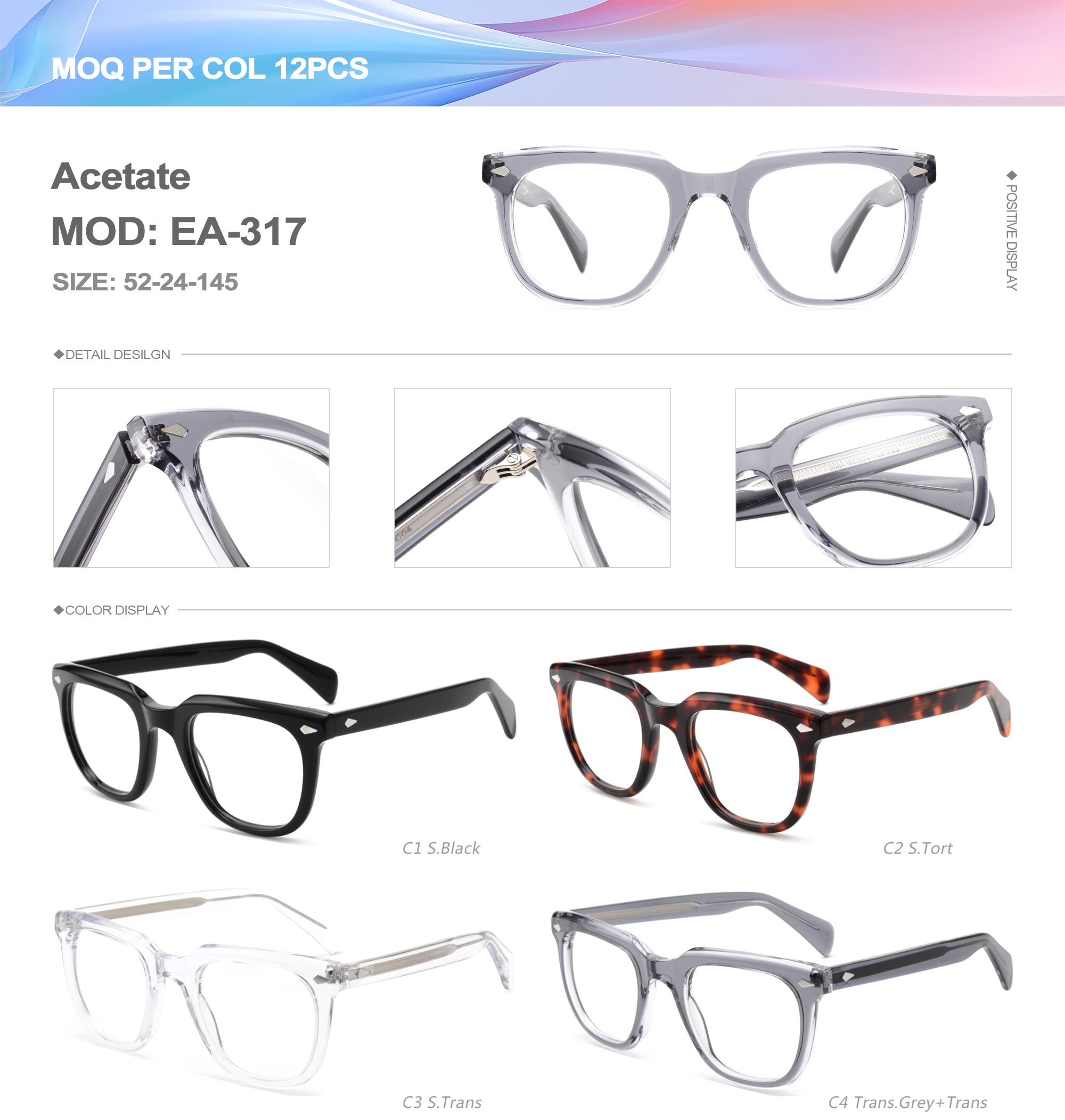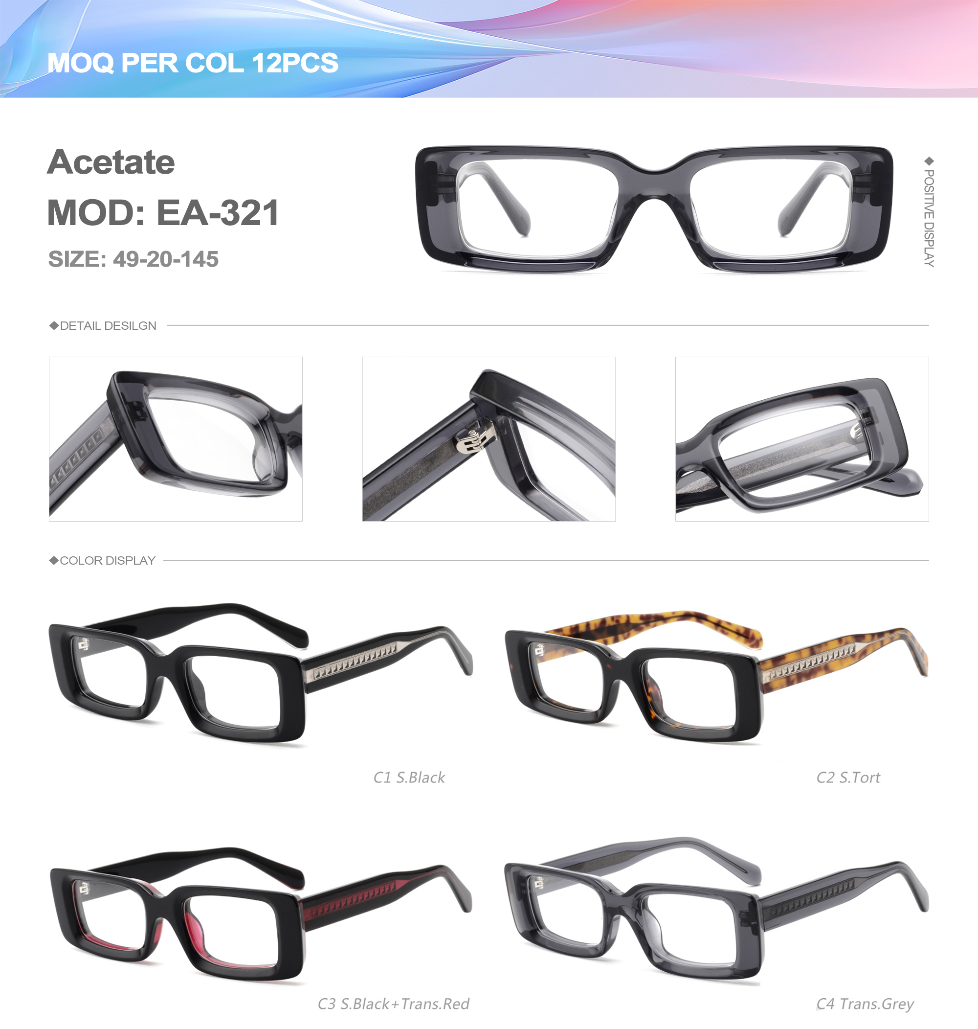 Acetate is an ideal material for eyeglass frames, it is durable and does not cause skin irritation. The acetate frame is made with a unique technology that turns plant material into durable plastic.