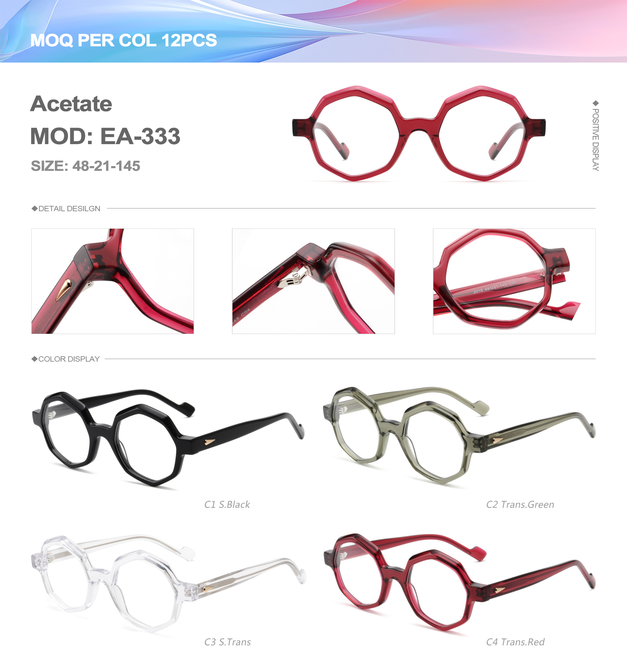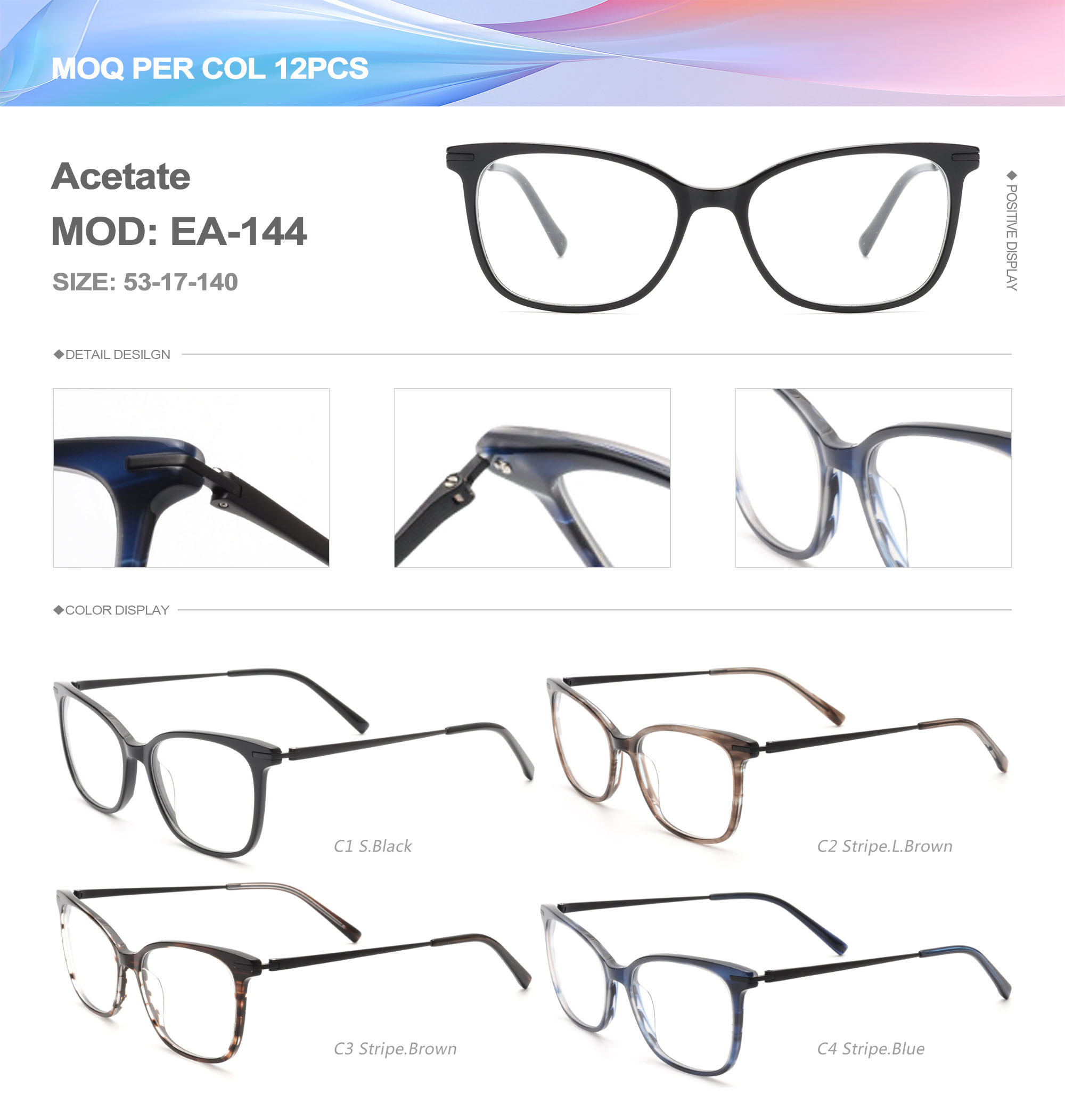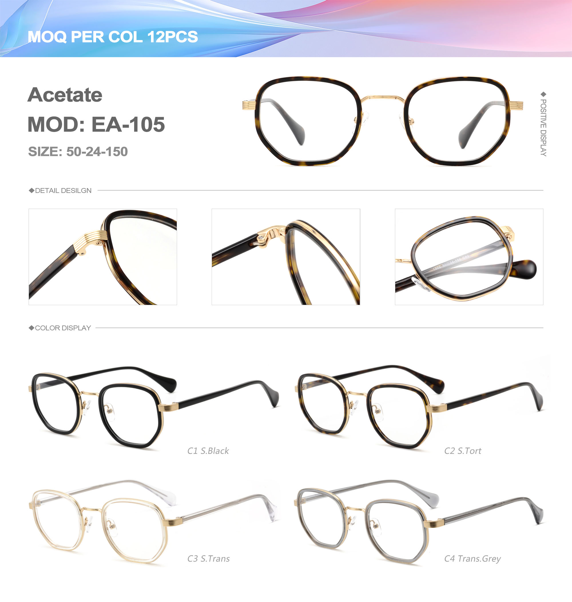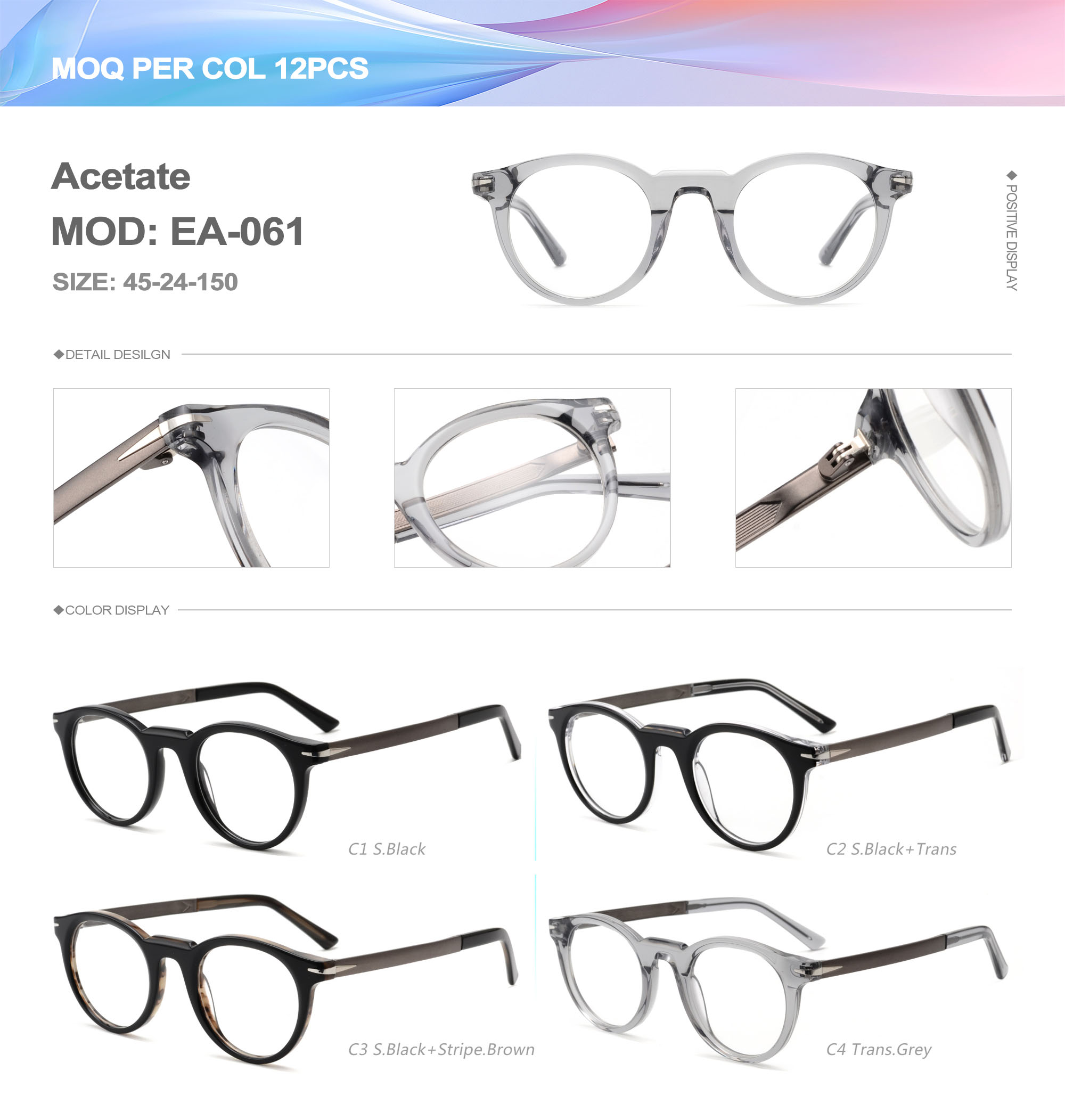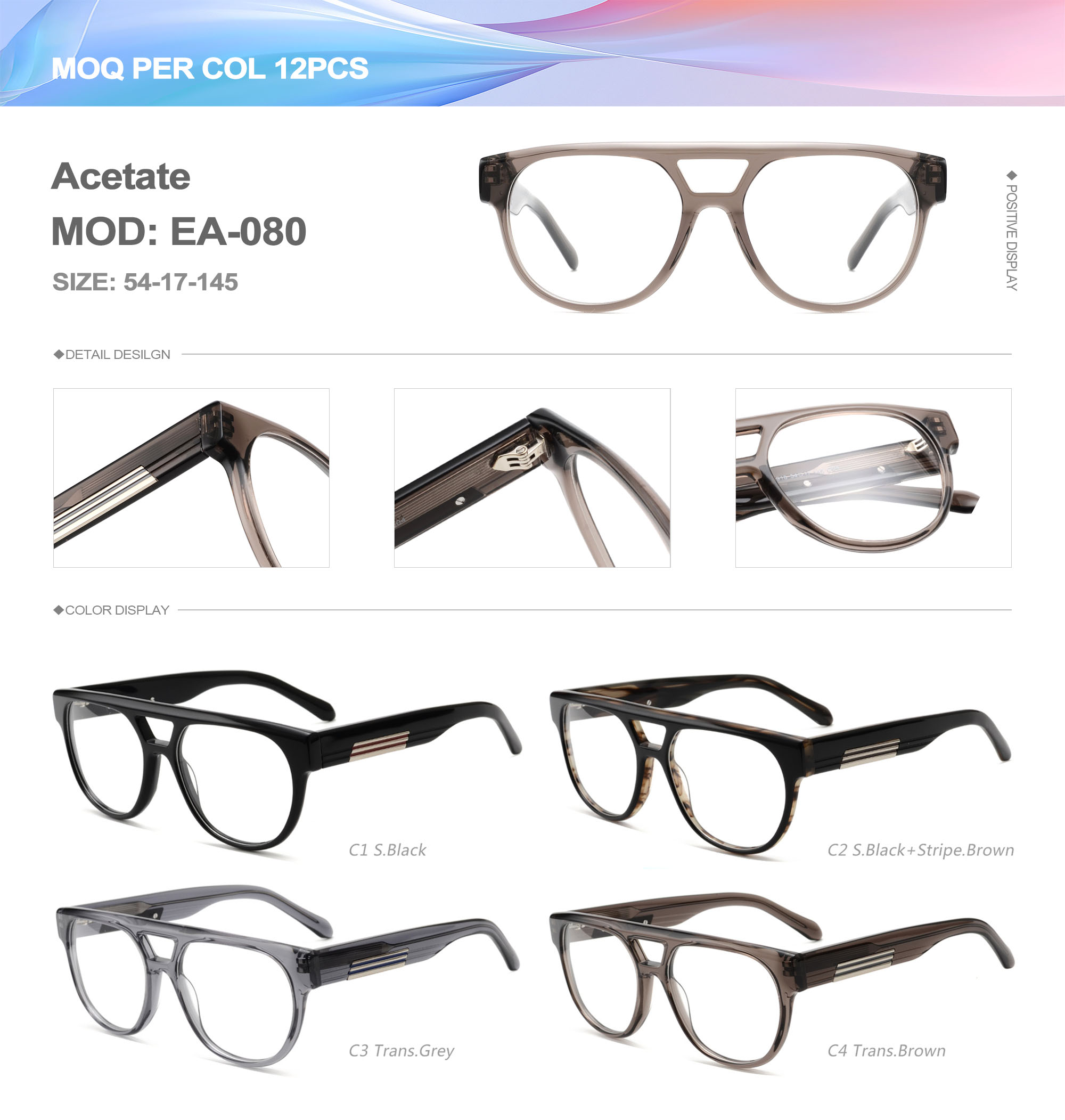 Acetate is an ideal material for eyeglass frames, it is durable and does not cause skin irritation. The acetate frame is made with a unique technology that turns plant material into durable plastic.