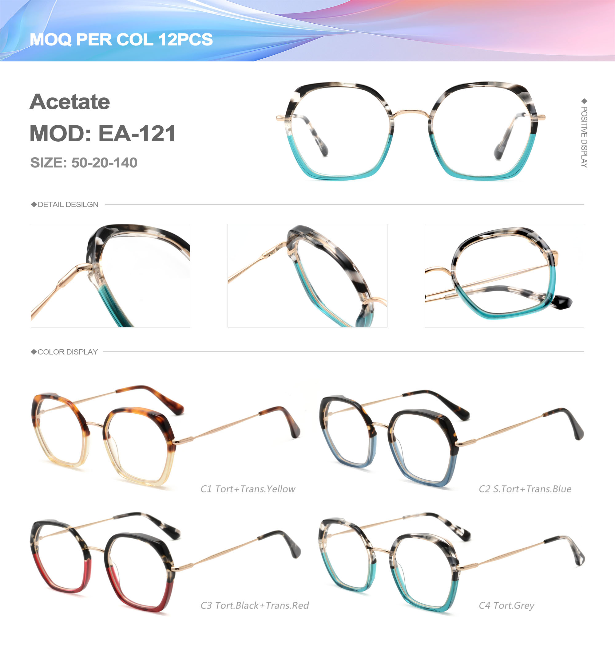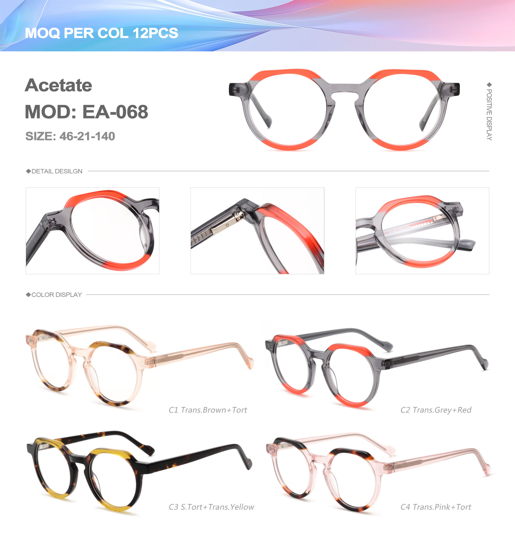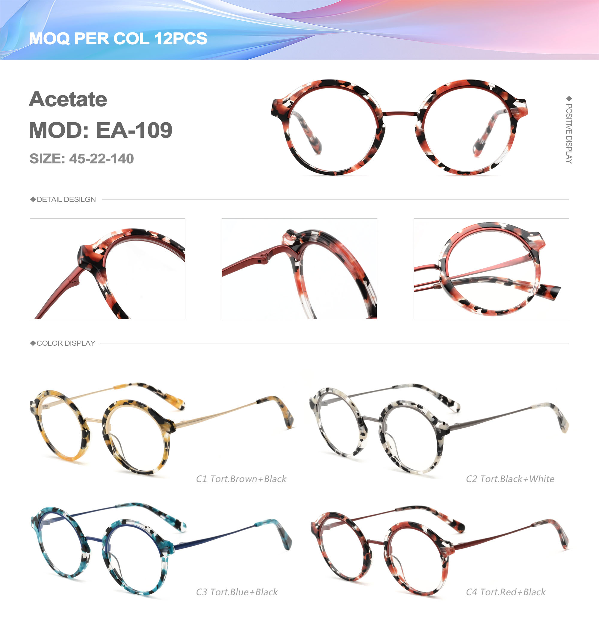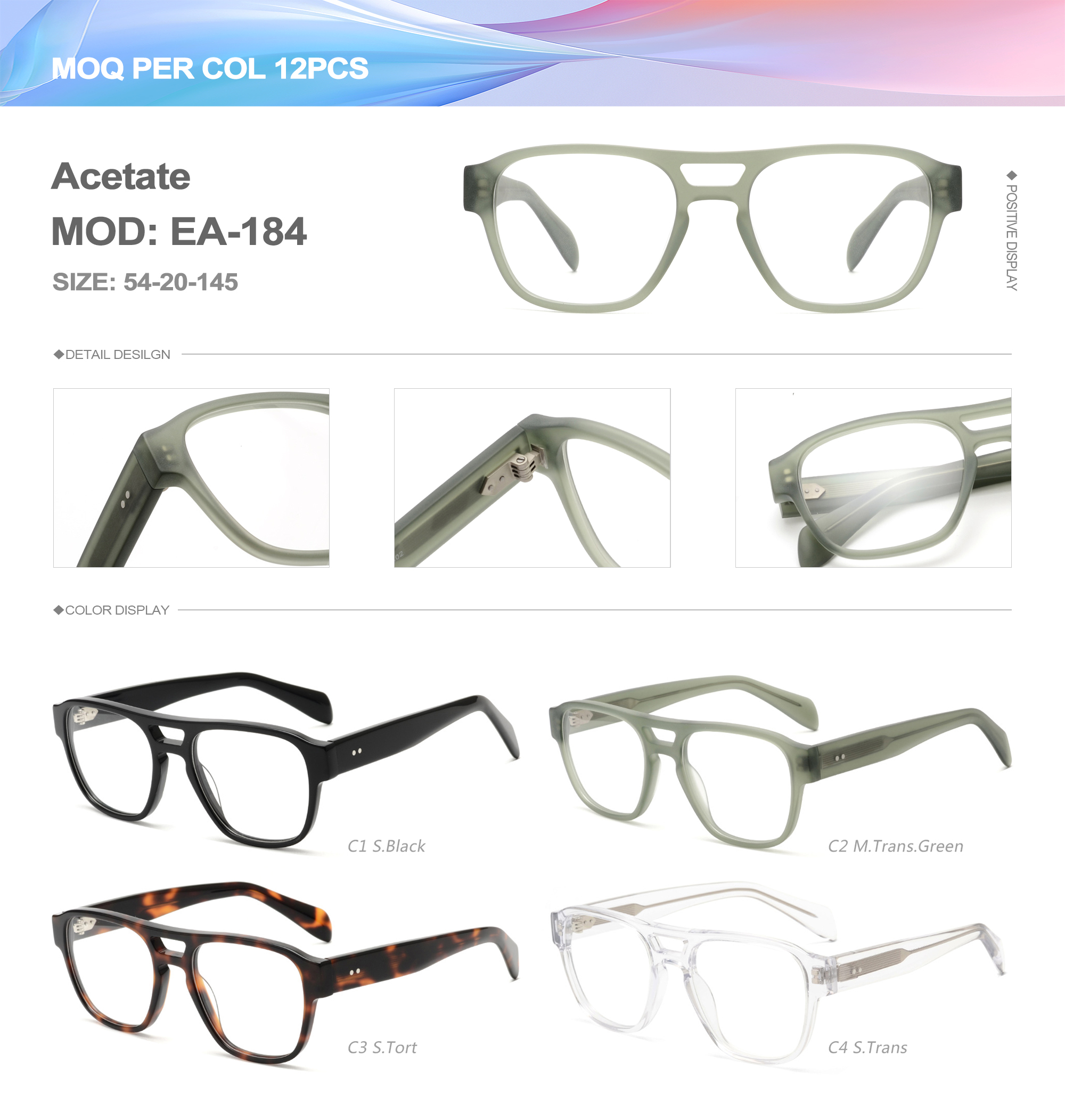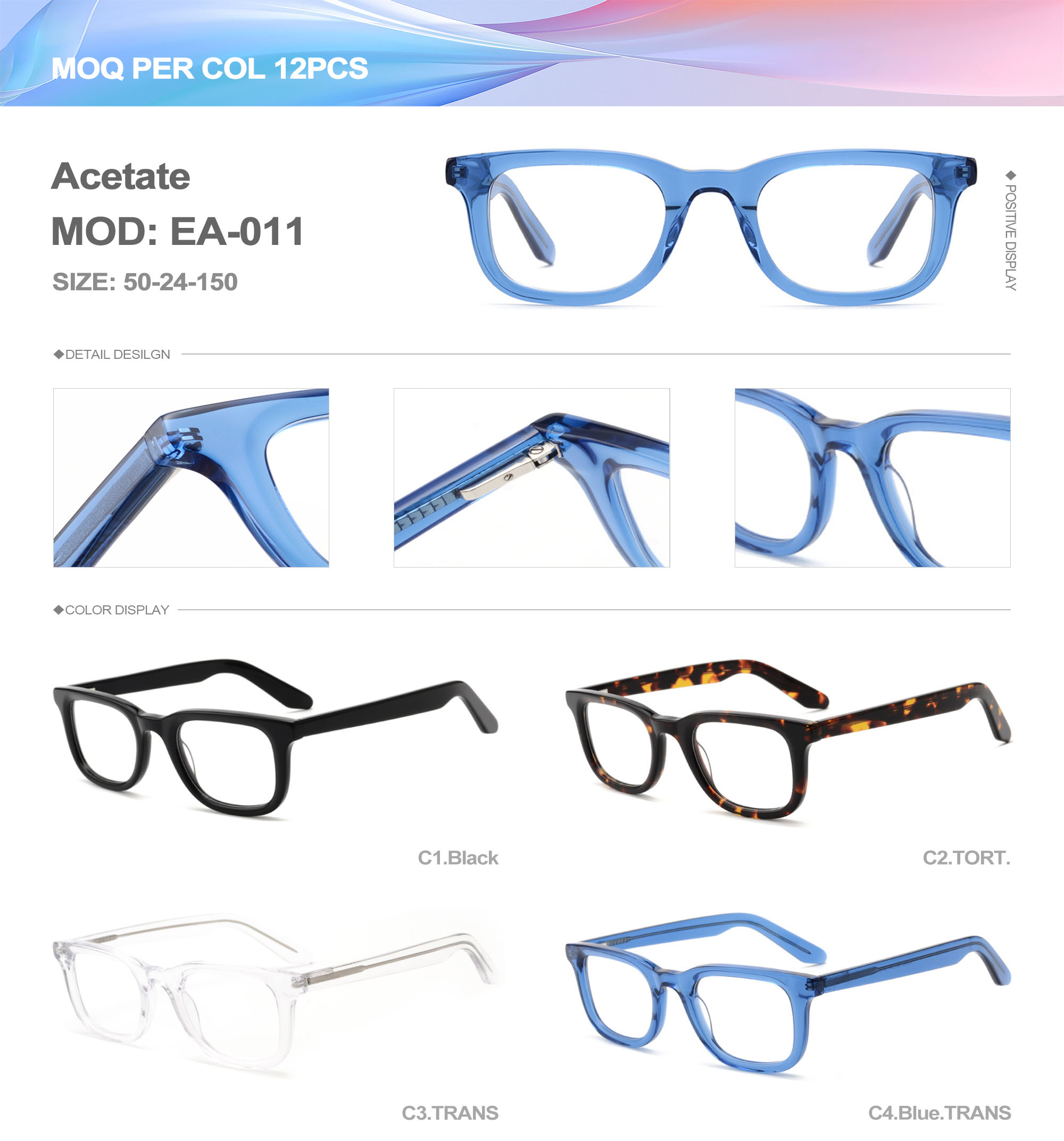 Acetate is an ideal material for eyeglass frames, it is durable and does not cause skin irritation. The acetate frame is made with a unique technology that turns plant material into durable plastic.