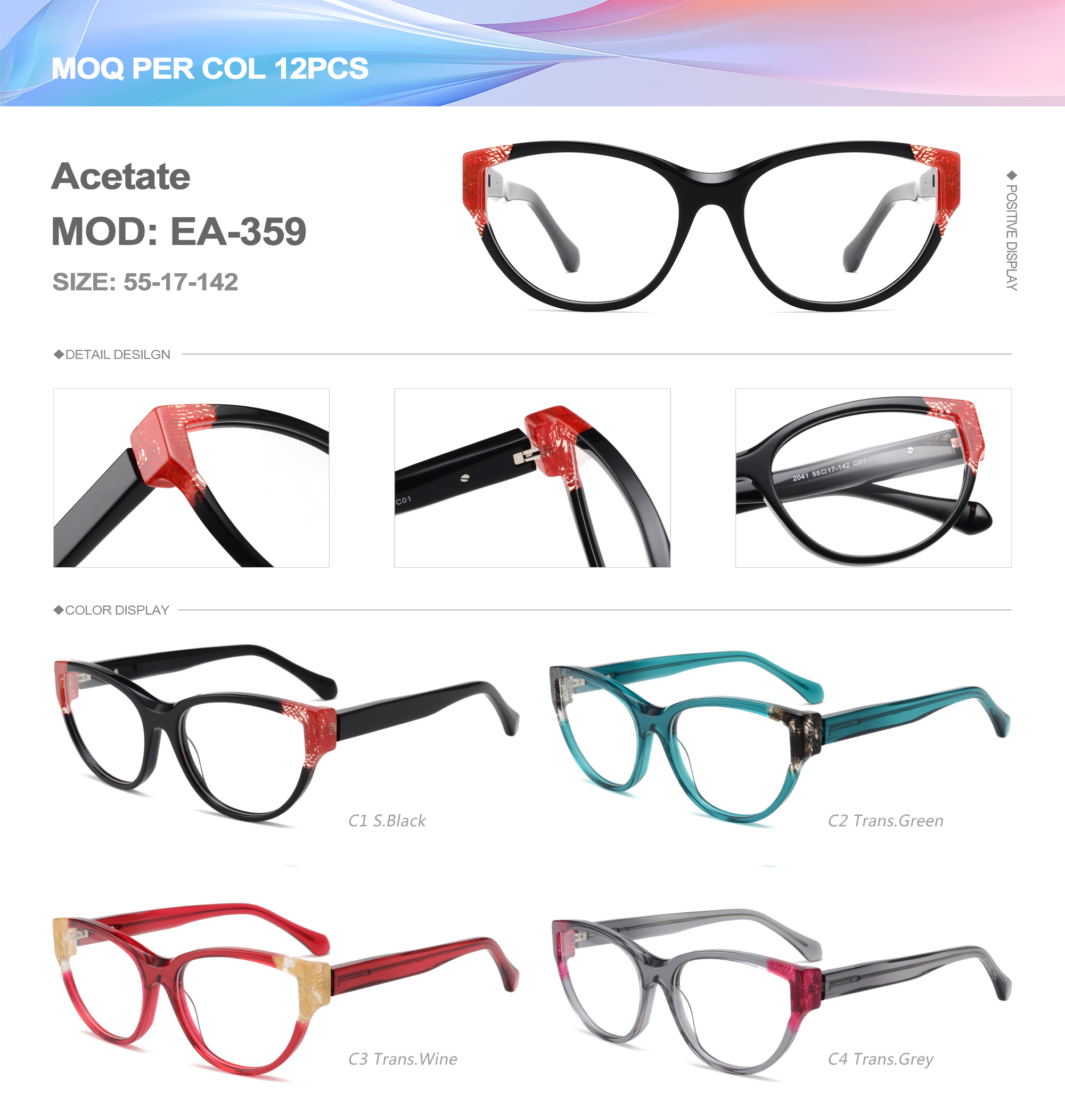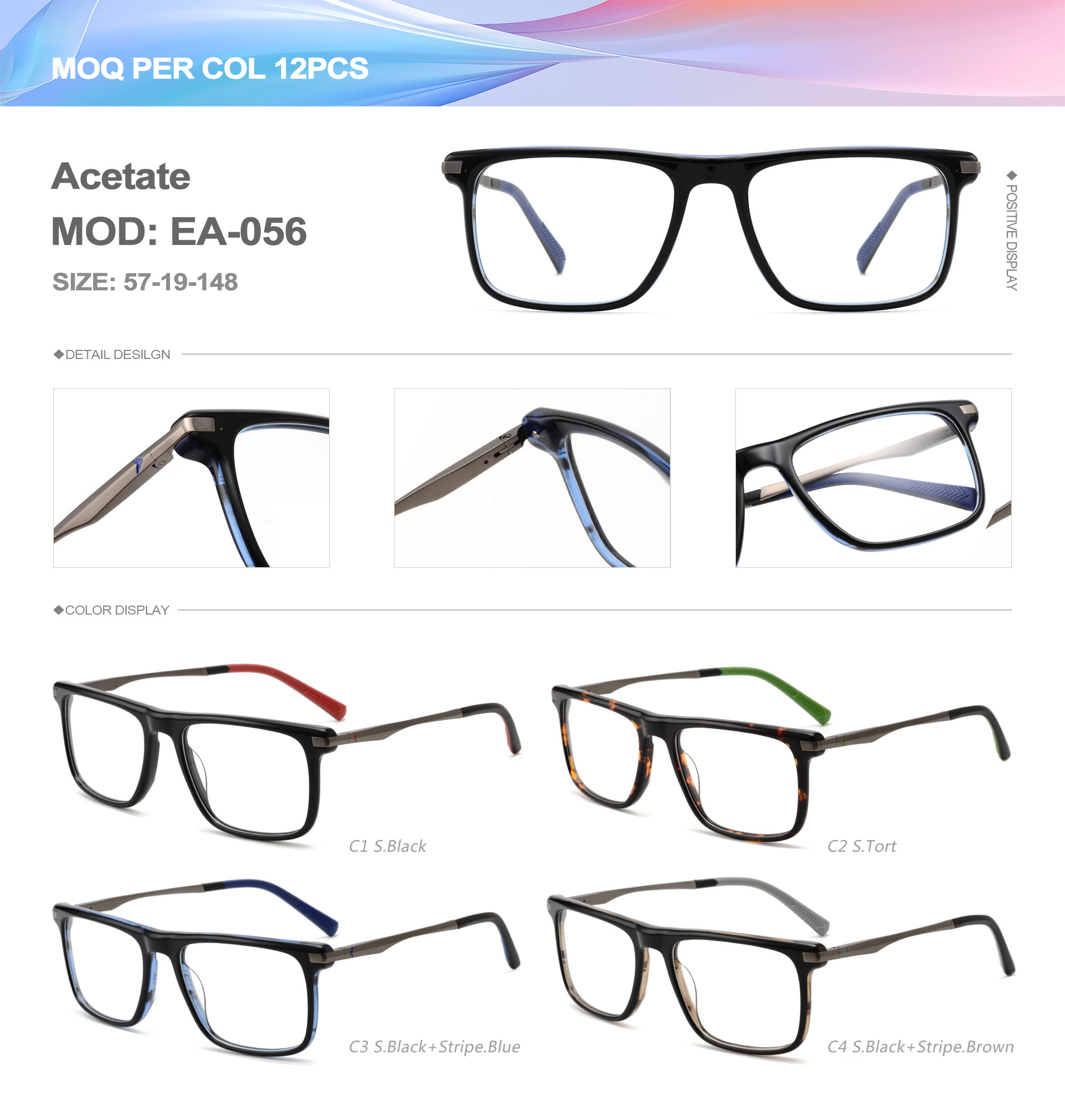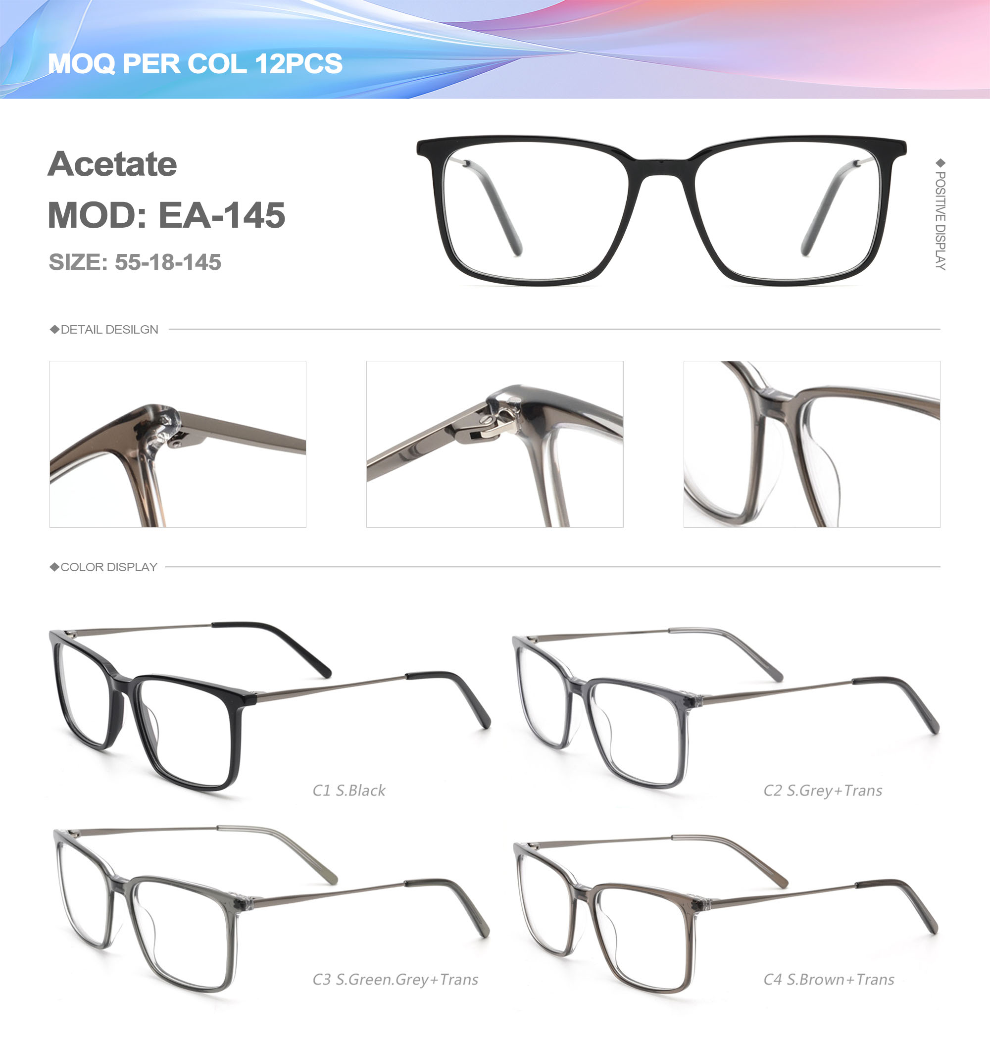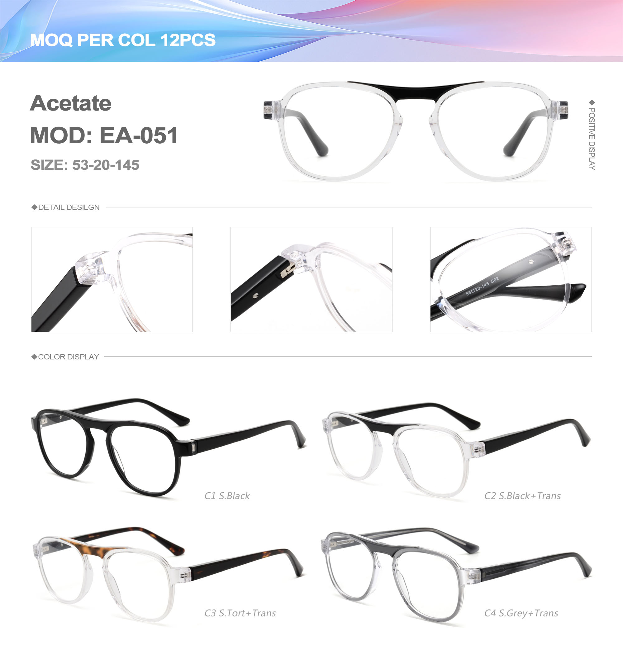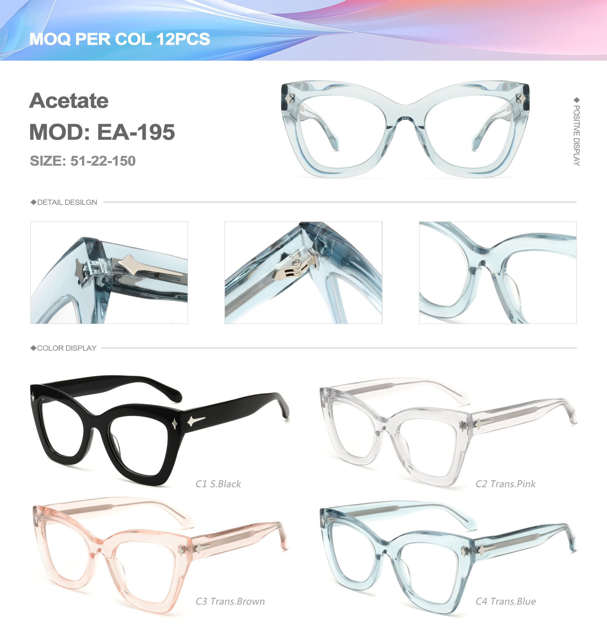 Acetate is an ideal material for eyeglass frames, it is durable and does not cause skin irritation. The acetate frame is made with a unique technology that turns plant material into durable plastic.