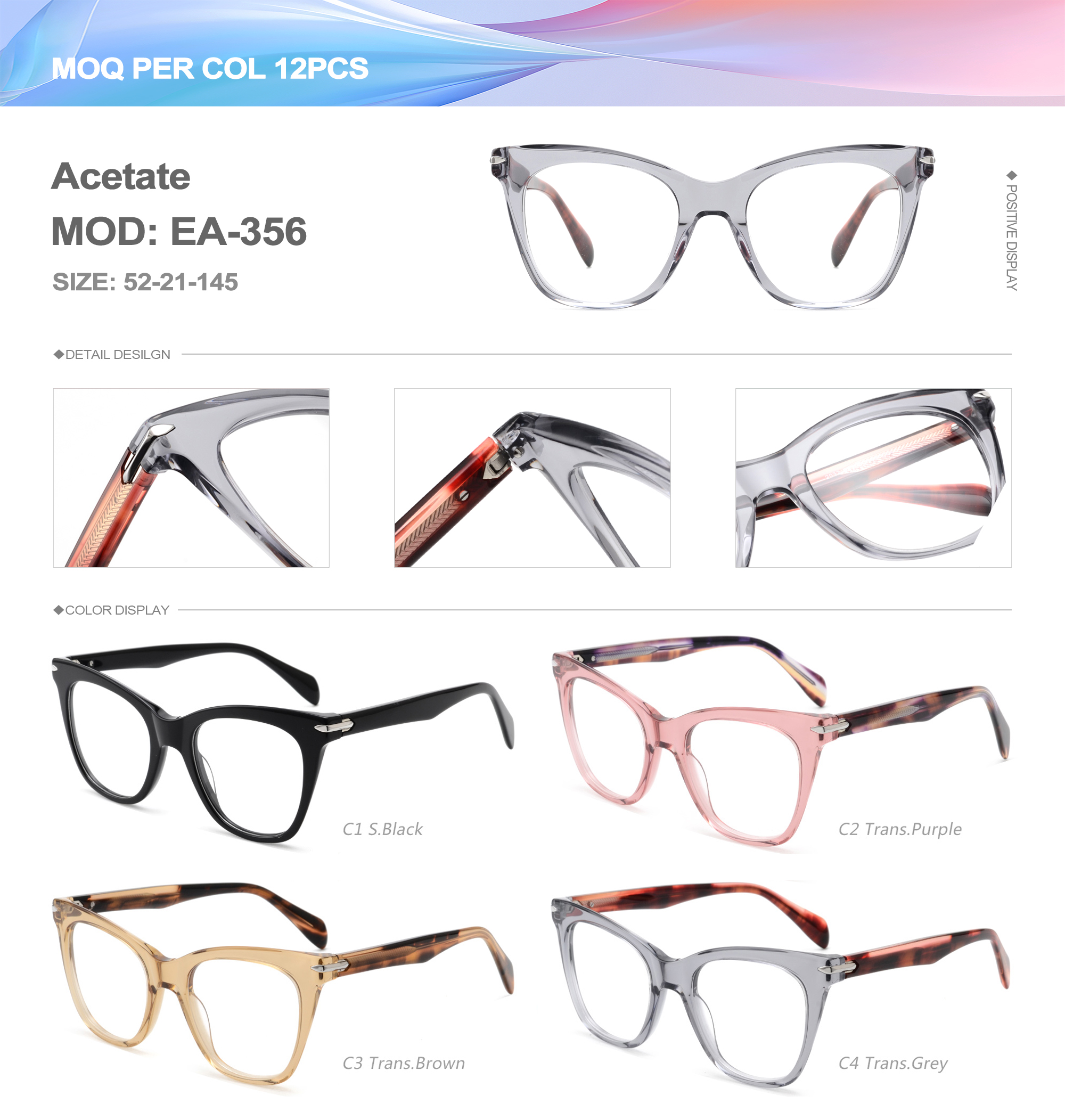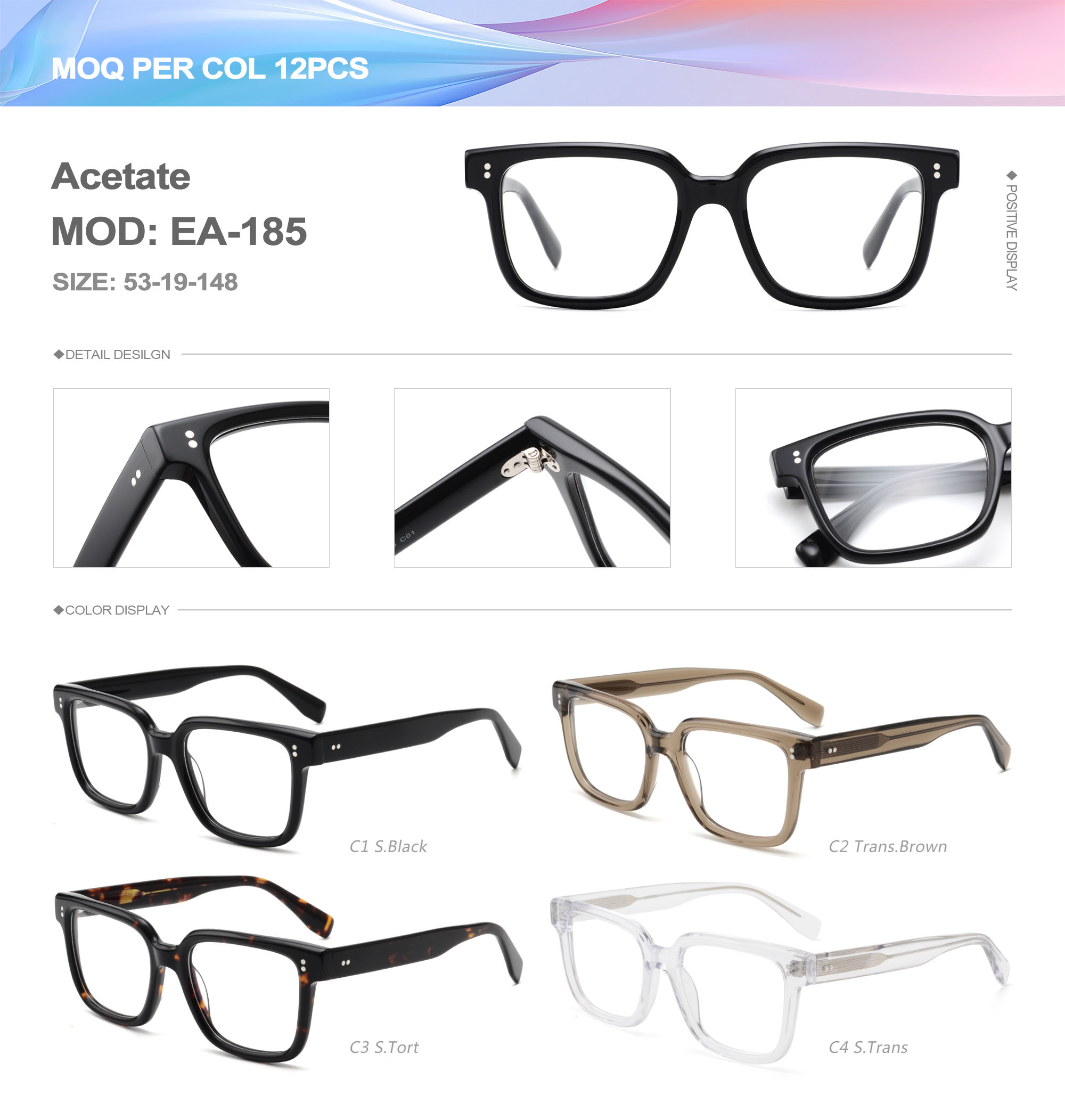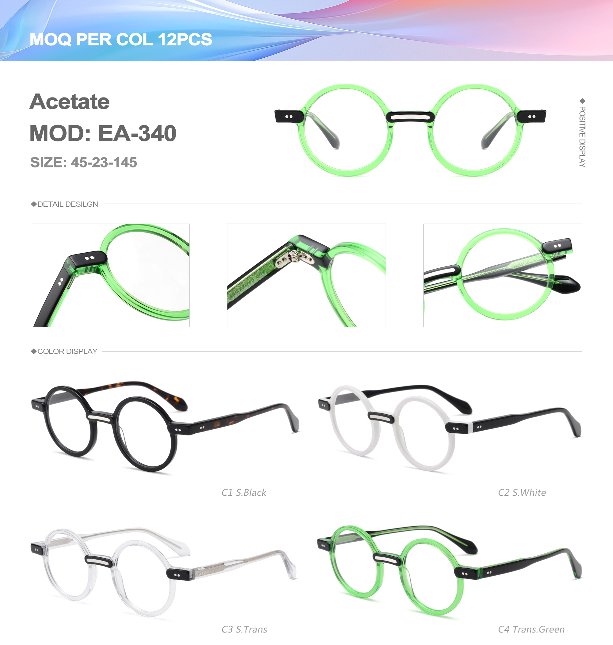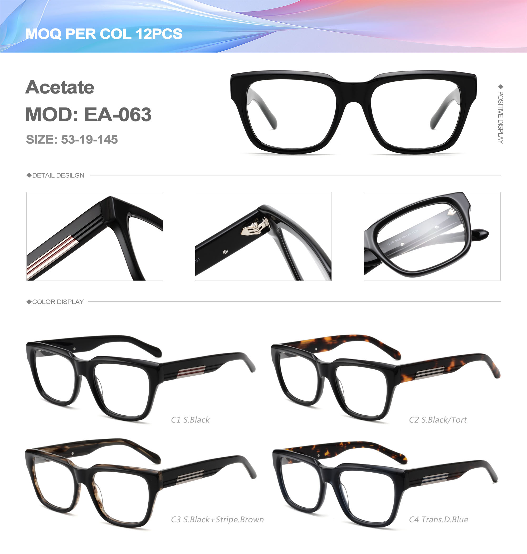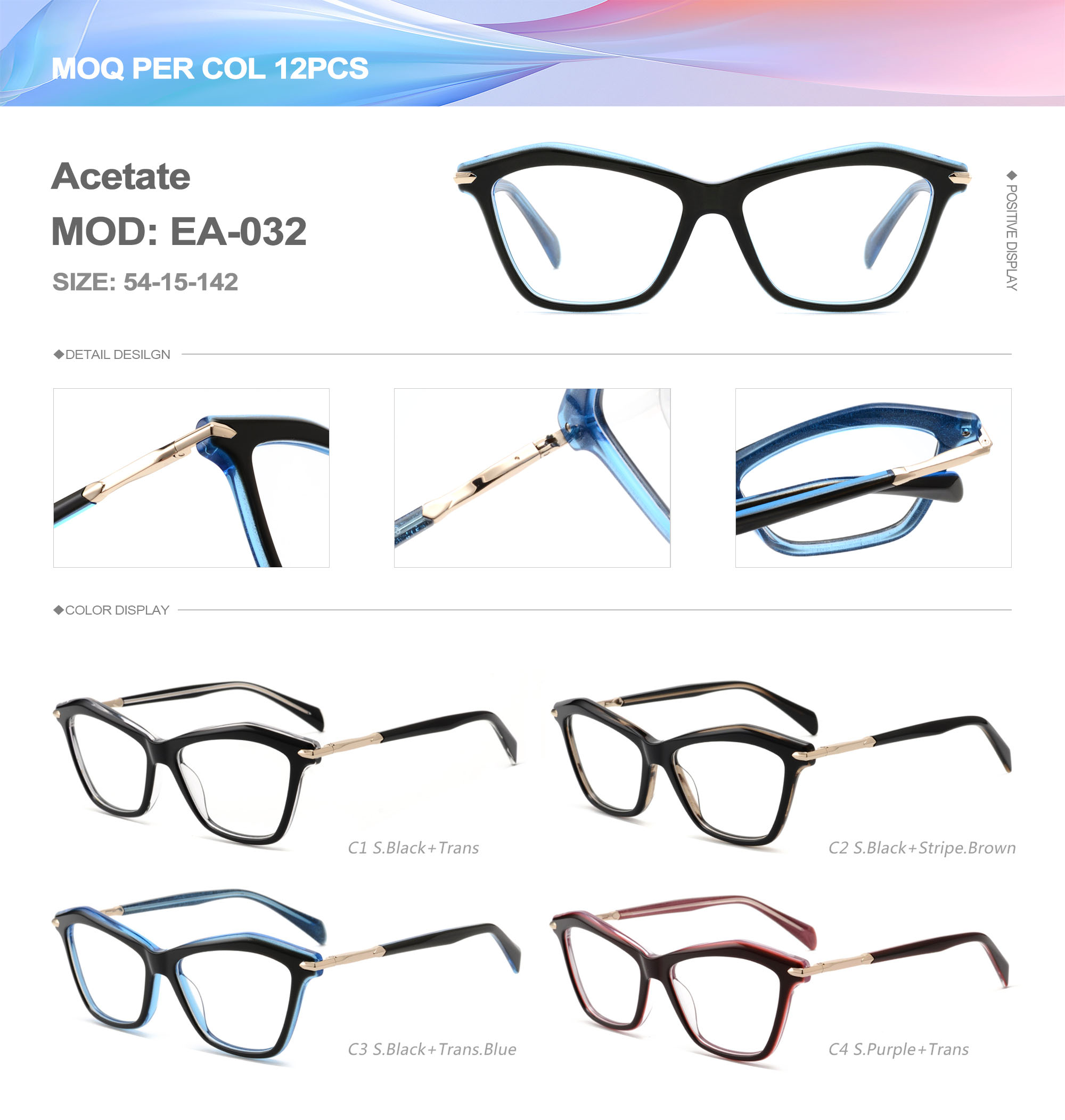 Acetate is an ideal material for eyeglass frames, it is durable and does not cause skin irritation. The acetate frame is made with a unique technology that turns plant material into durable plastic.