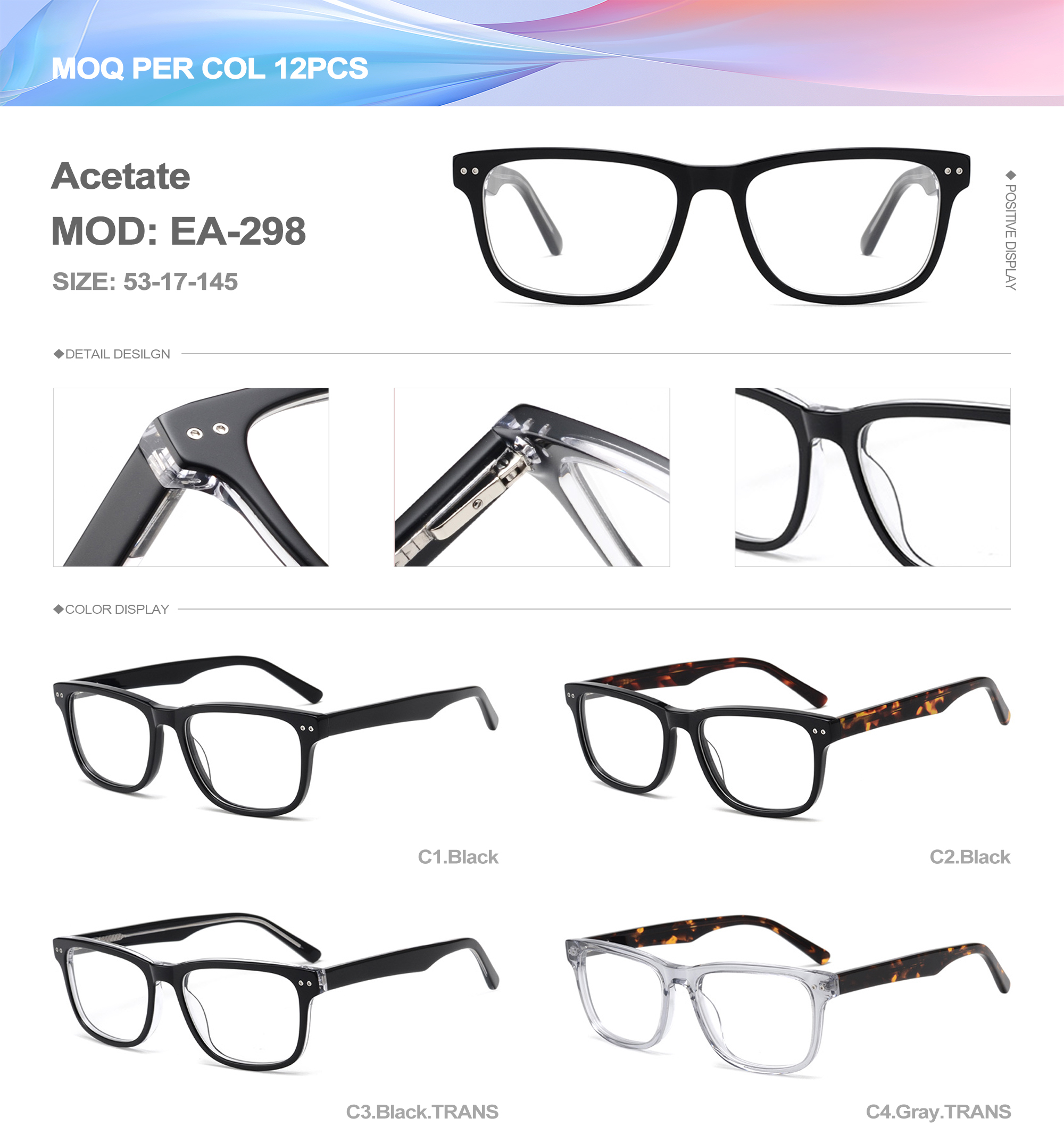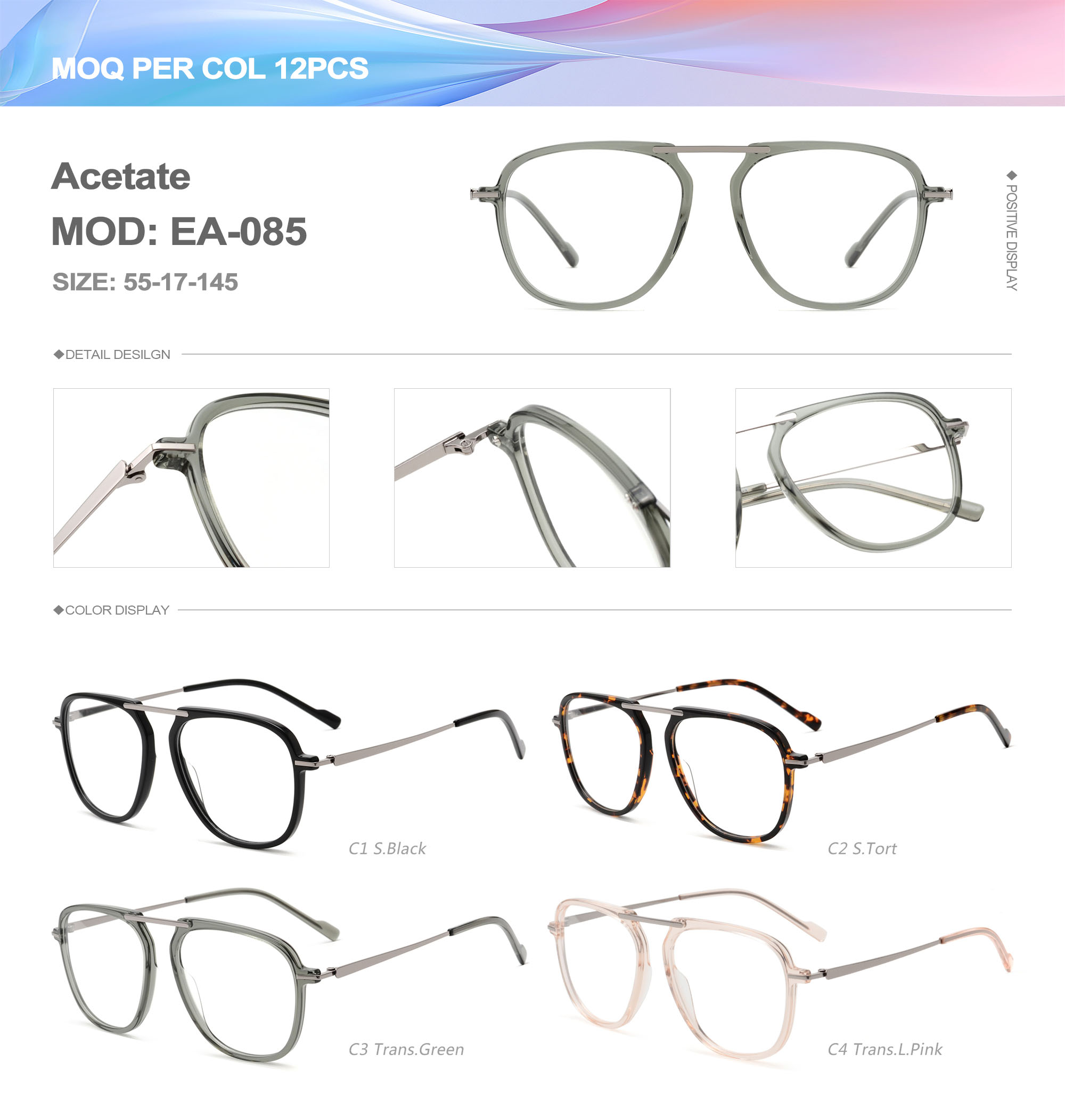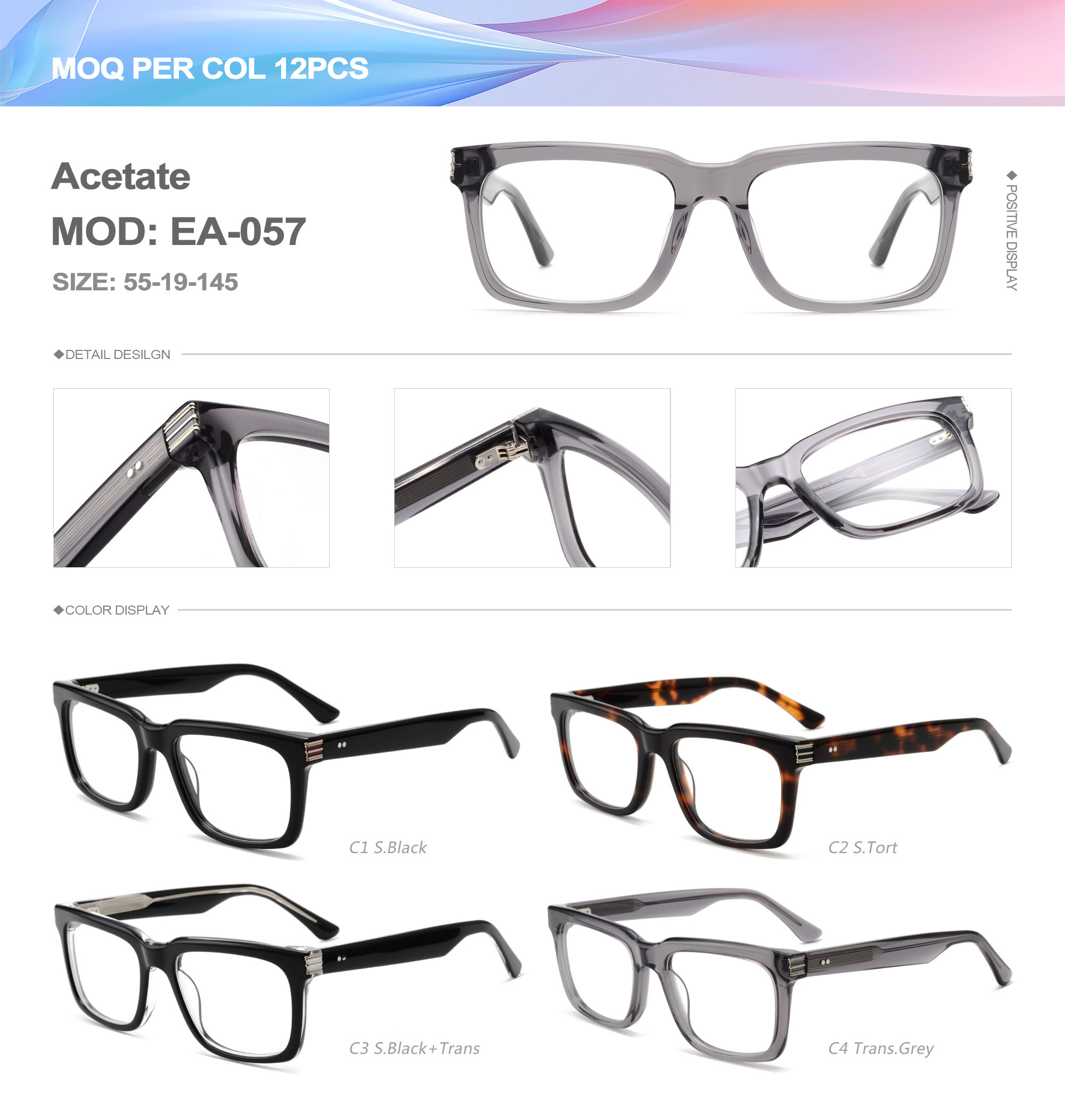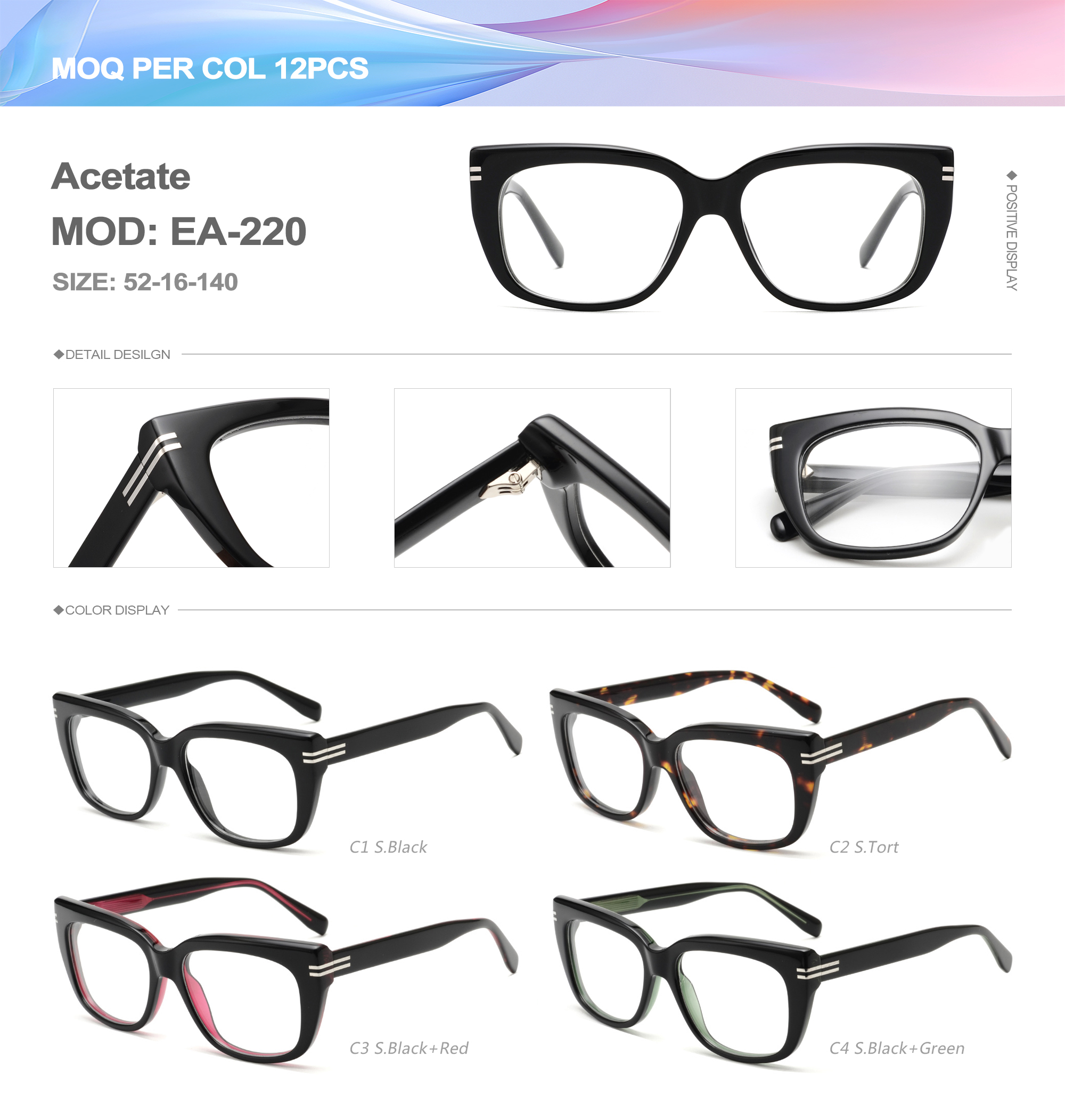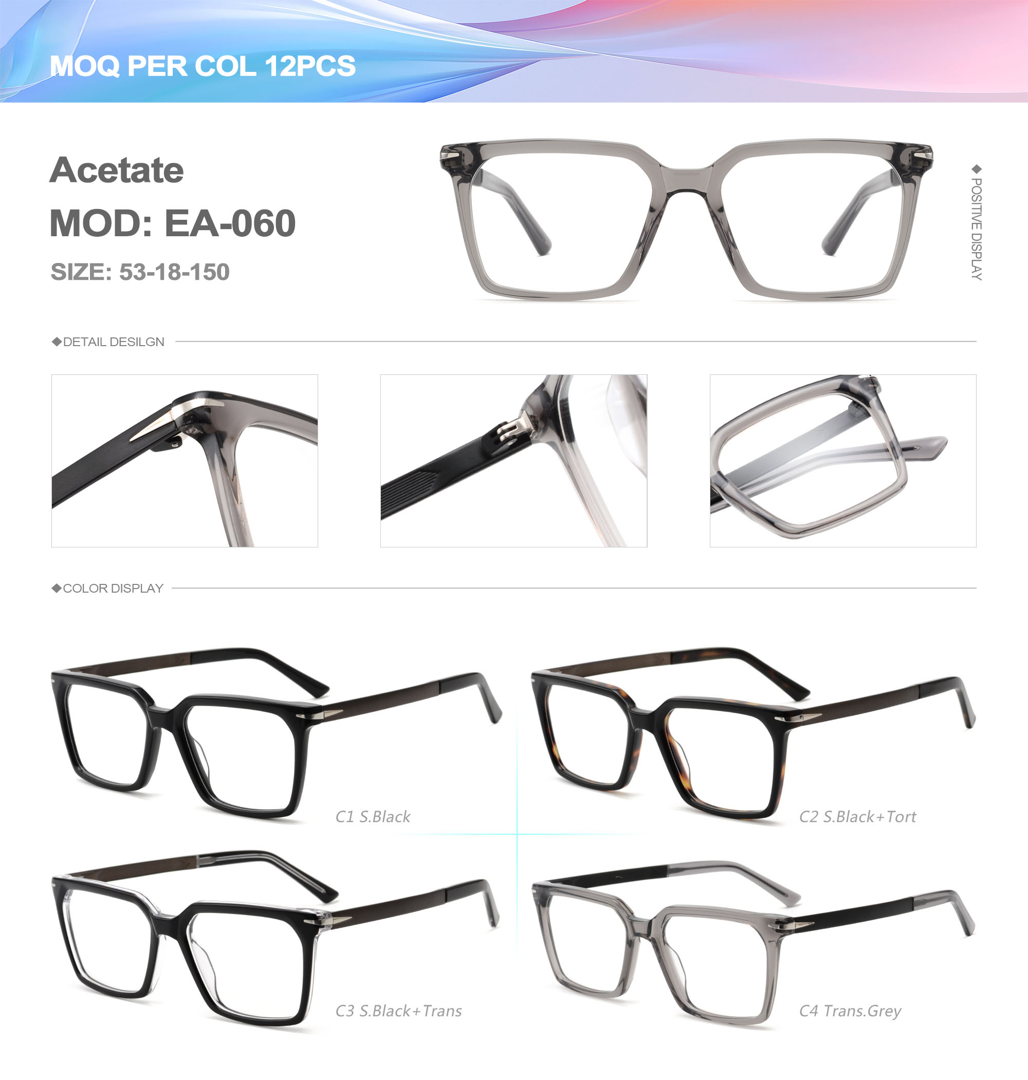 Acetate is an ideal material for eyeglass frames, it is durable and does not cause skin irritation. The acetate frame is made with a unique technology that turns plant material into durable plastic.