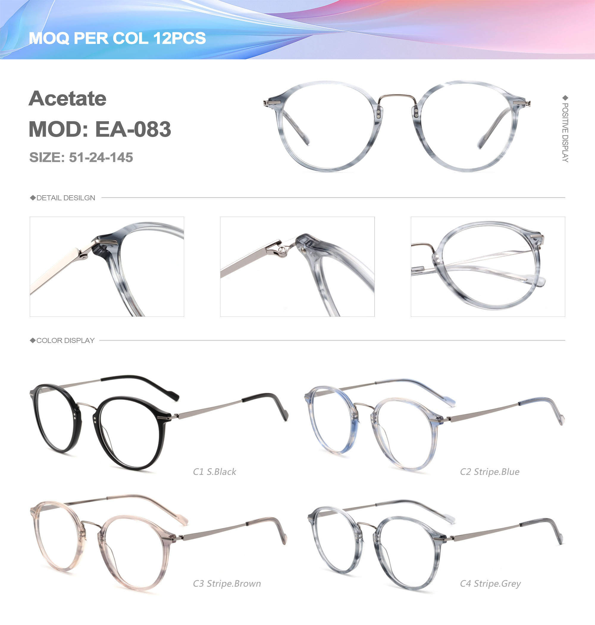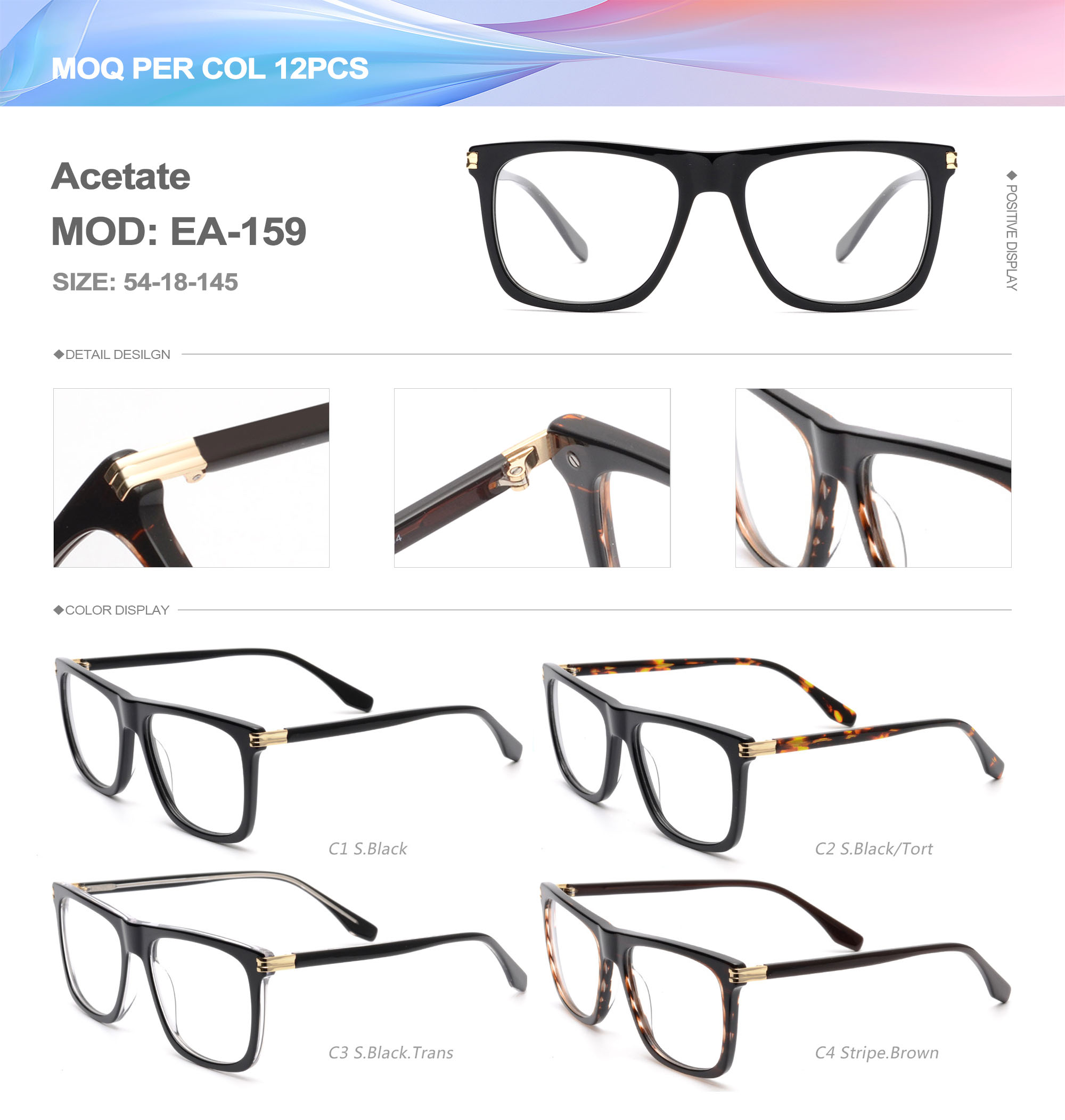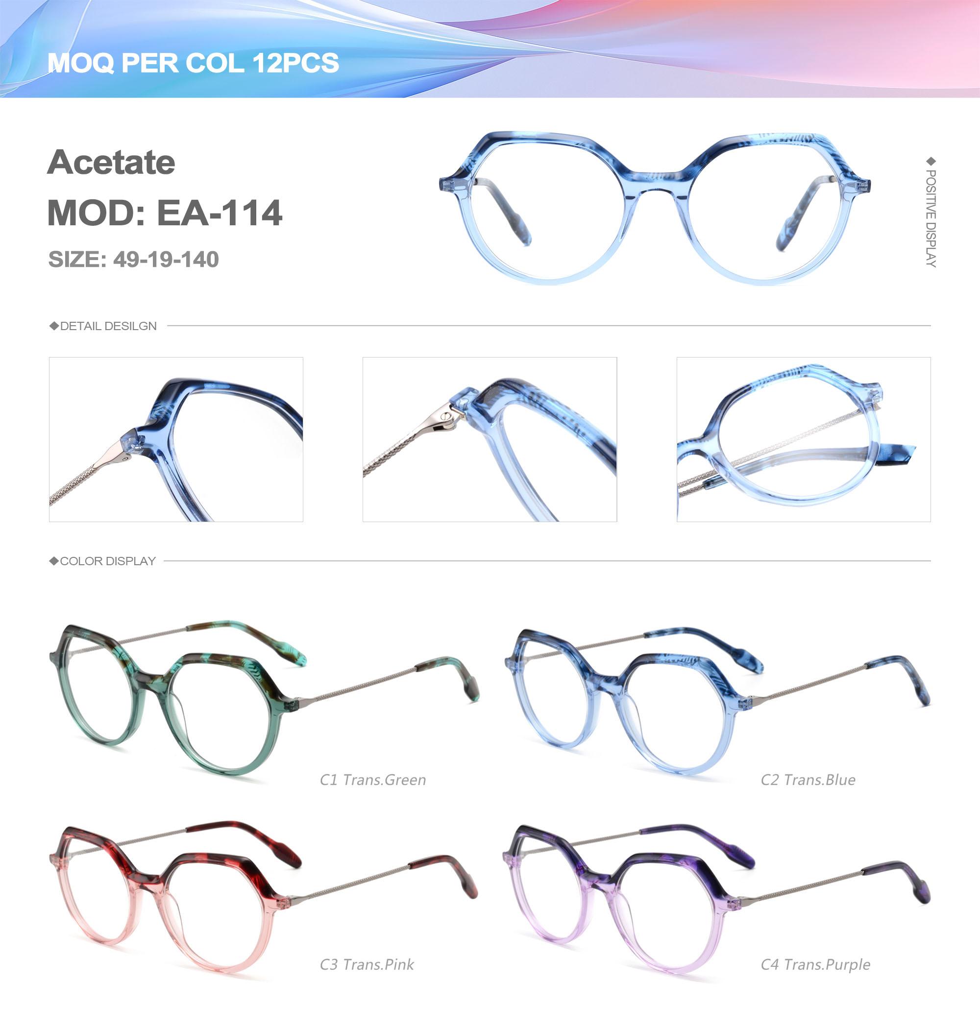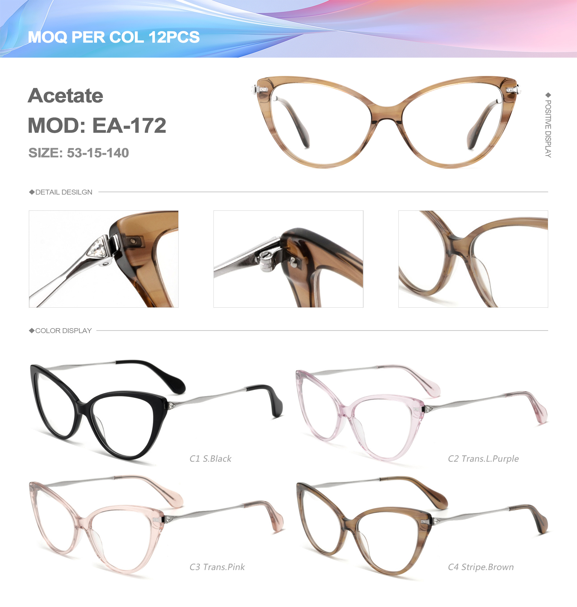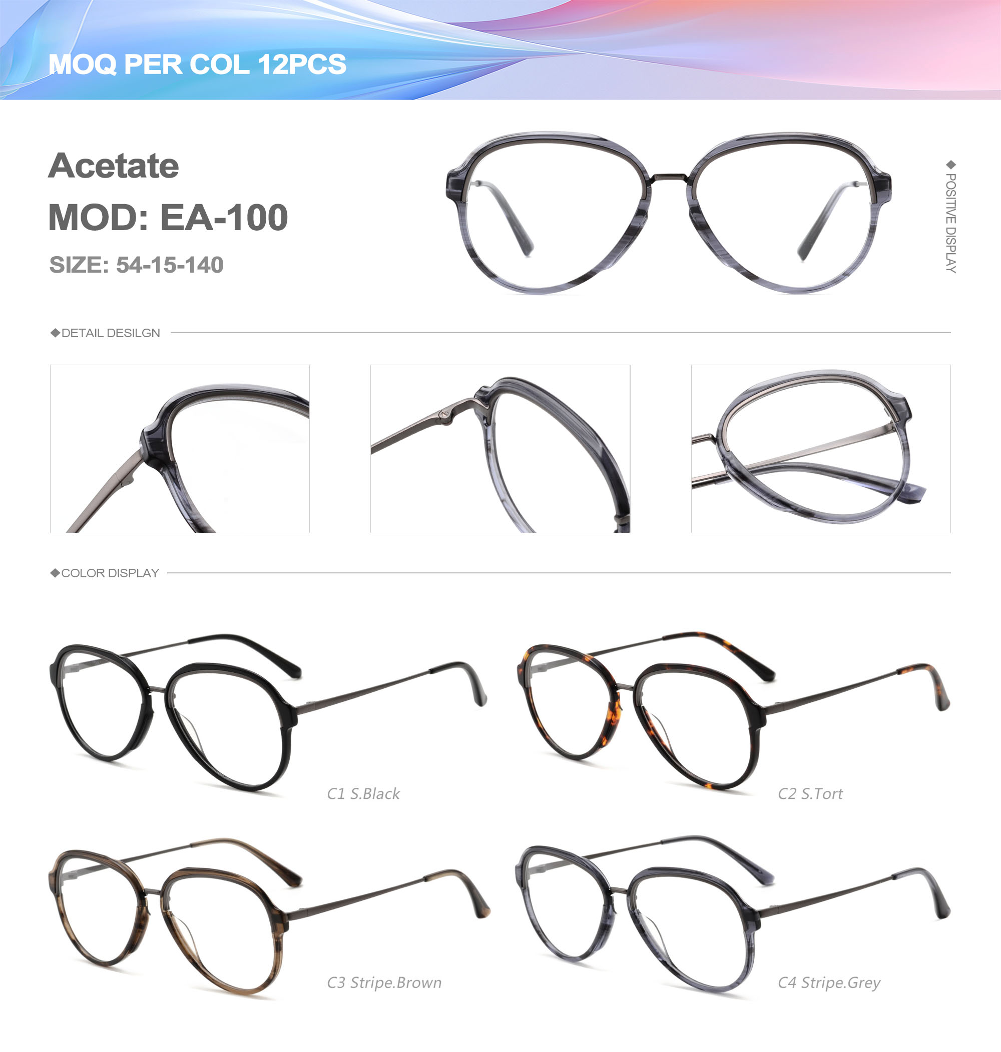 Acetate is an ideal material for eyeglass frames, it is durable and does not cause skin irritation. The acetate frame is made with a unique technology that turns plant material into durable plastic.