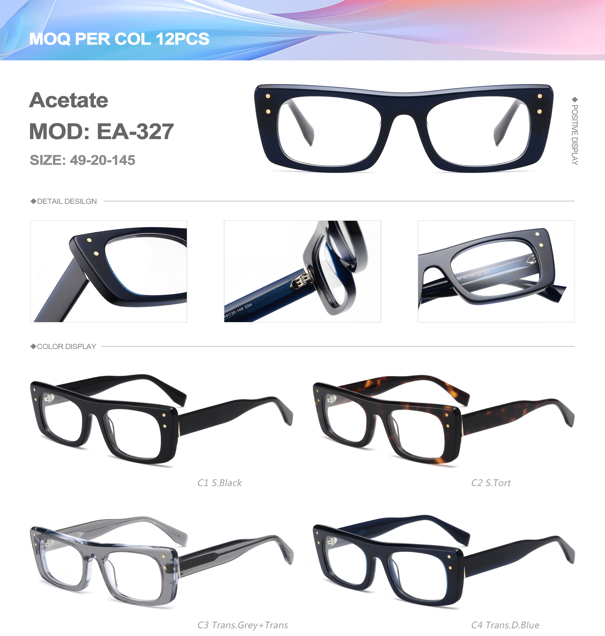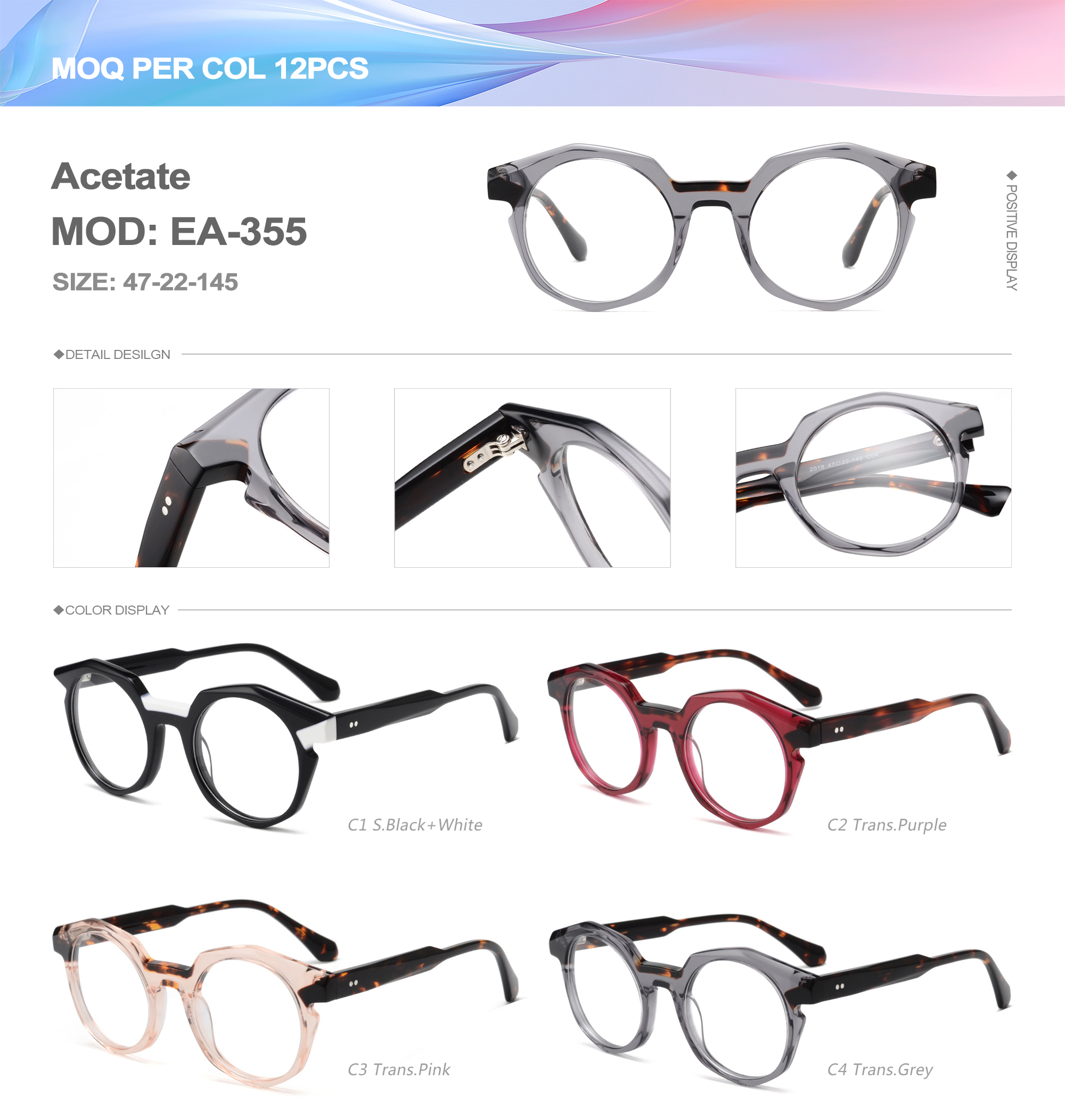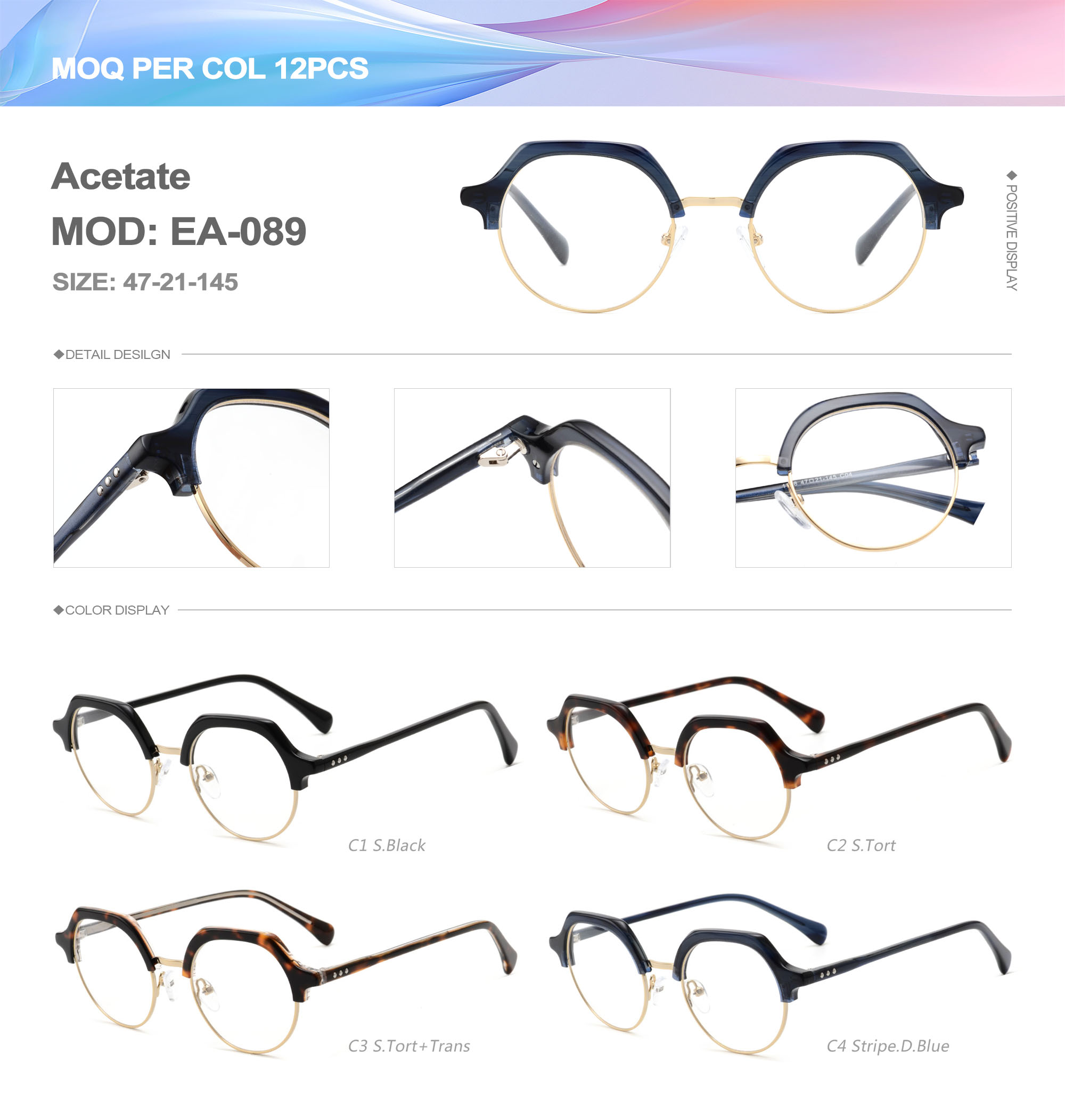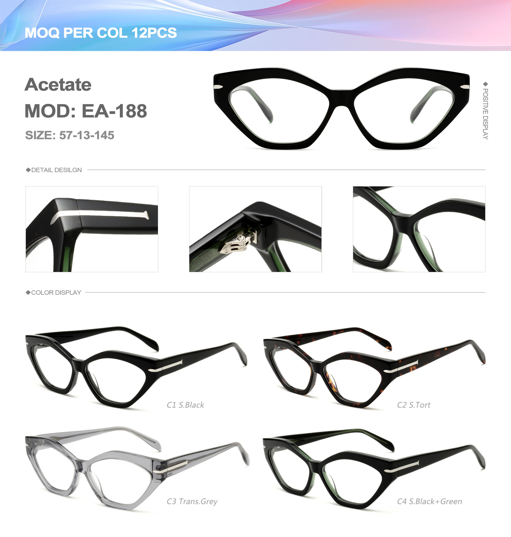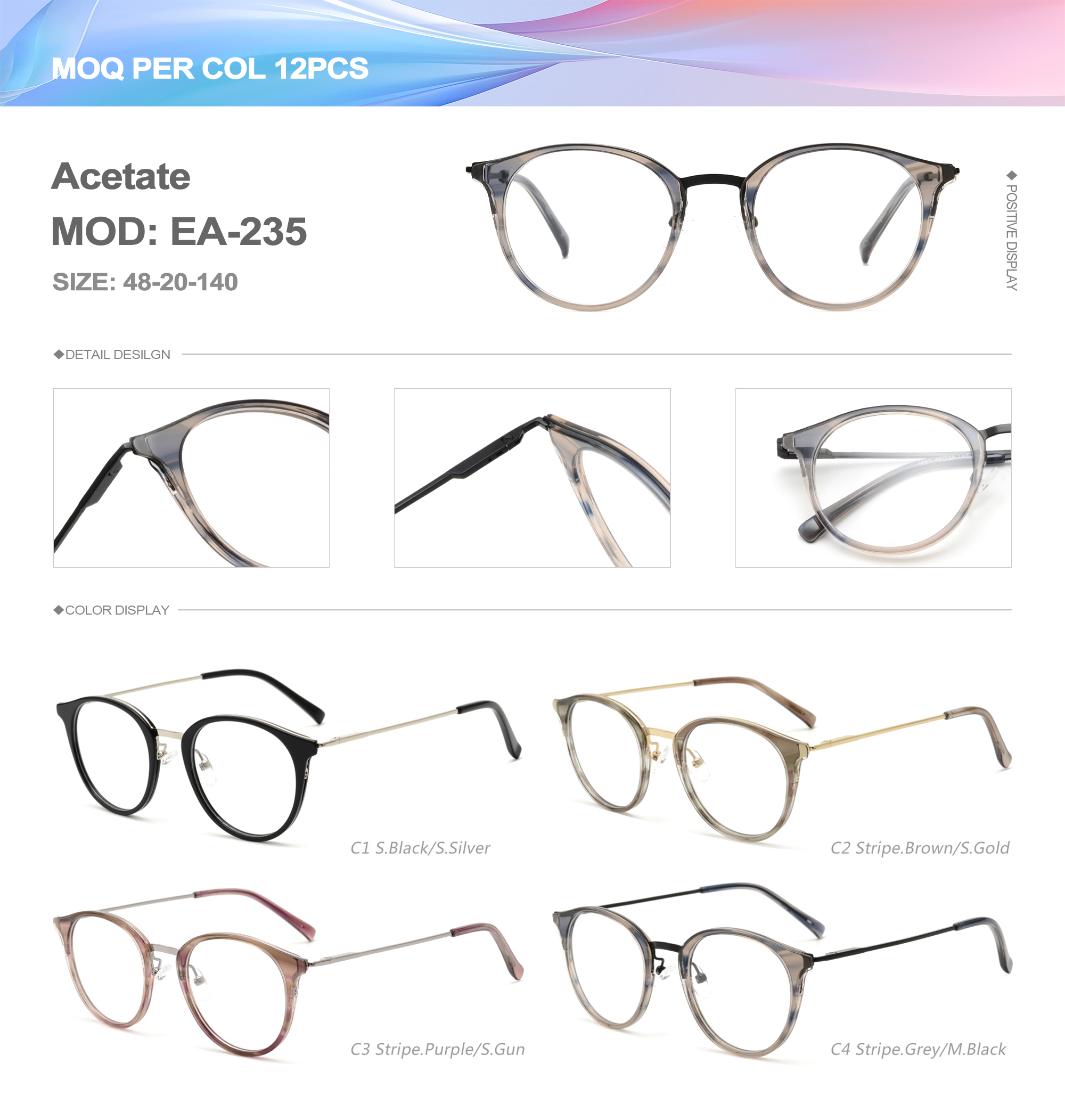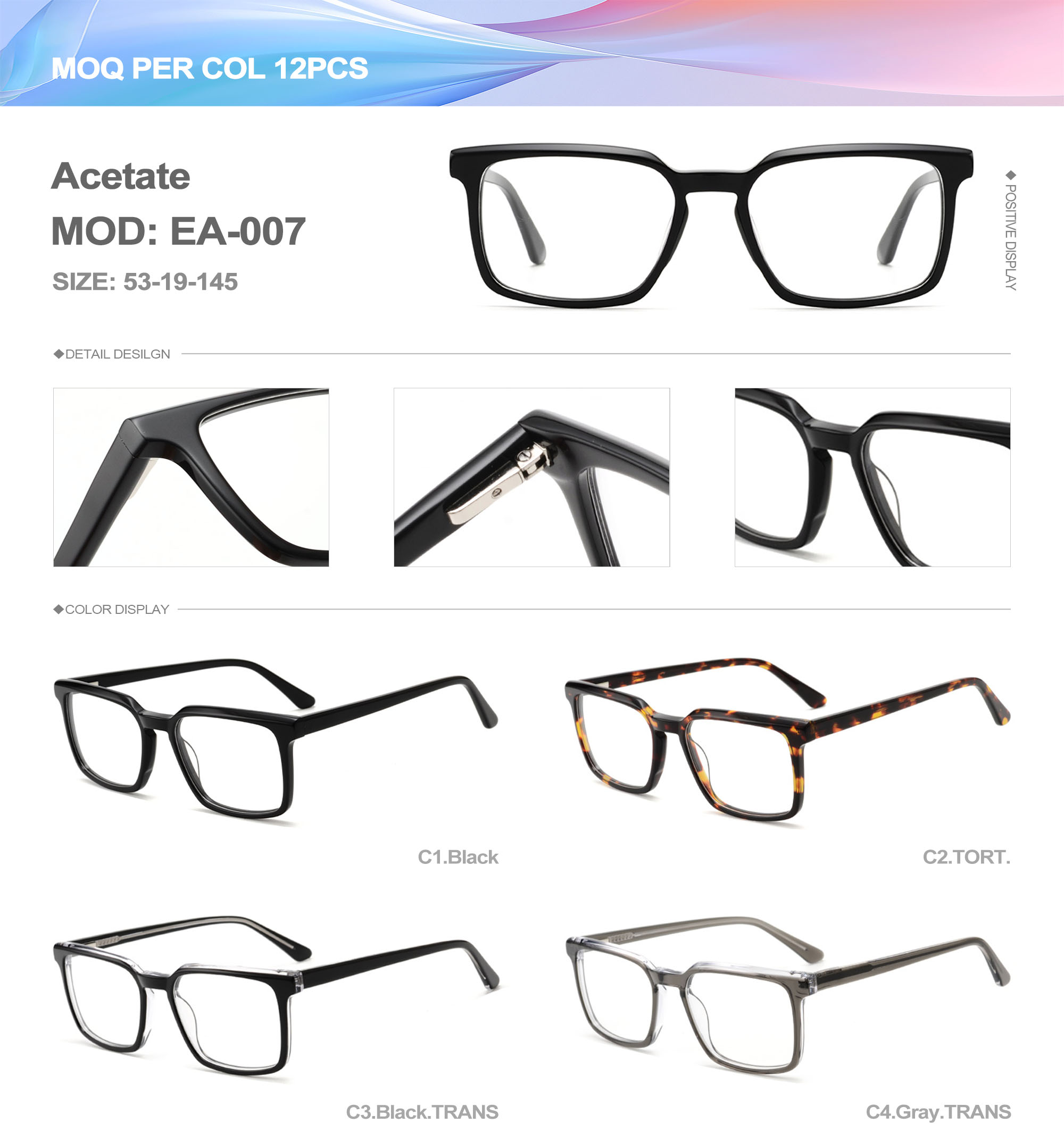 Acetate is an ideal material for eyeglass frames, it is durable and does not cause skin irritation. The acetate frame is made with a unique technology that turns plant material into durable plastic.
