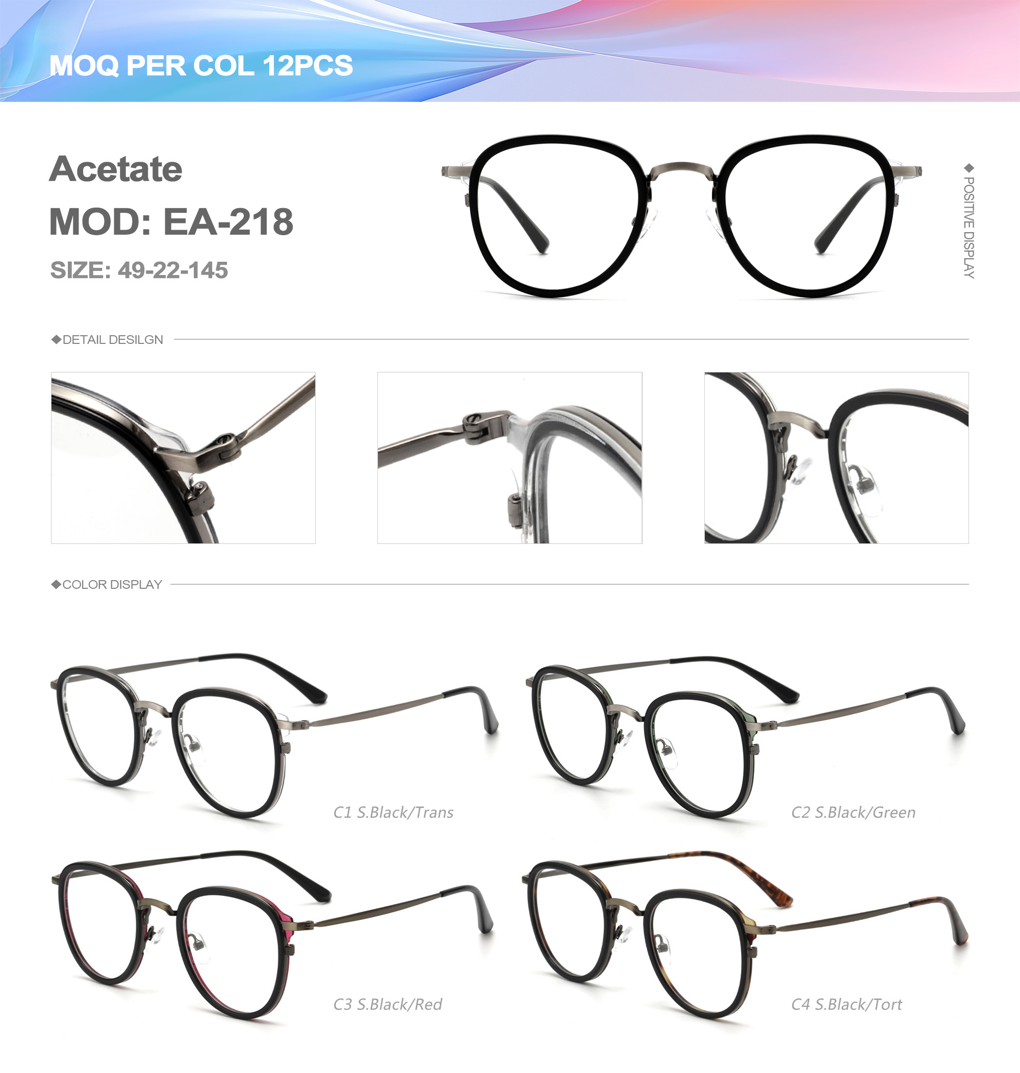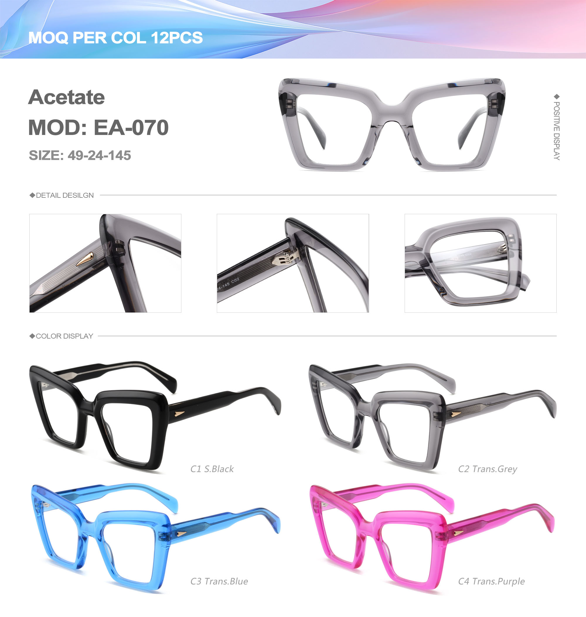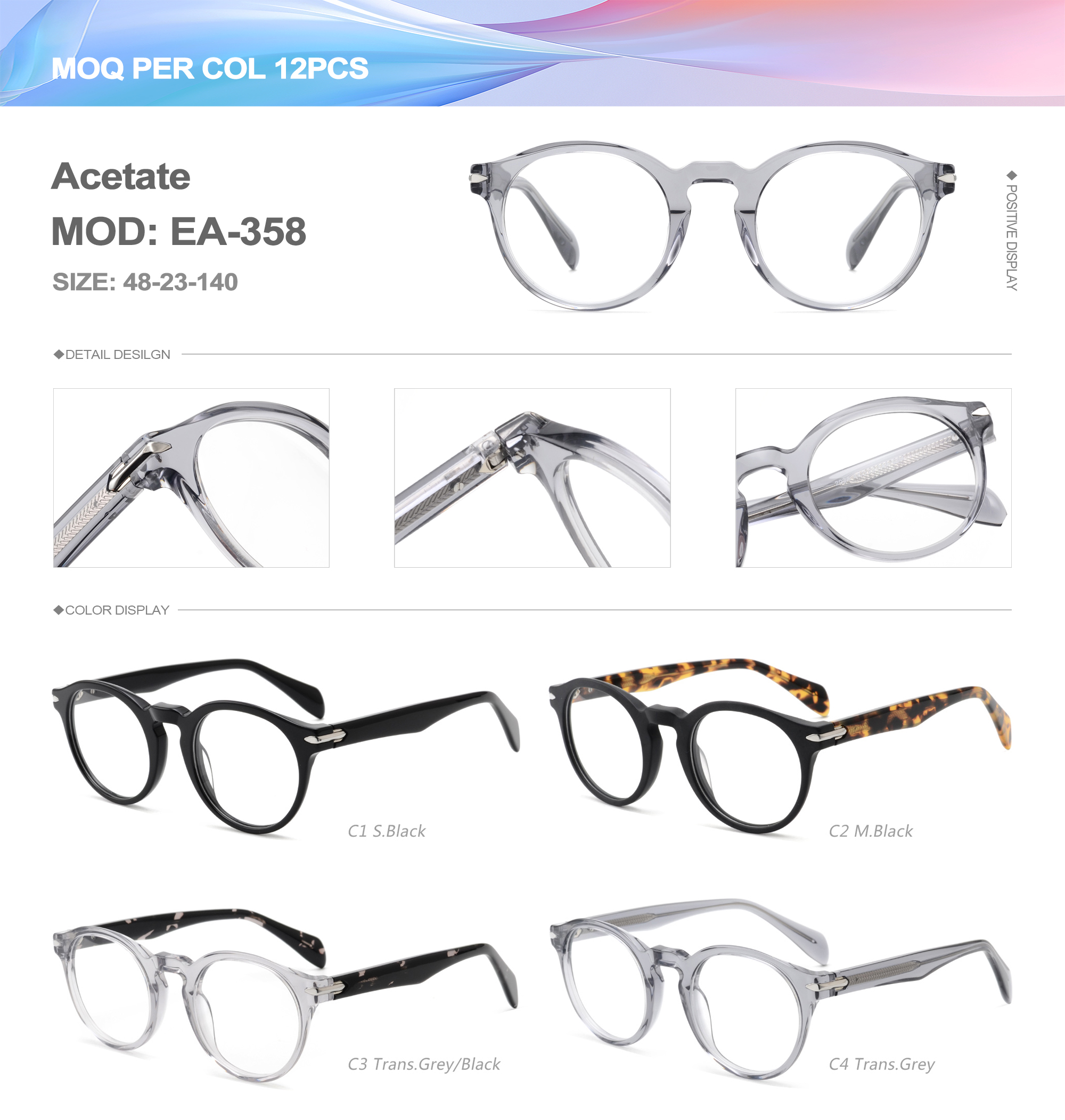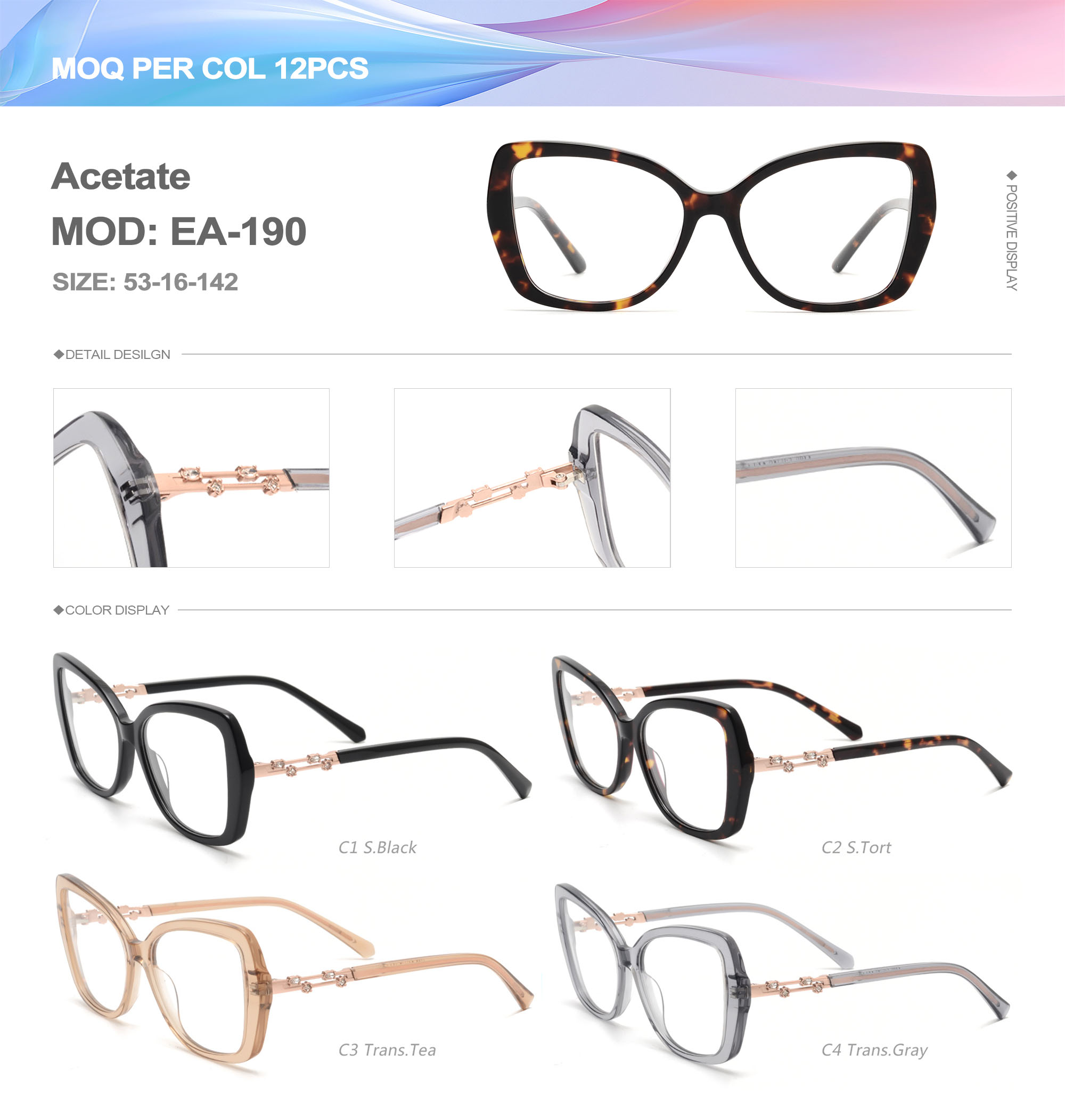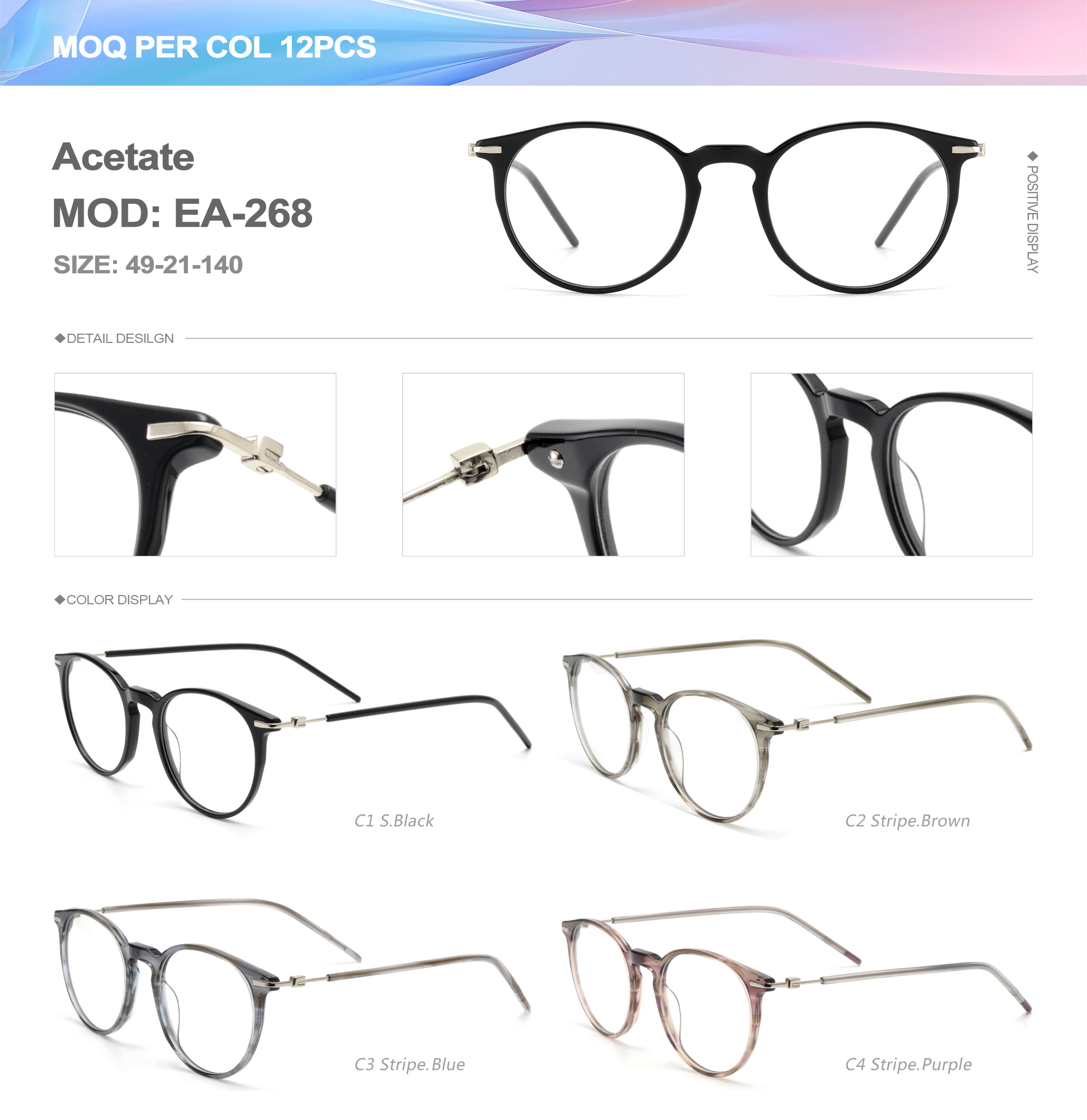 Acetate is an ideal material for eyeglass frames, it is durable and does not cause skin irritation. The acetate frame is made with a unique technology that turns plant material into durable plastic.