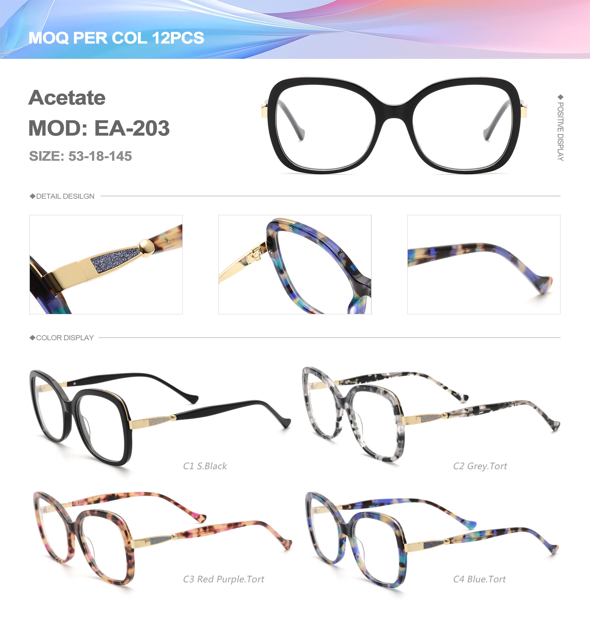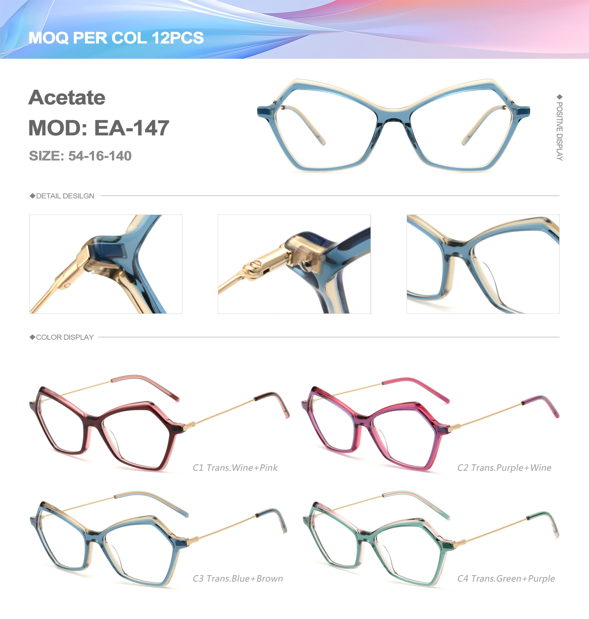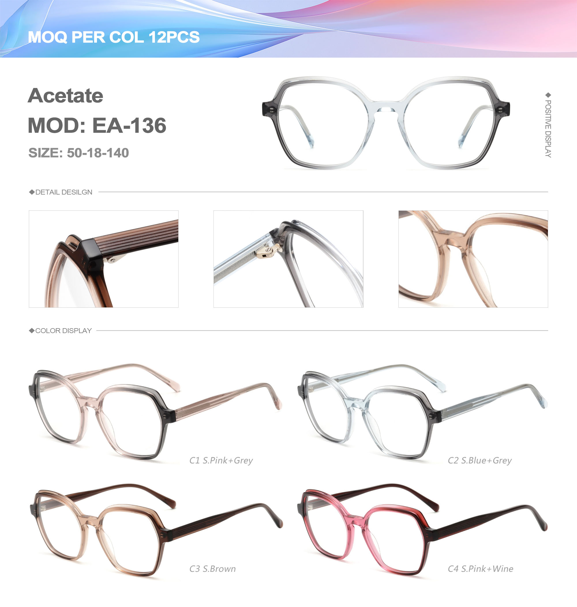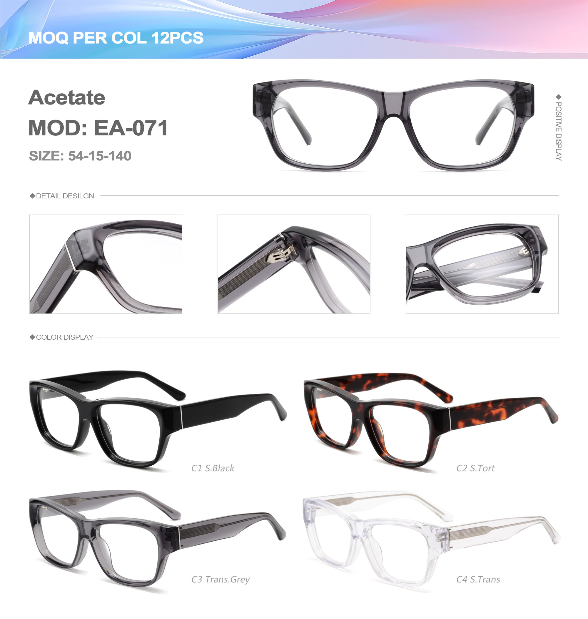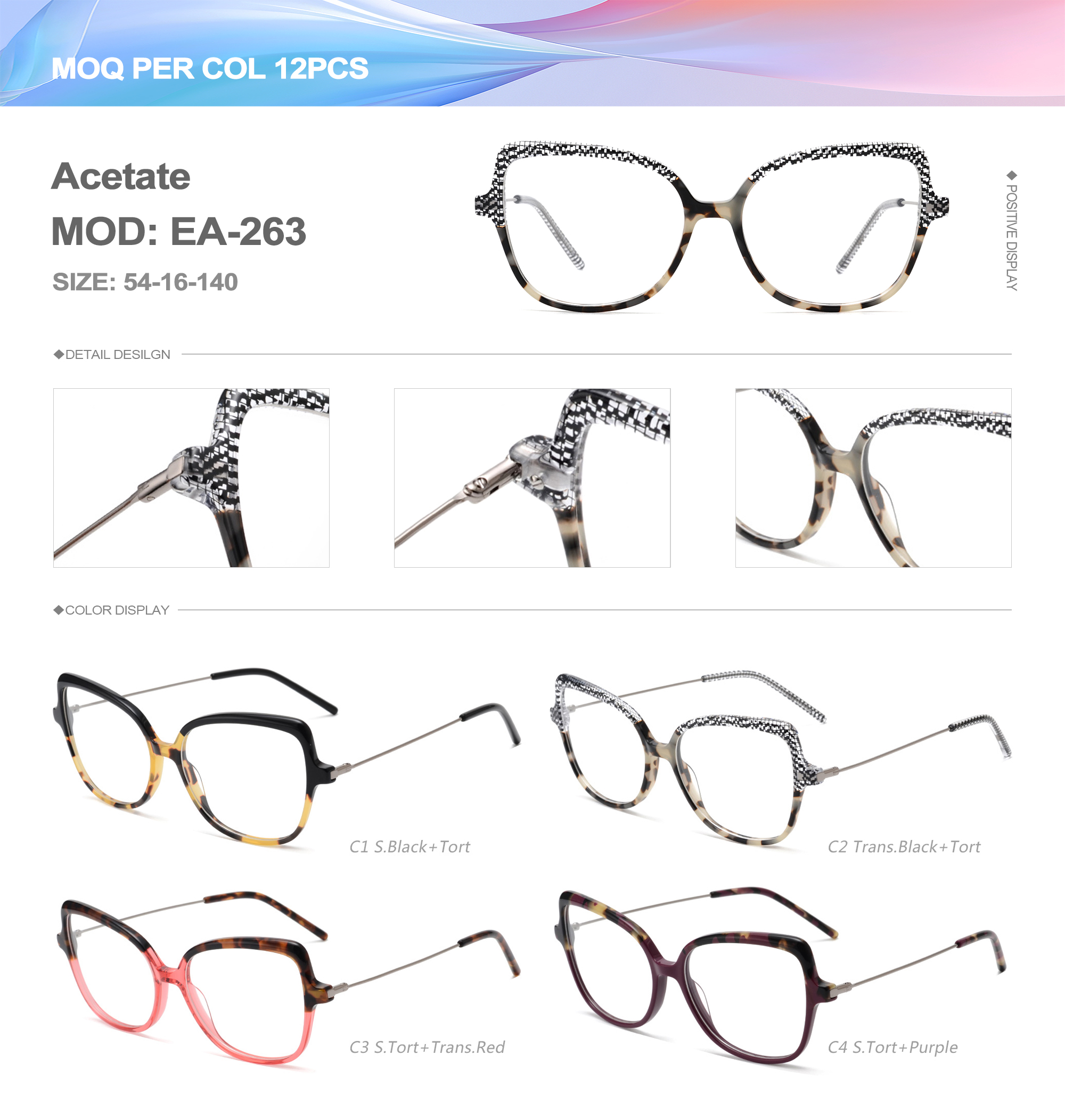 Acetate is an ideal material for eyeglass frames, it is durable and does not cause skin irritation. The acetate frame is made with a unique technology that turns plant material into durable plastic.