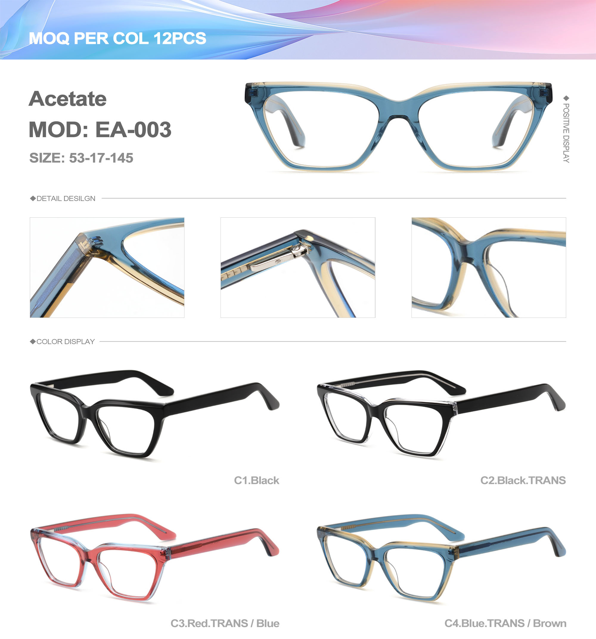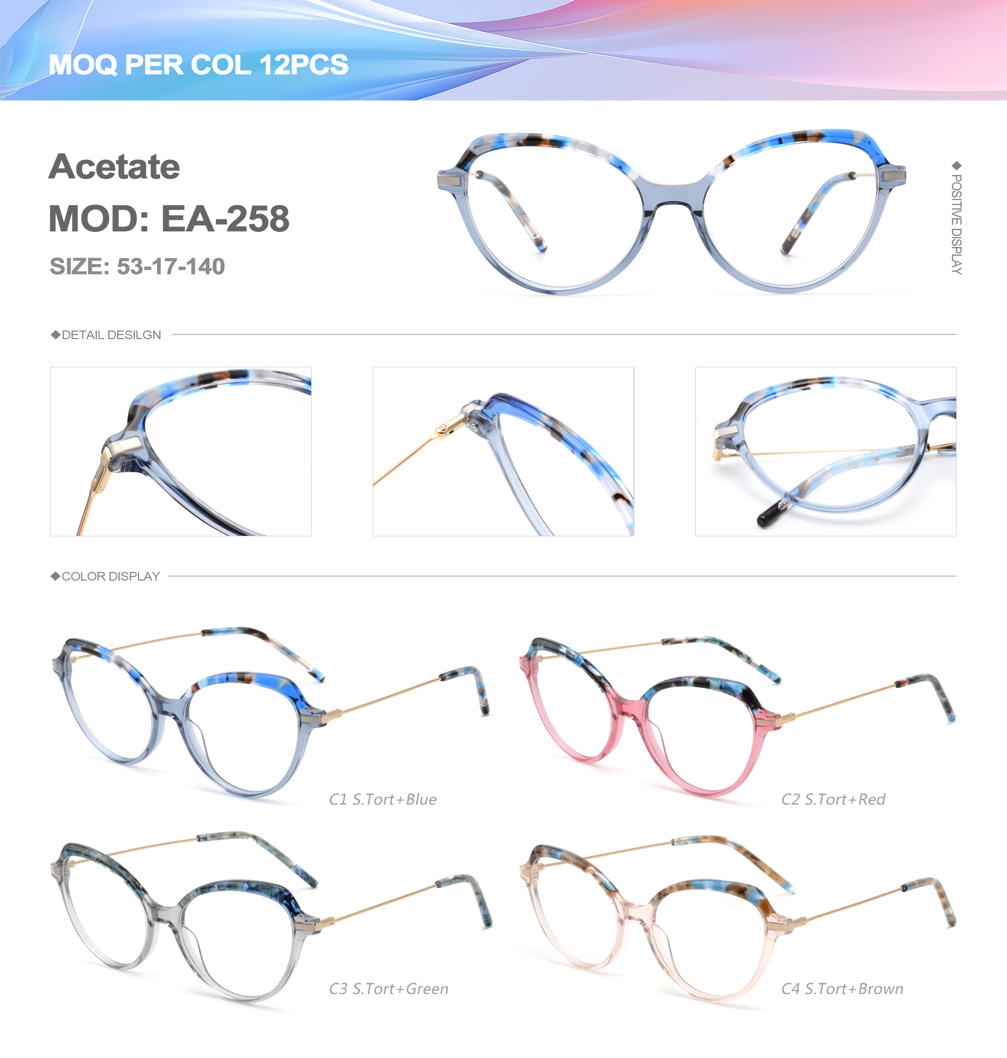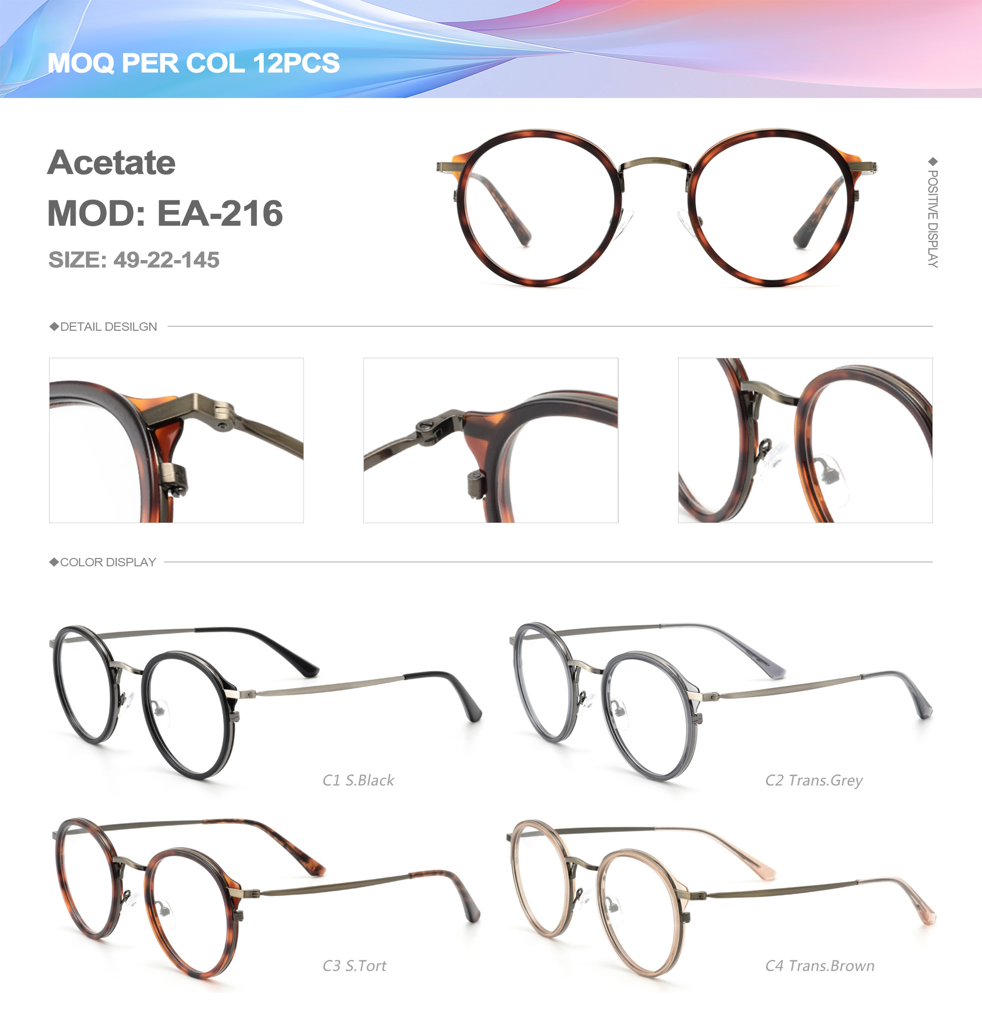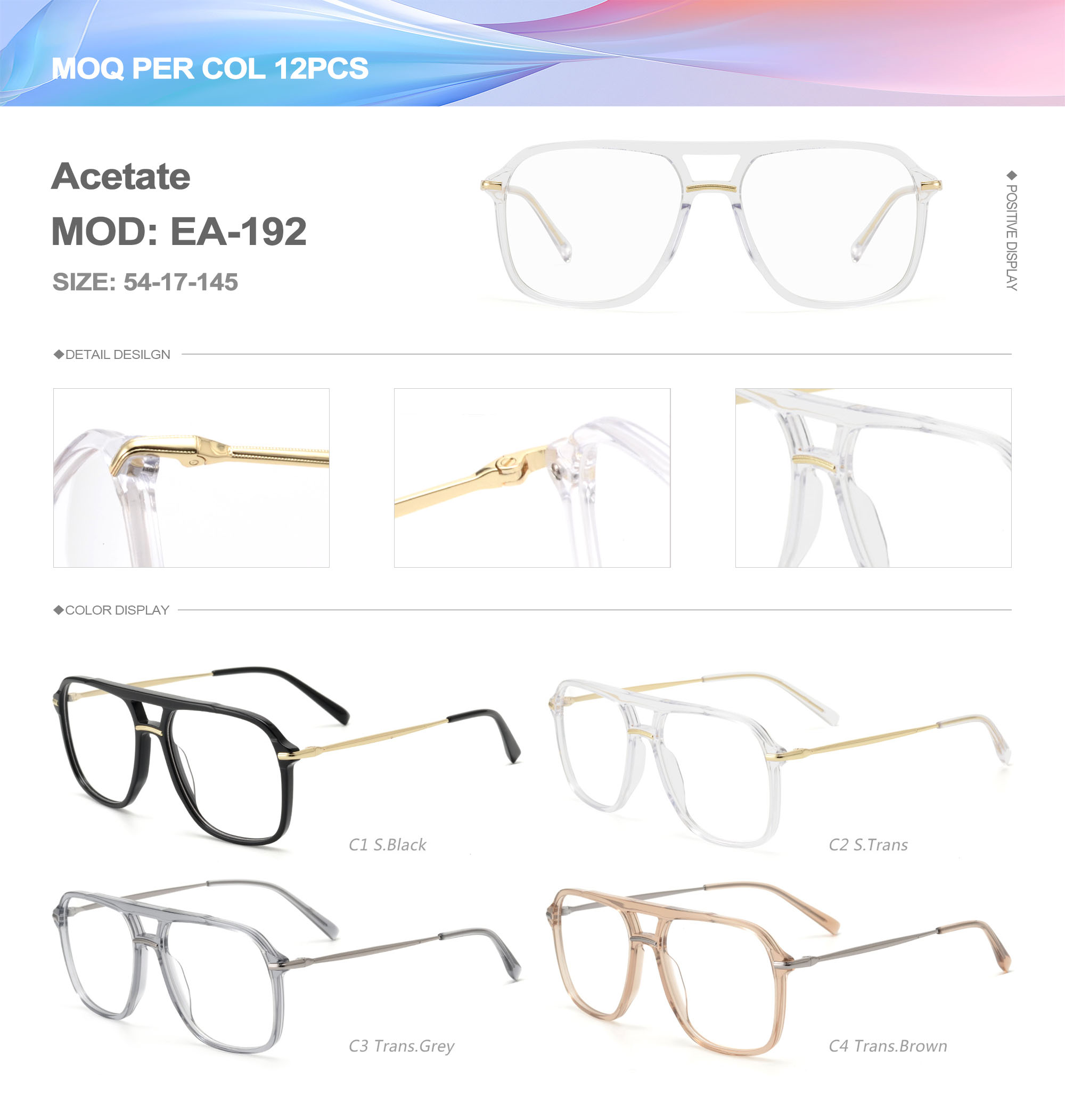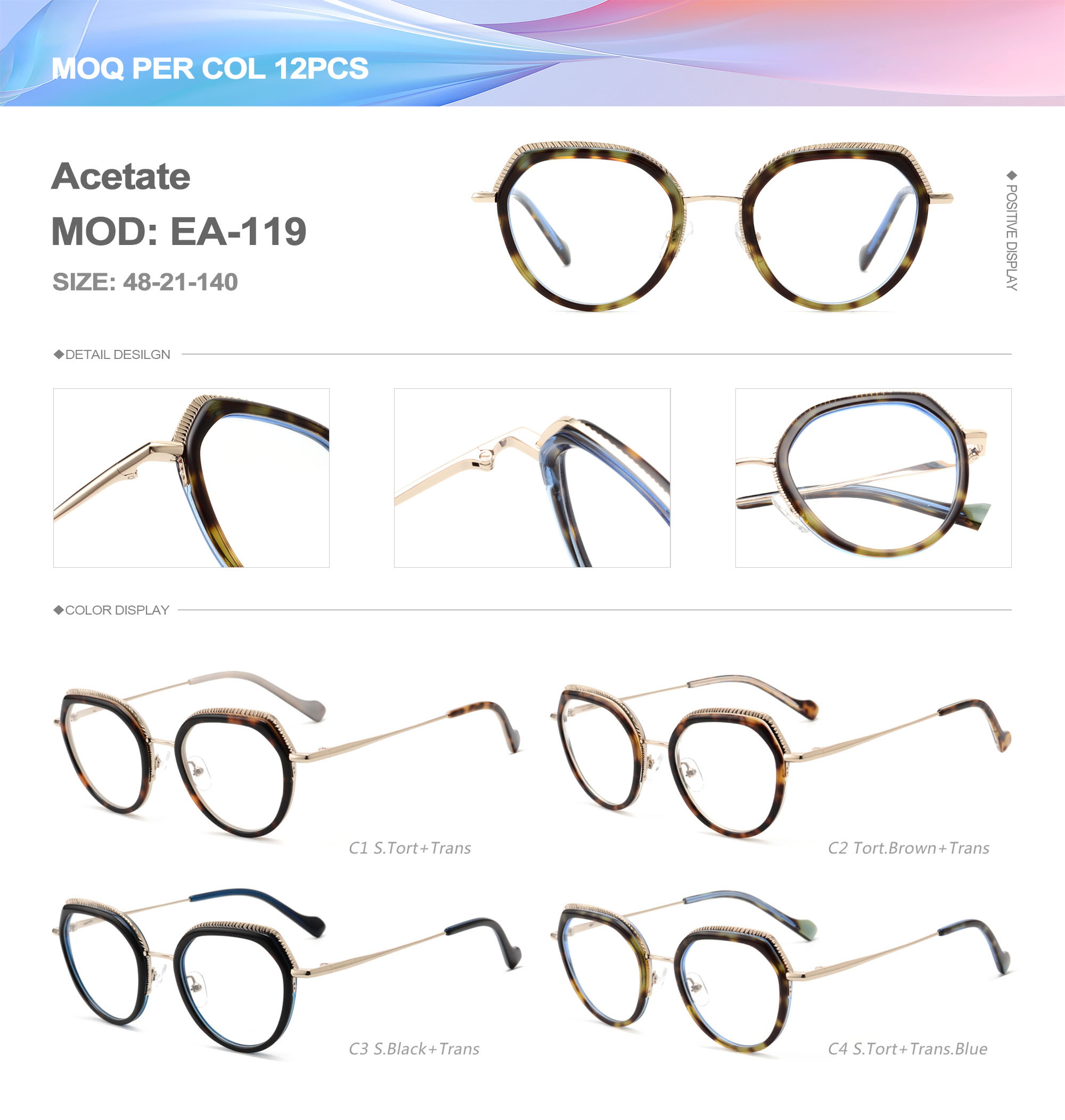 Acetate is an ideal material for eyeglass frames, it is durable and does not cause skin irritation. The acetate frame is made with a unique technology that turns plant material into durable plastic.