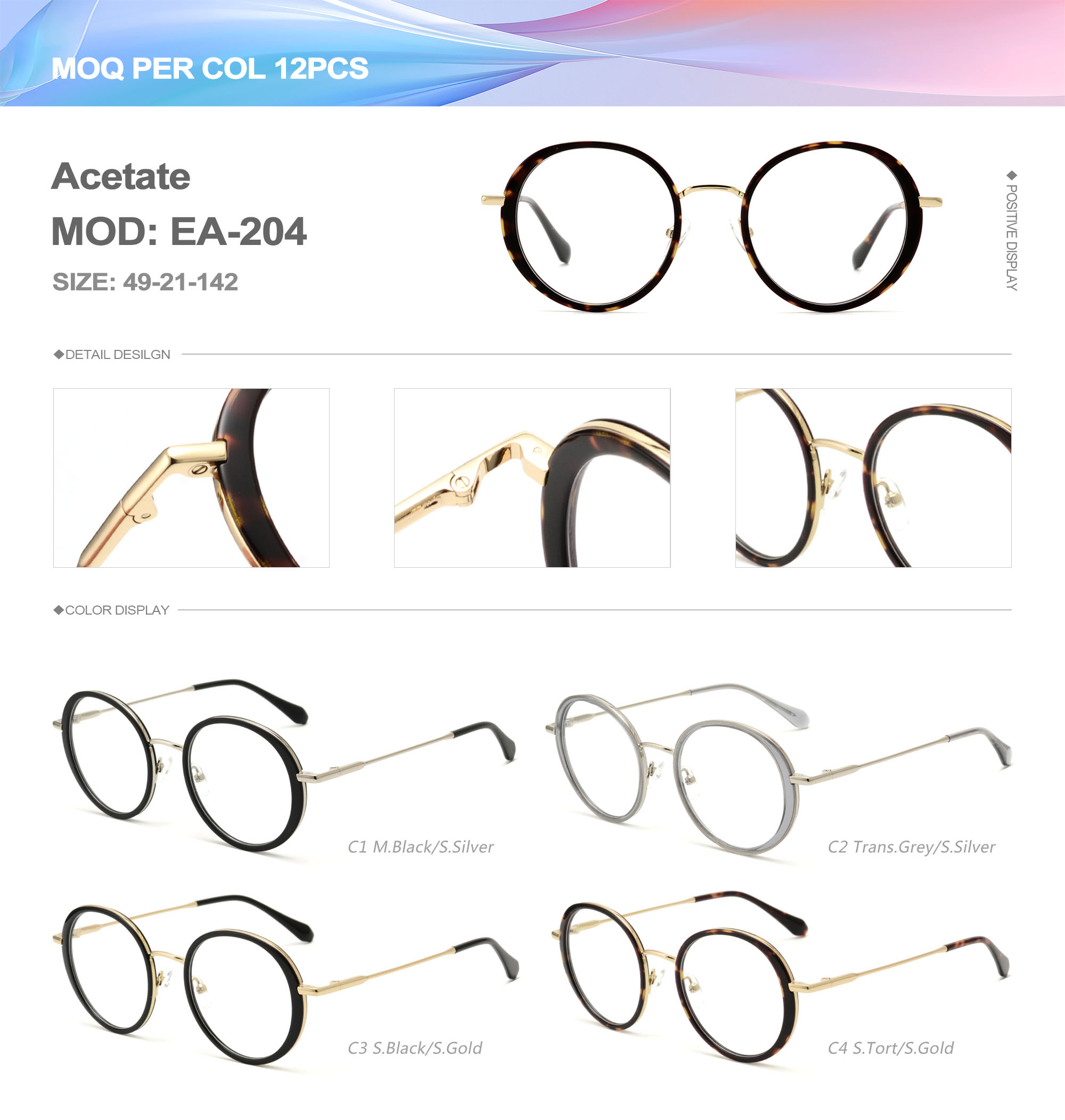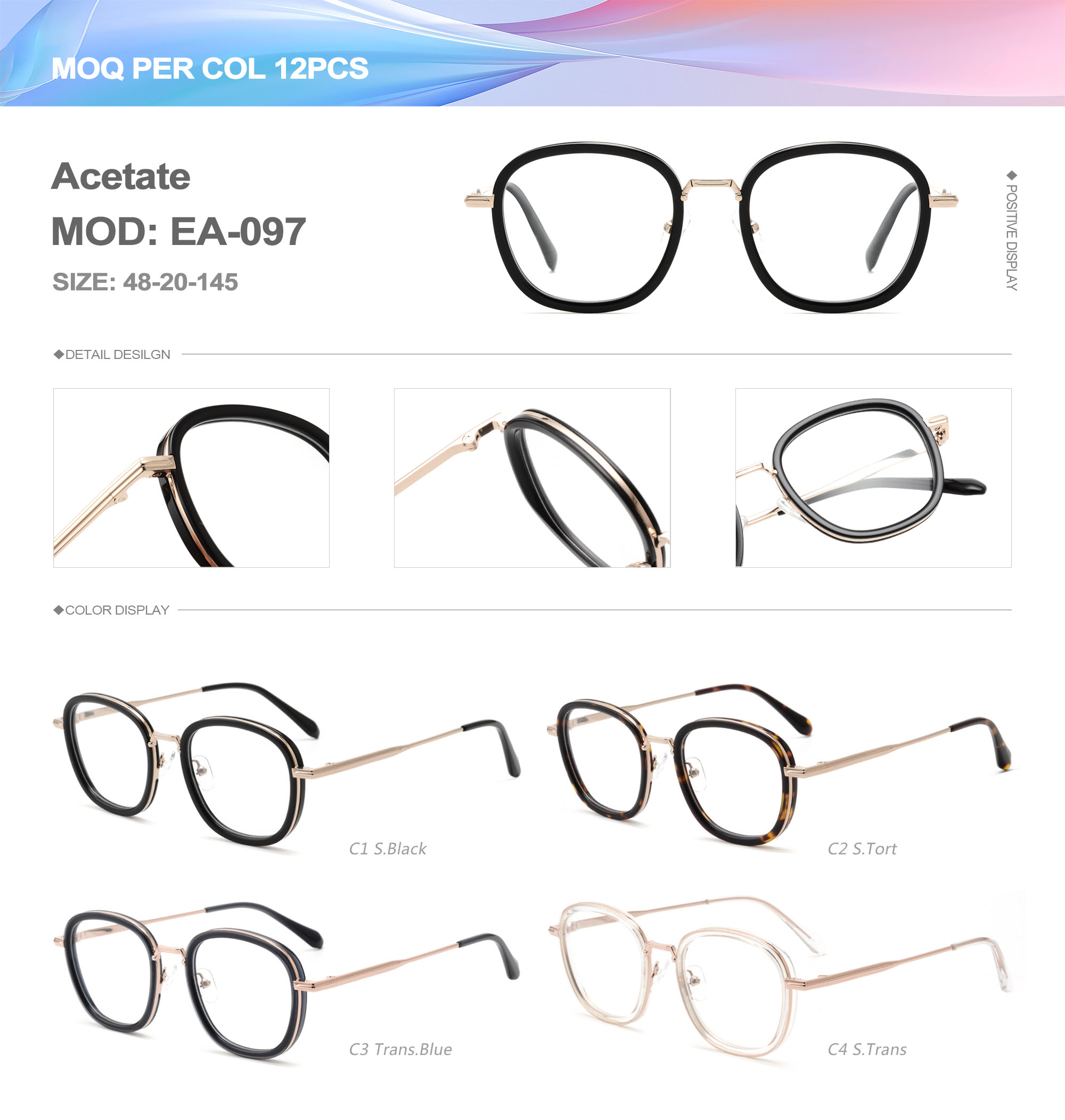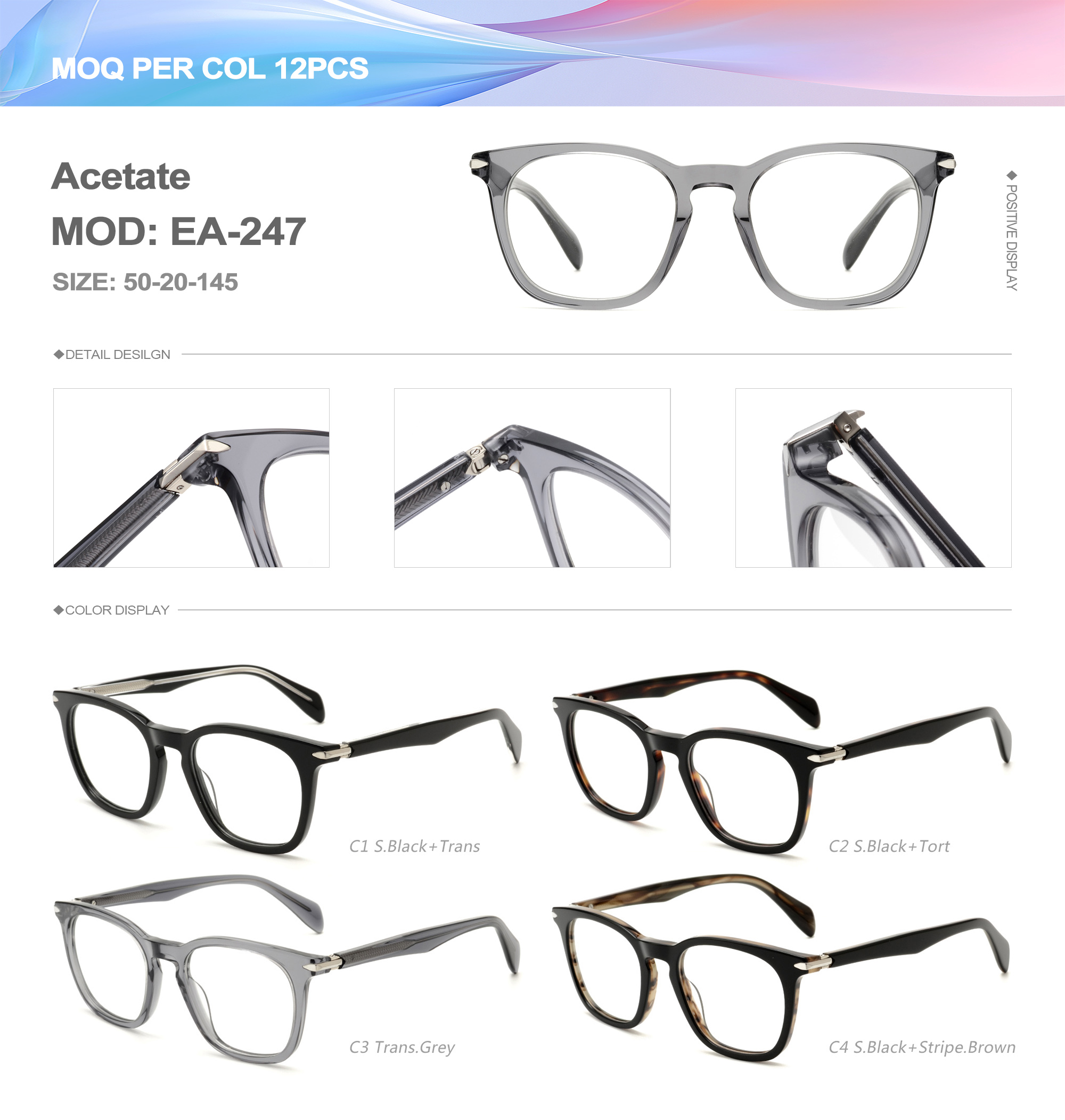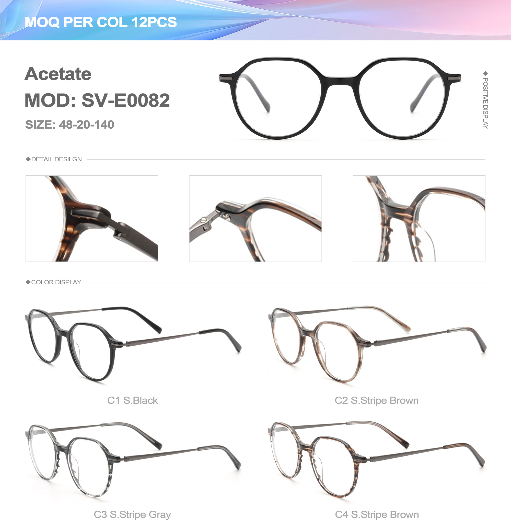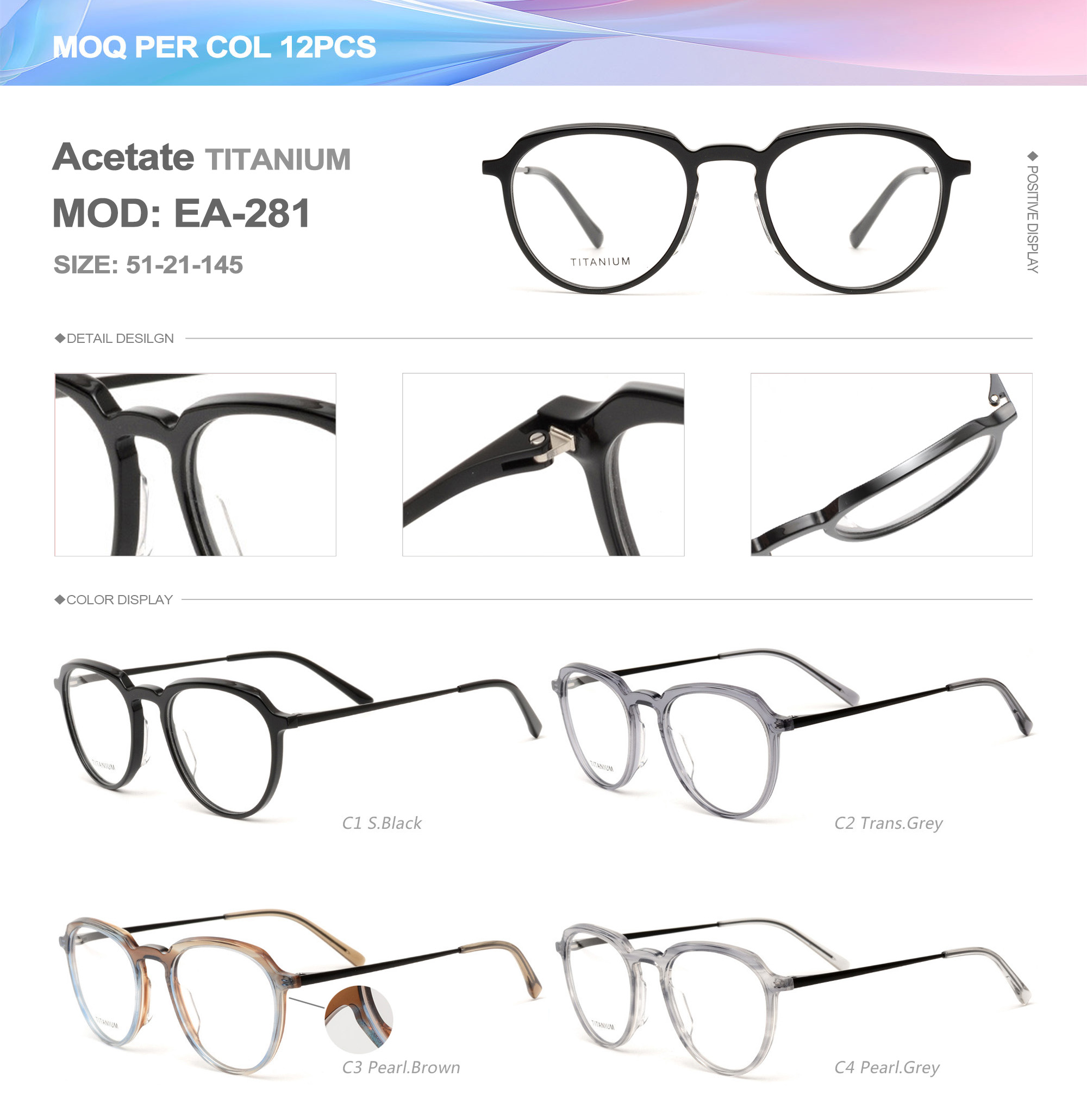 Acetate is an ideal material for eyeglass frames, it is durable and does not cause skin irritation. The acetate frame is made with a unique technology that turns plant material into durable plastic.