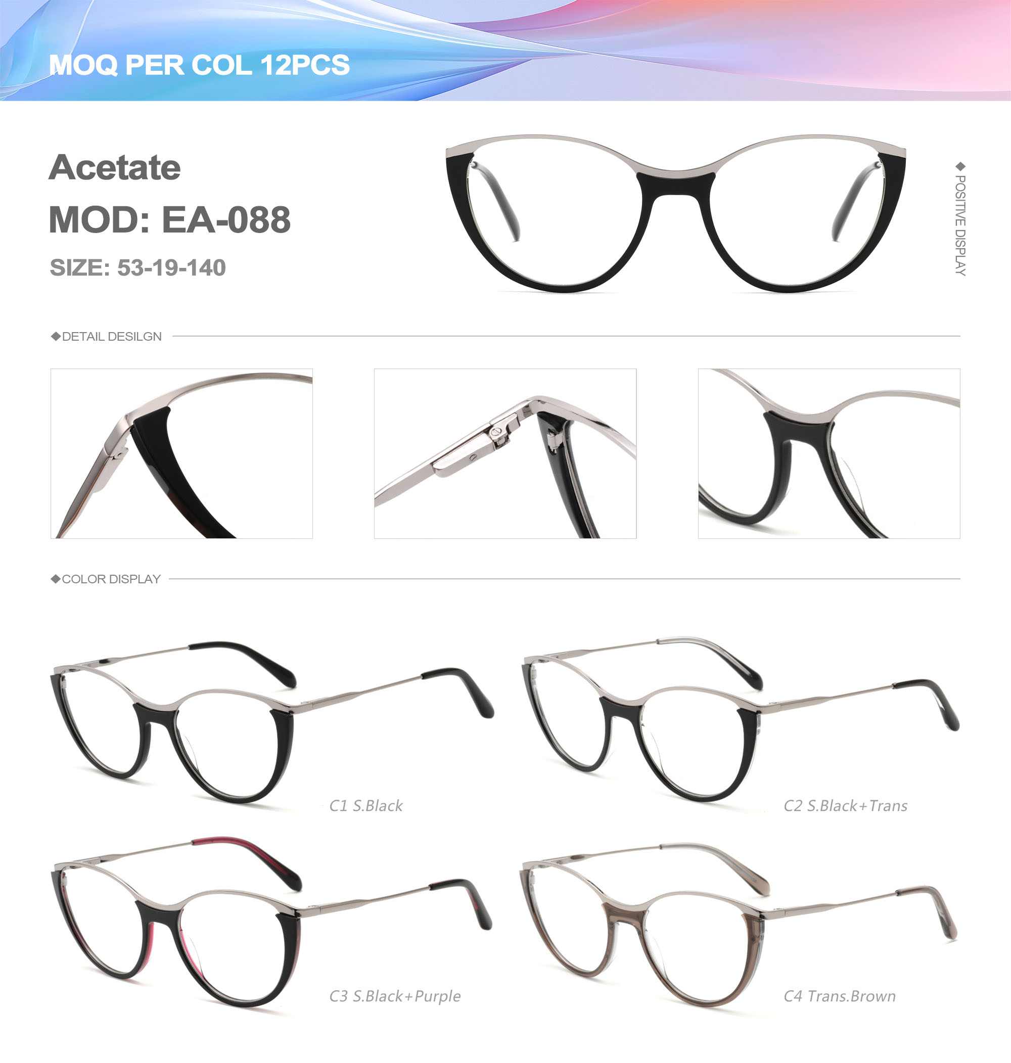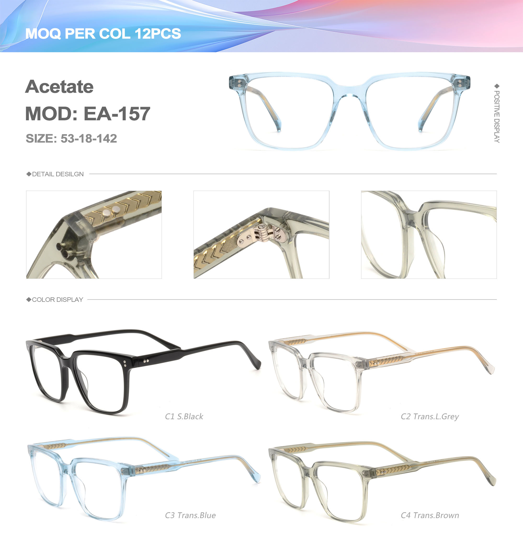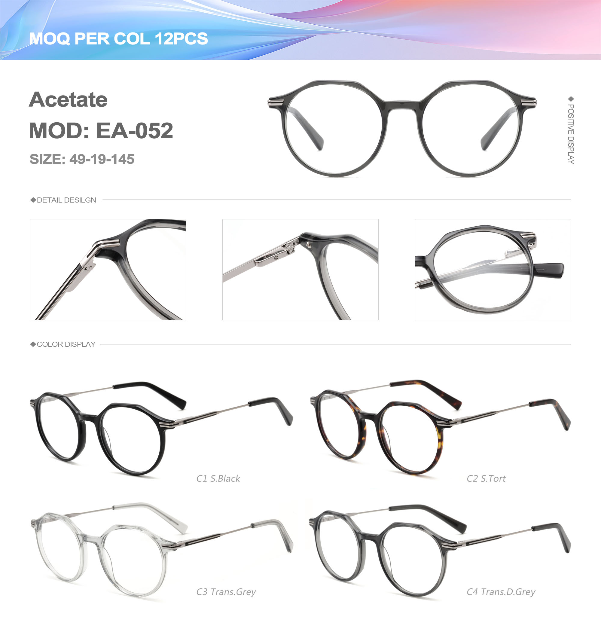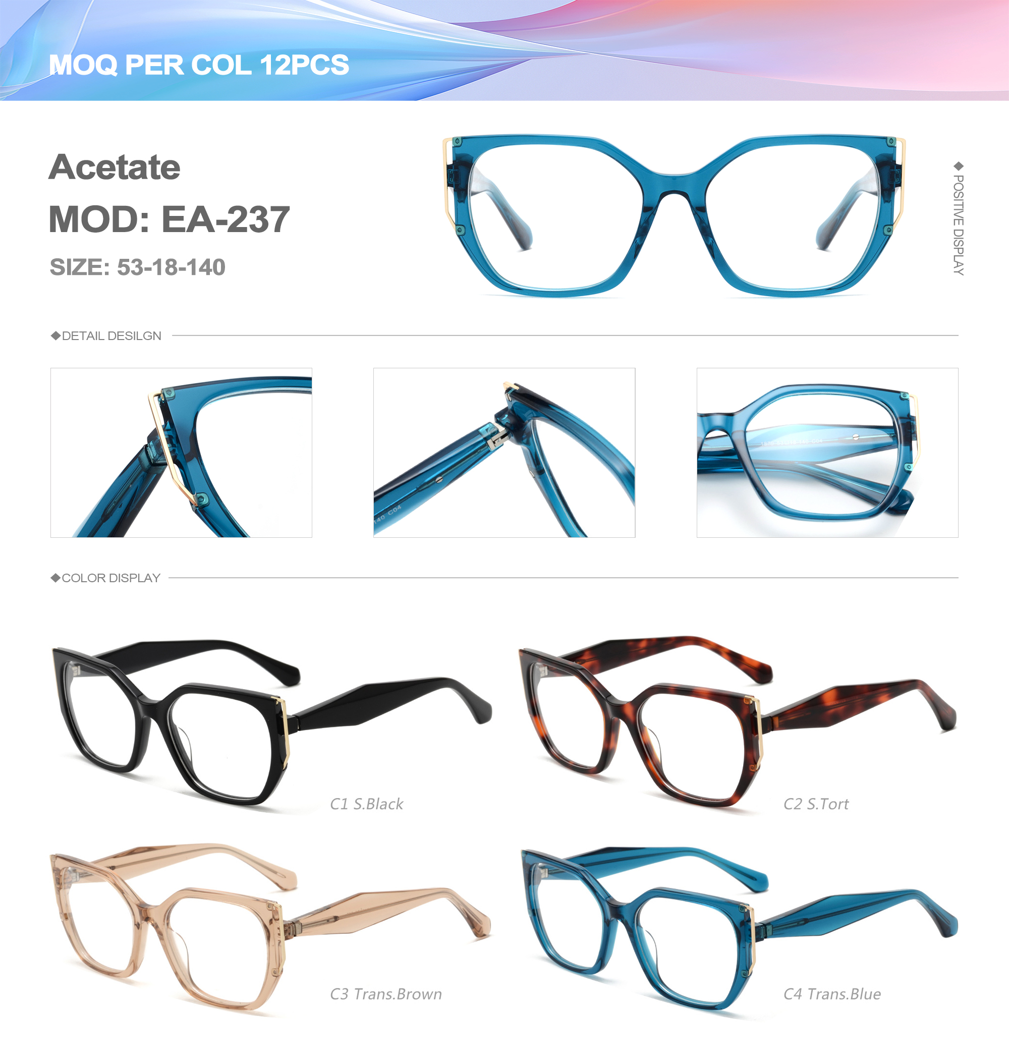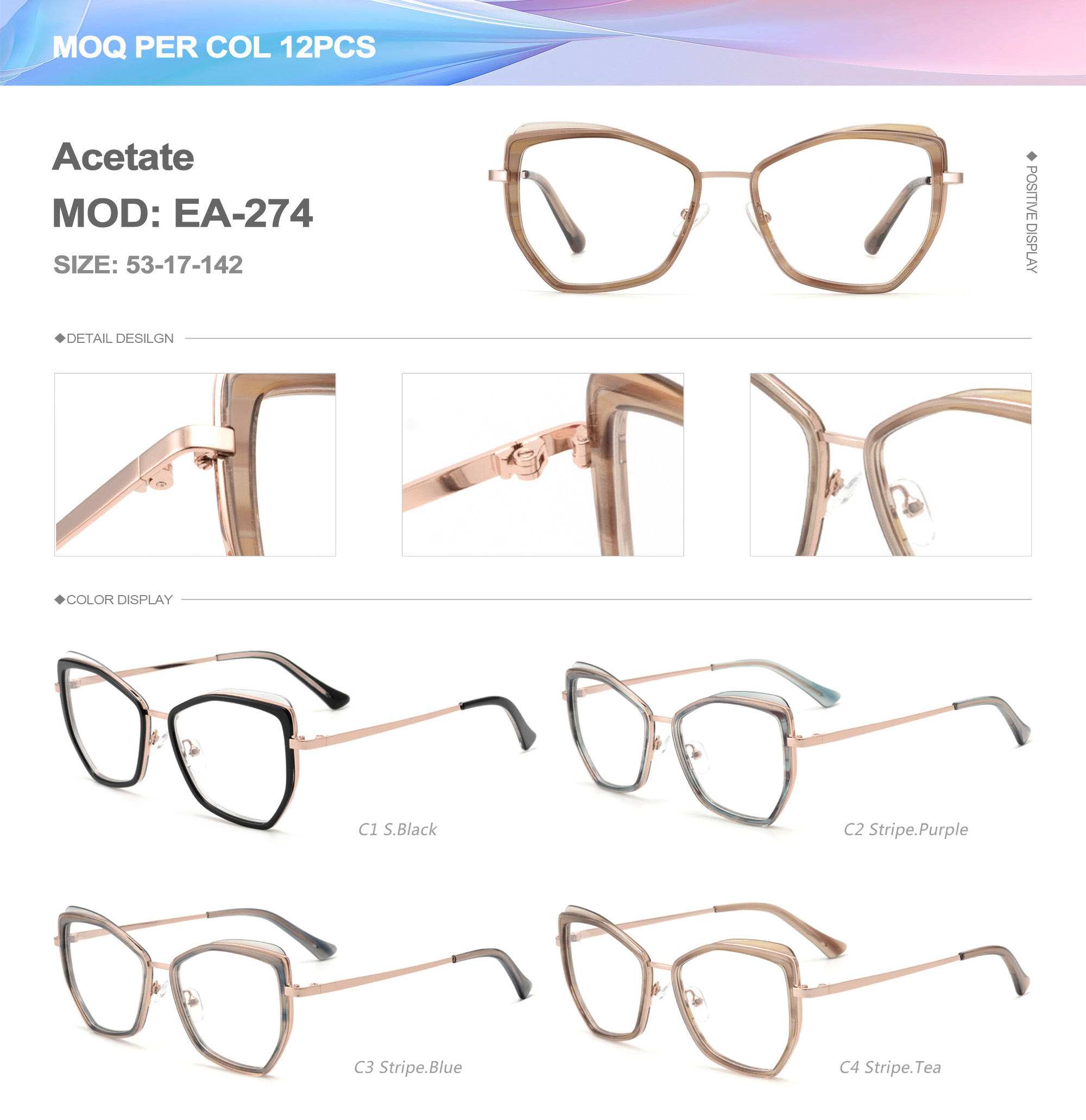 Acetate is an ideal material for eyeglass frames, it is durable and does not cause skin irritation. The acetate frame is made with a unique technology that turns plant material into durable plastic.