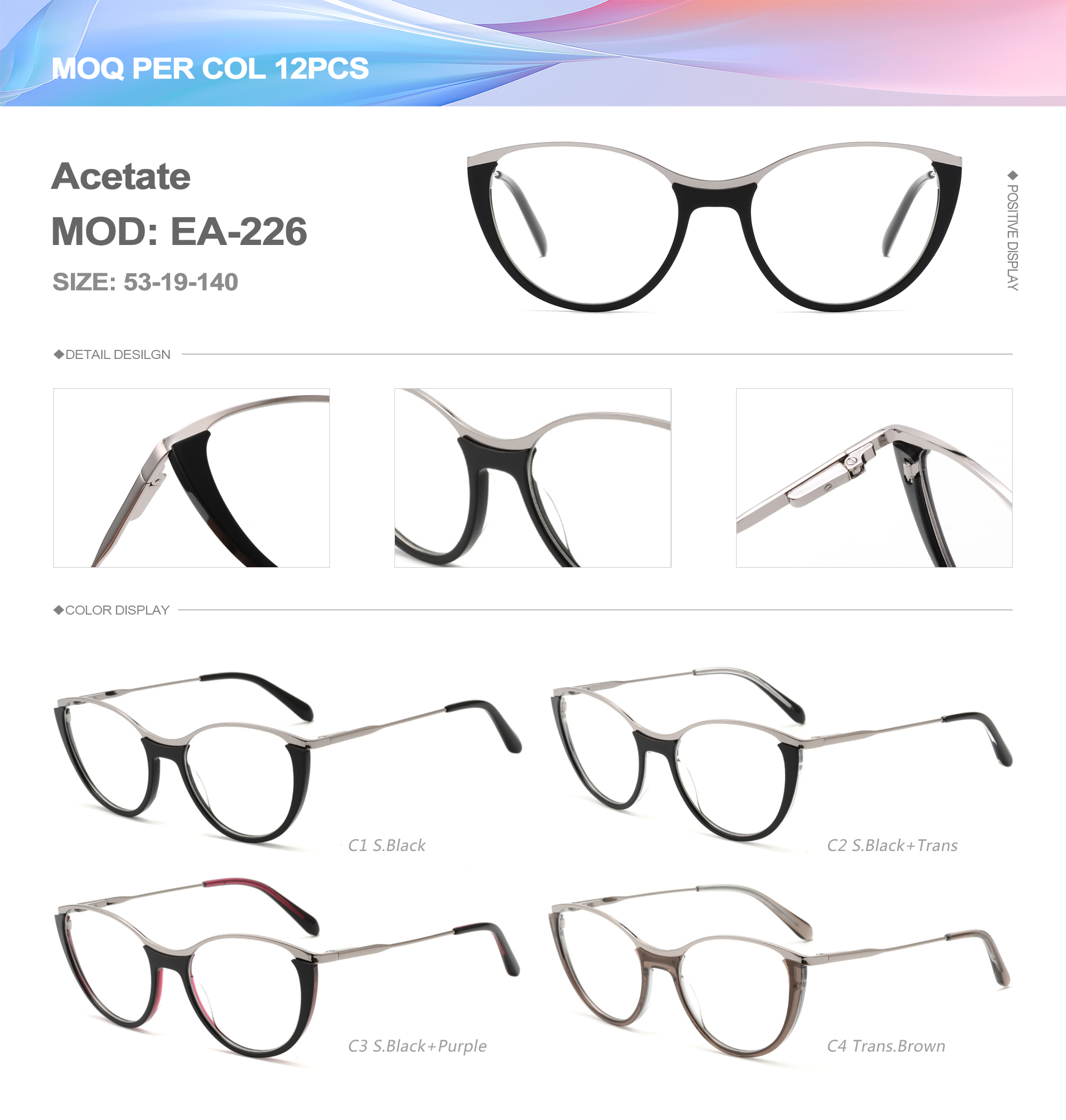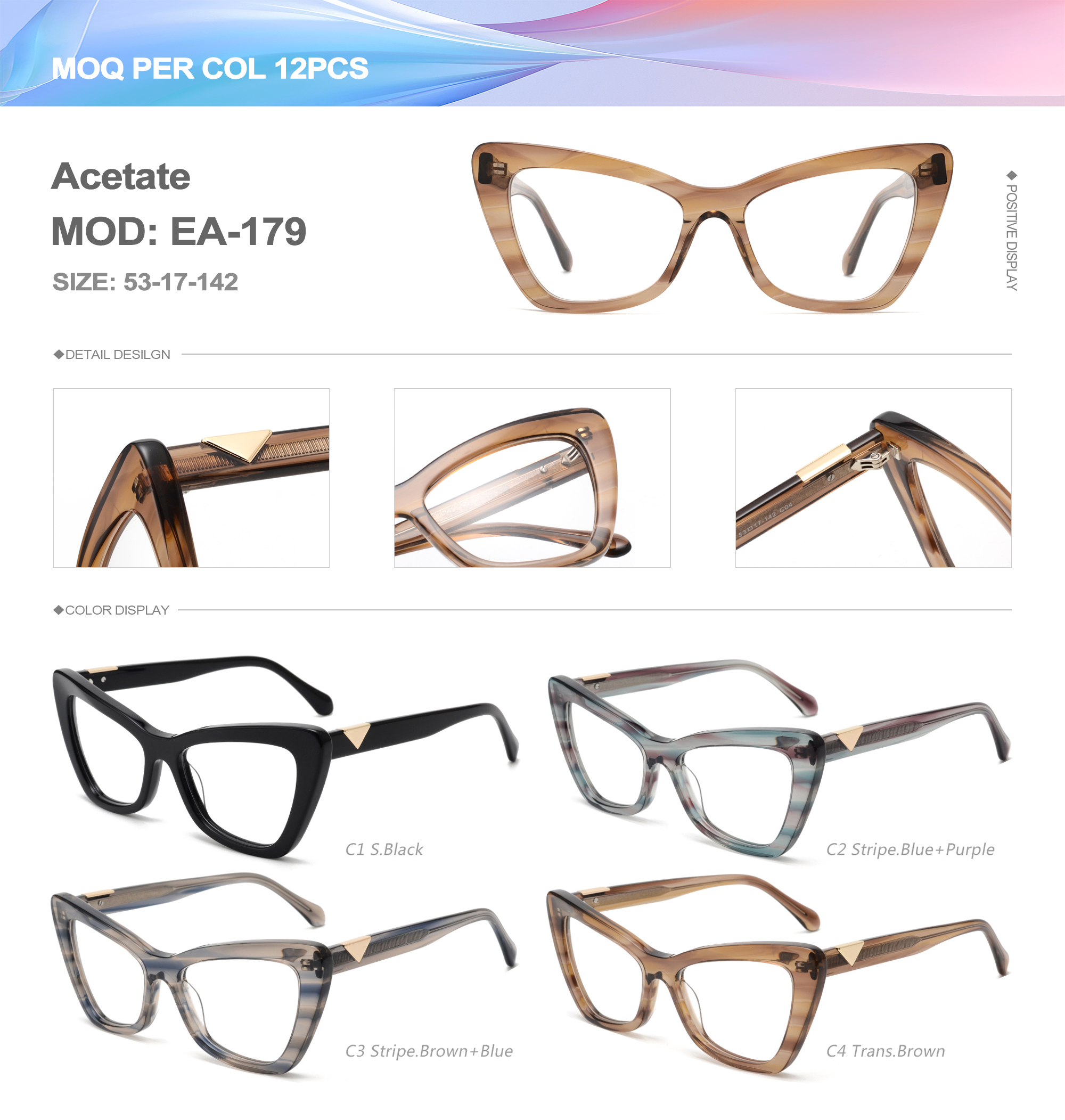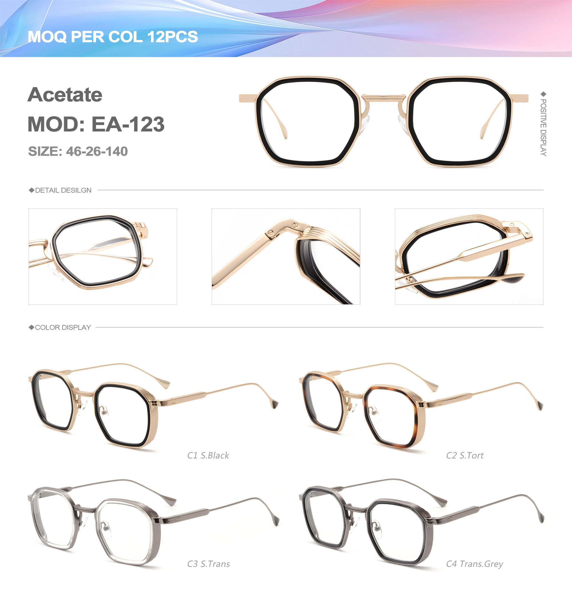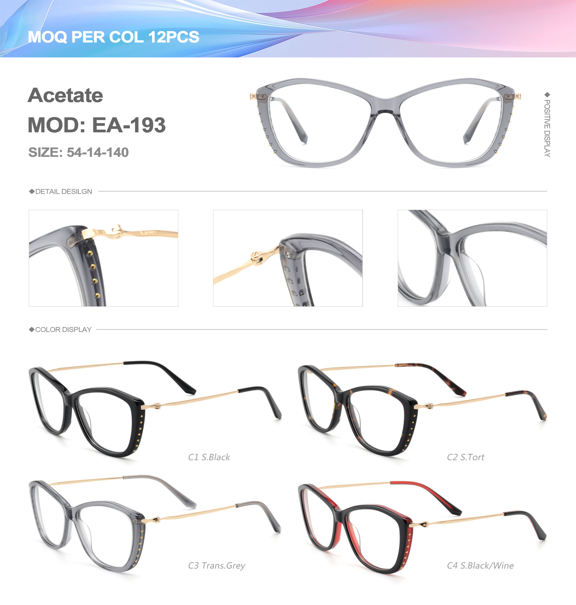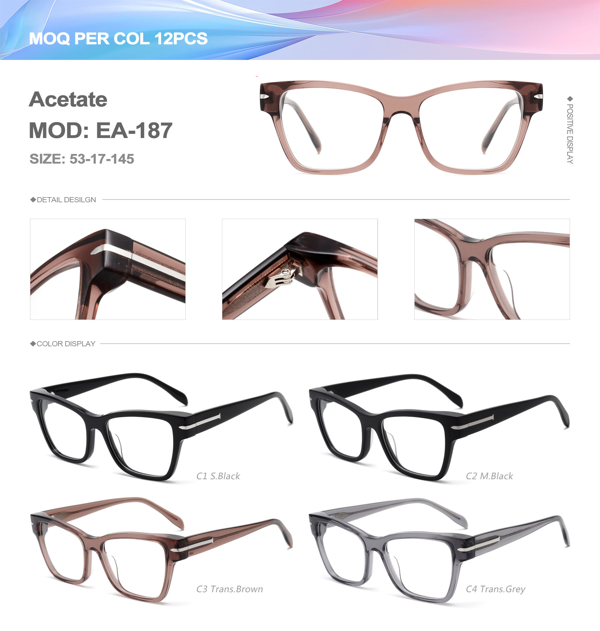 Acetate is an ideal material for eyeglass frames, it is durable and does not cause skin irritation. The acetate frame is made with a unique technology that turns plant material into durable plastic.