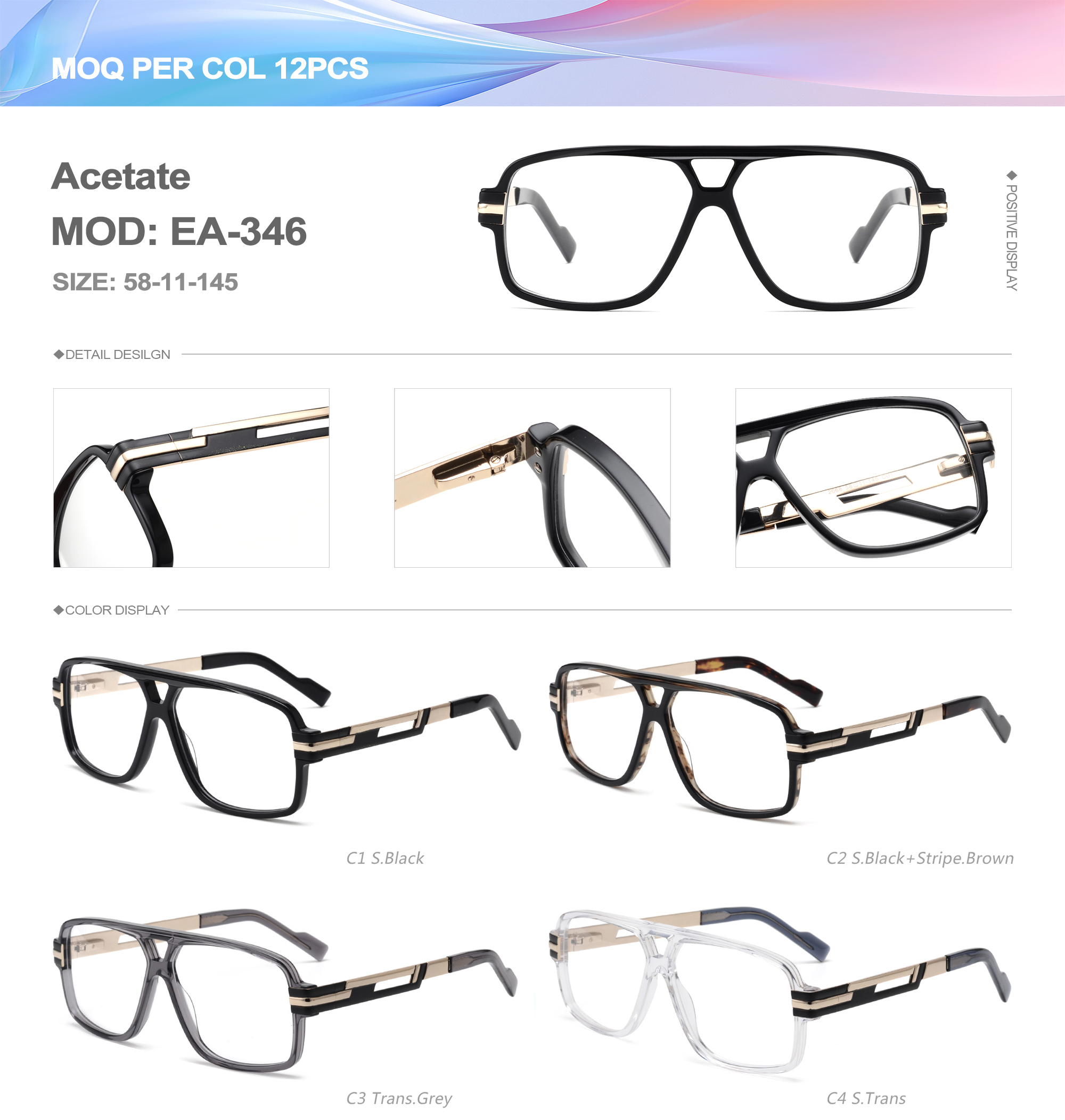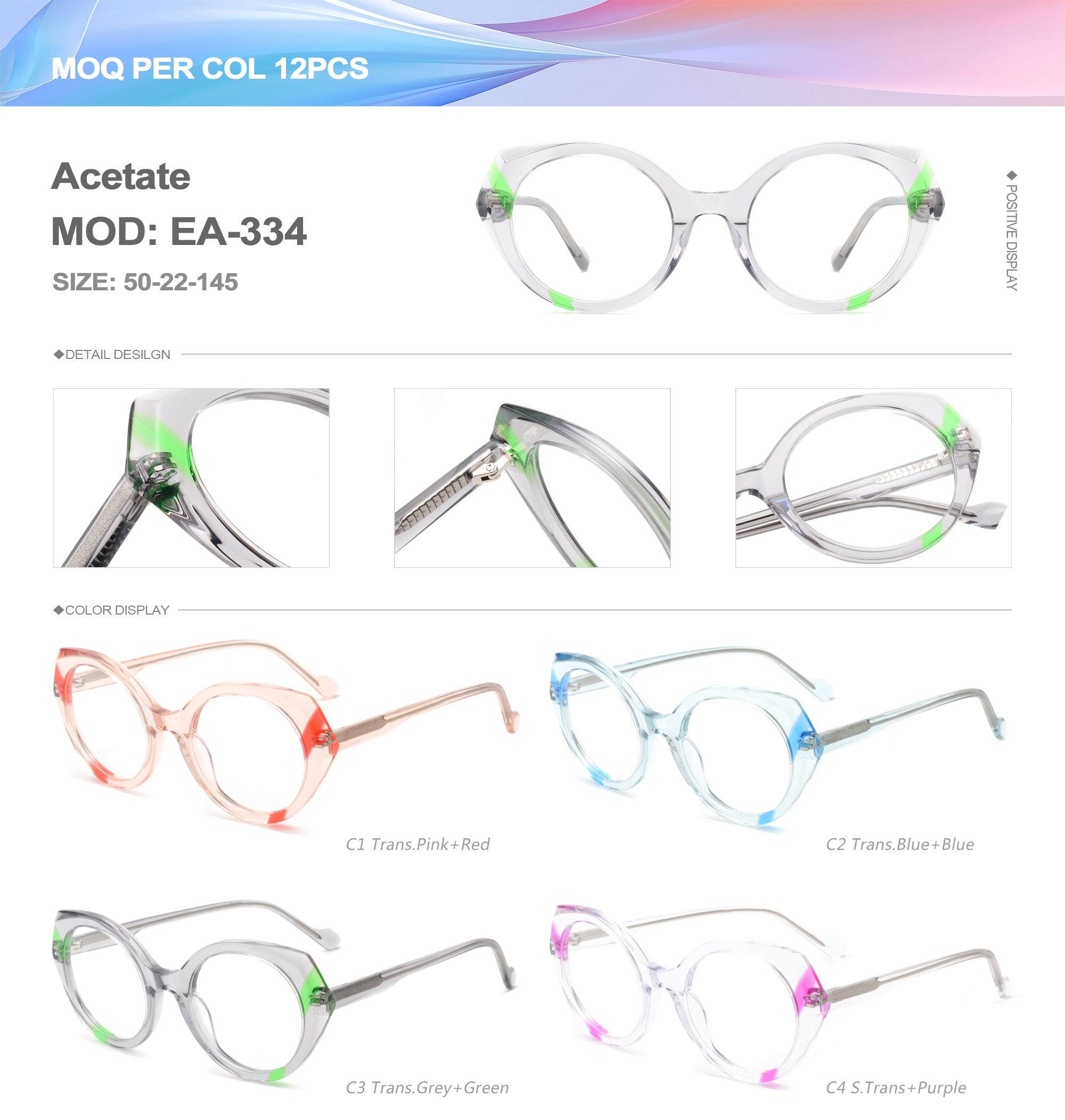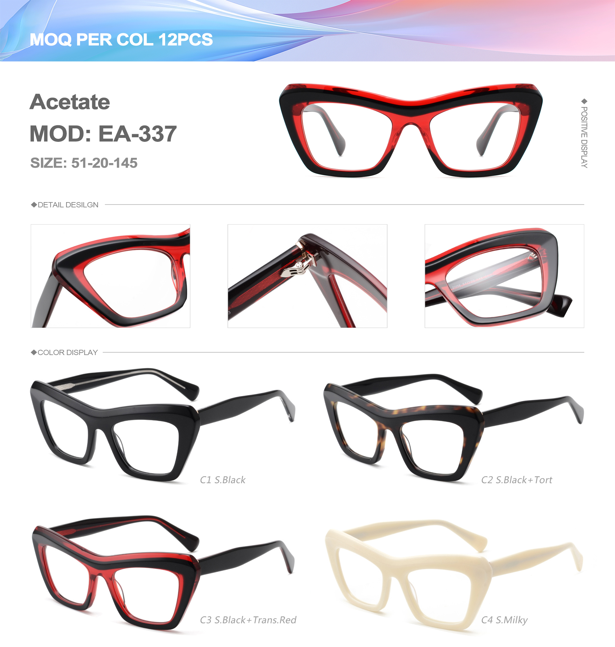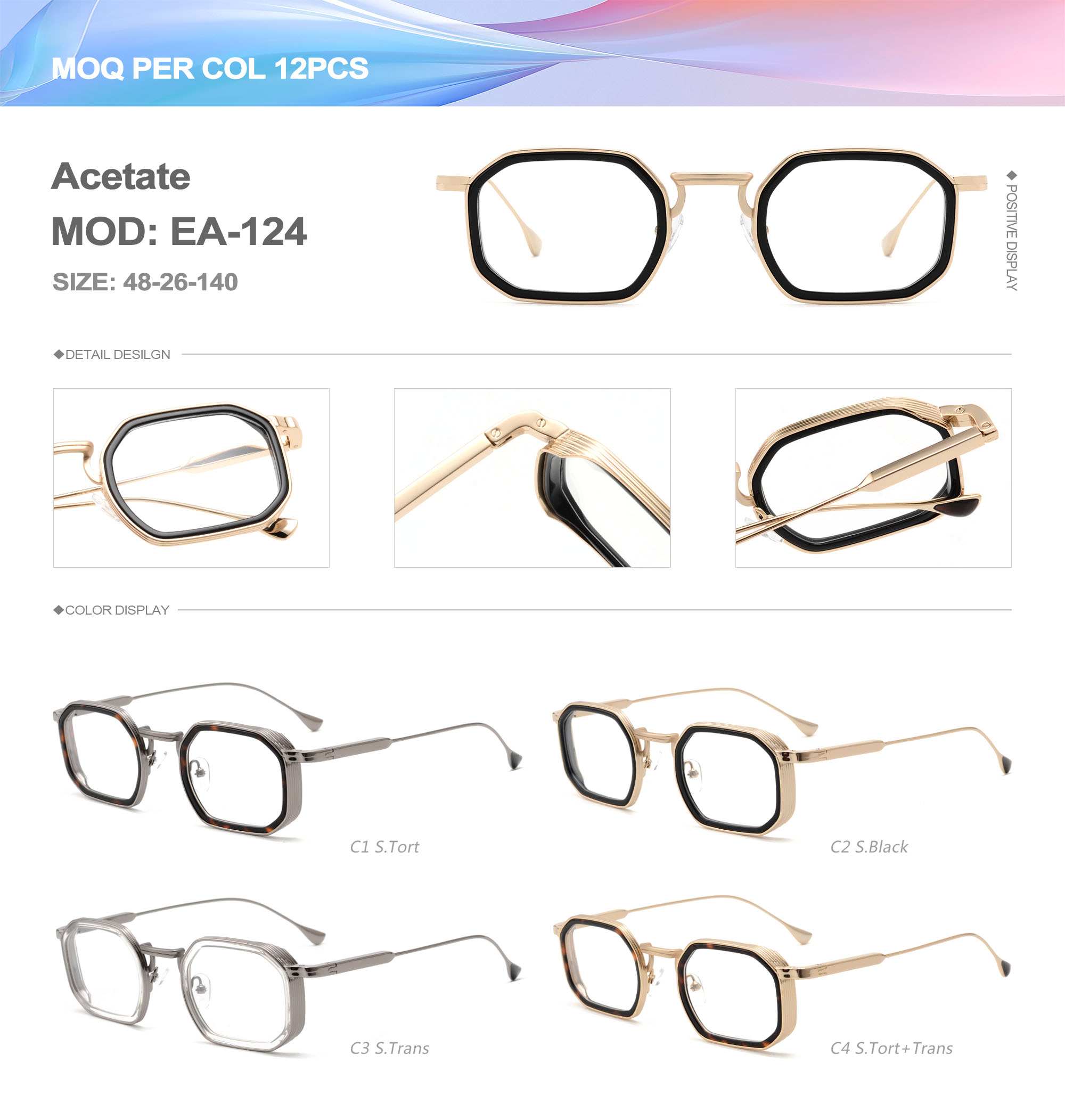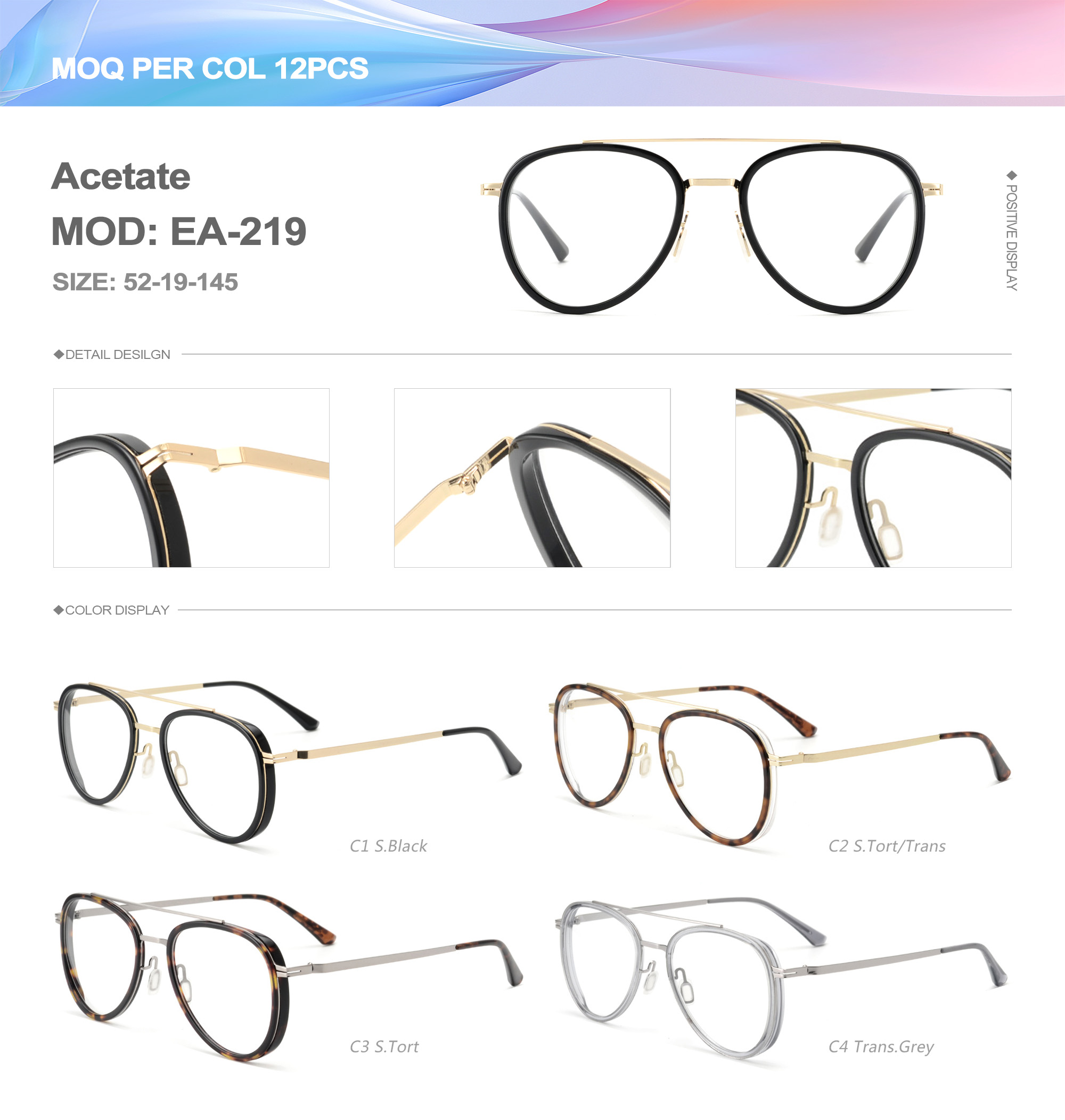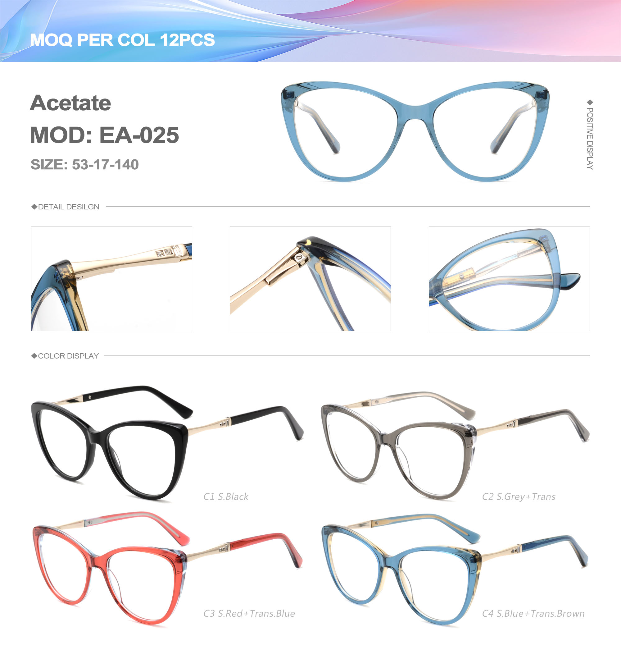 Acetate is an ideal material for eyeglass frames, it is durable and does not cause skin irritation. The acetate frame is made with a unique technology that turns plant material into durable plastic.