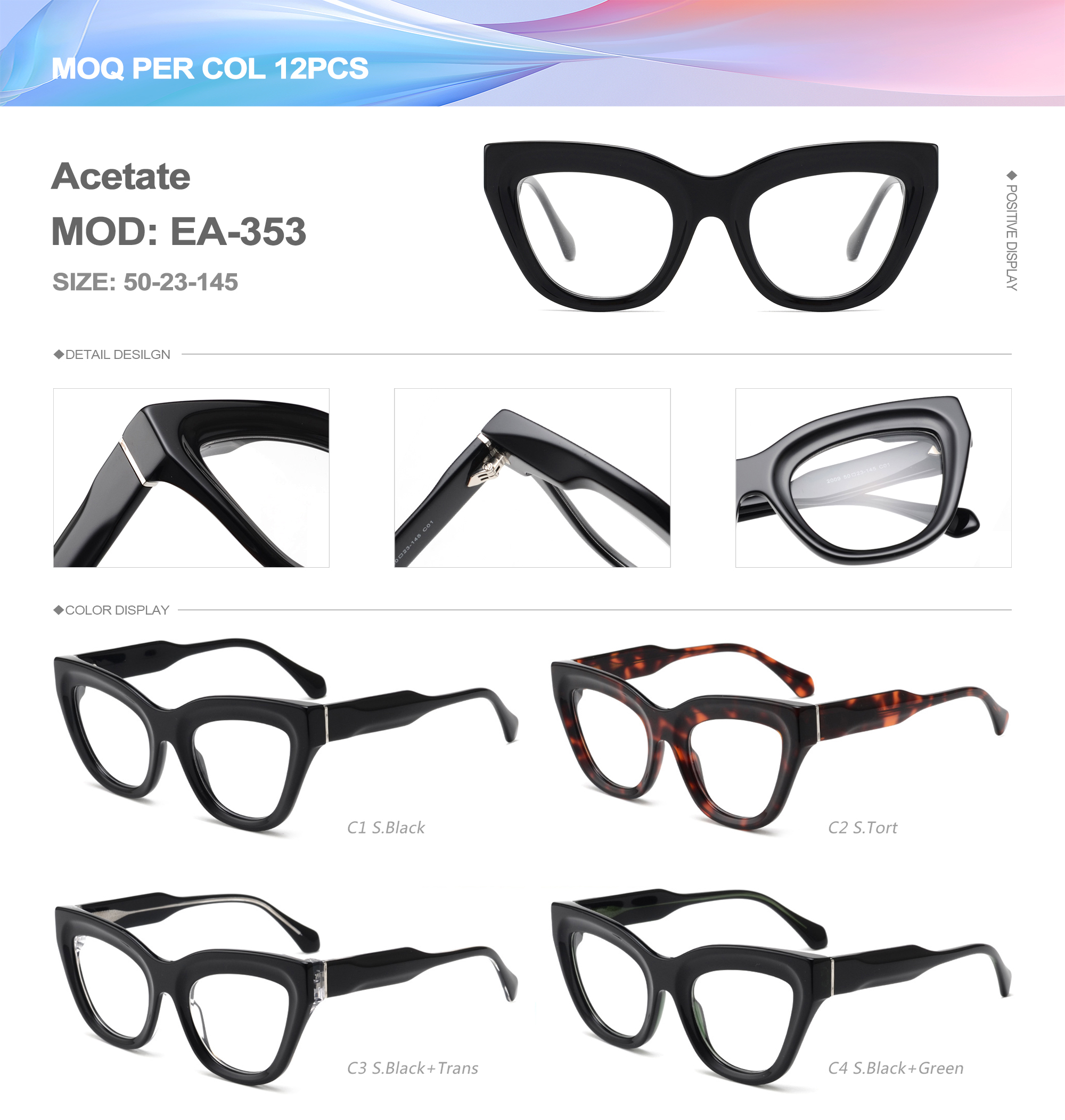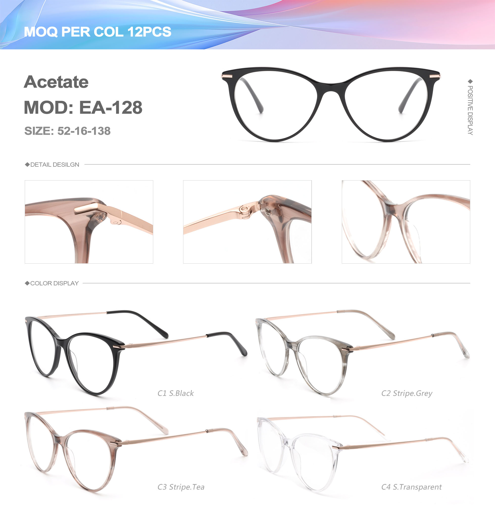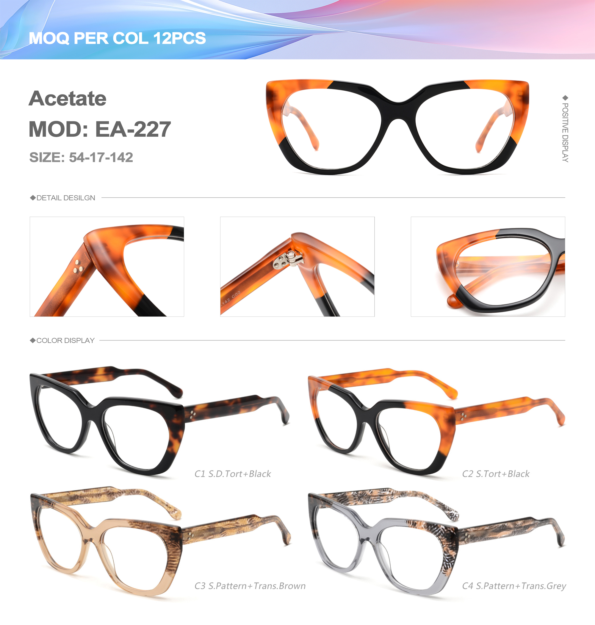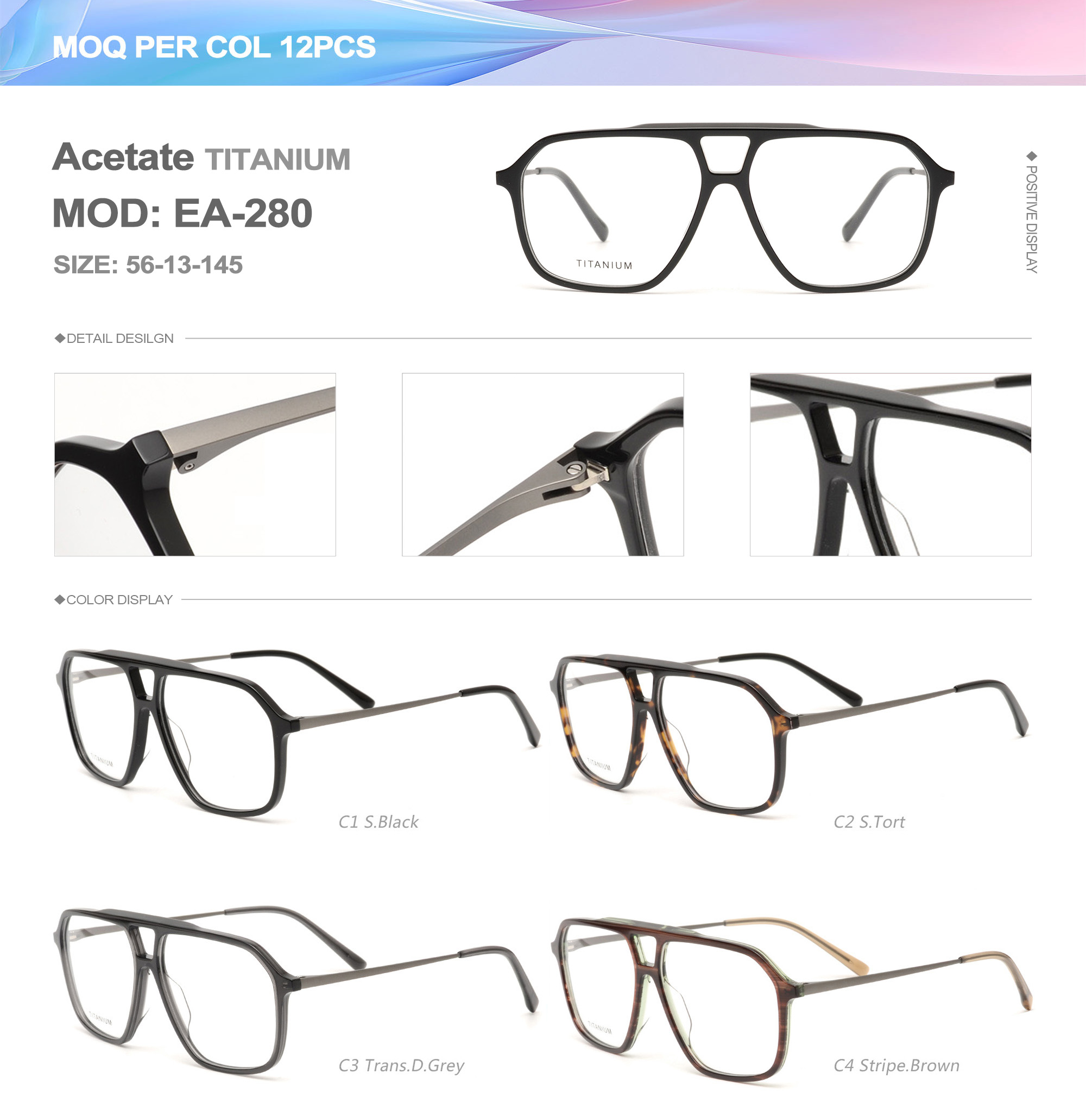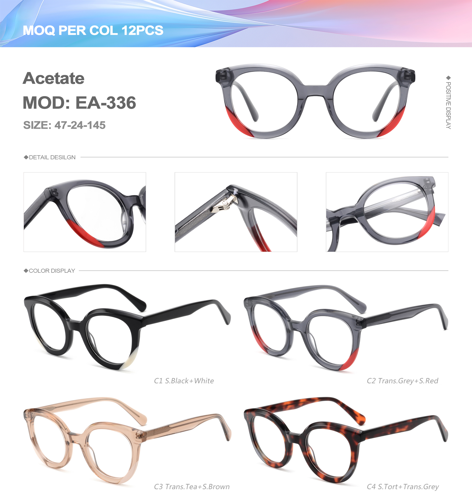 Acetate is an ideal material for eyeglass frames, it is durable and does not cause skin irritation. The acetate frame is made with a unique technology that turns plant material into durable plastic.