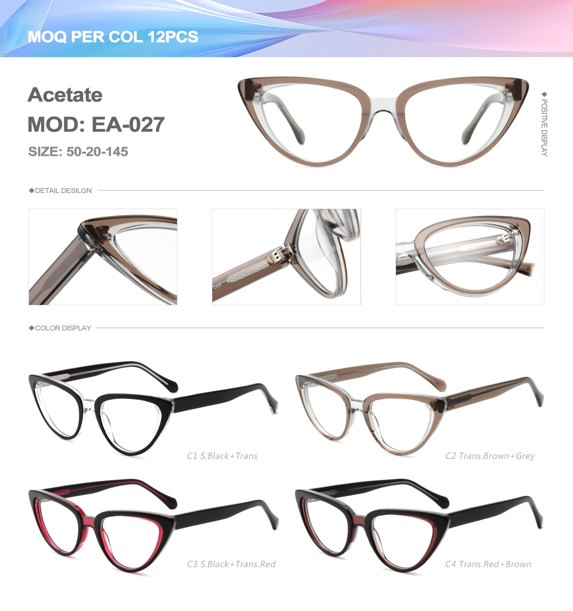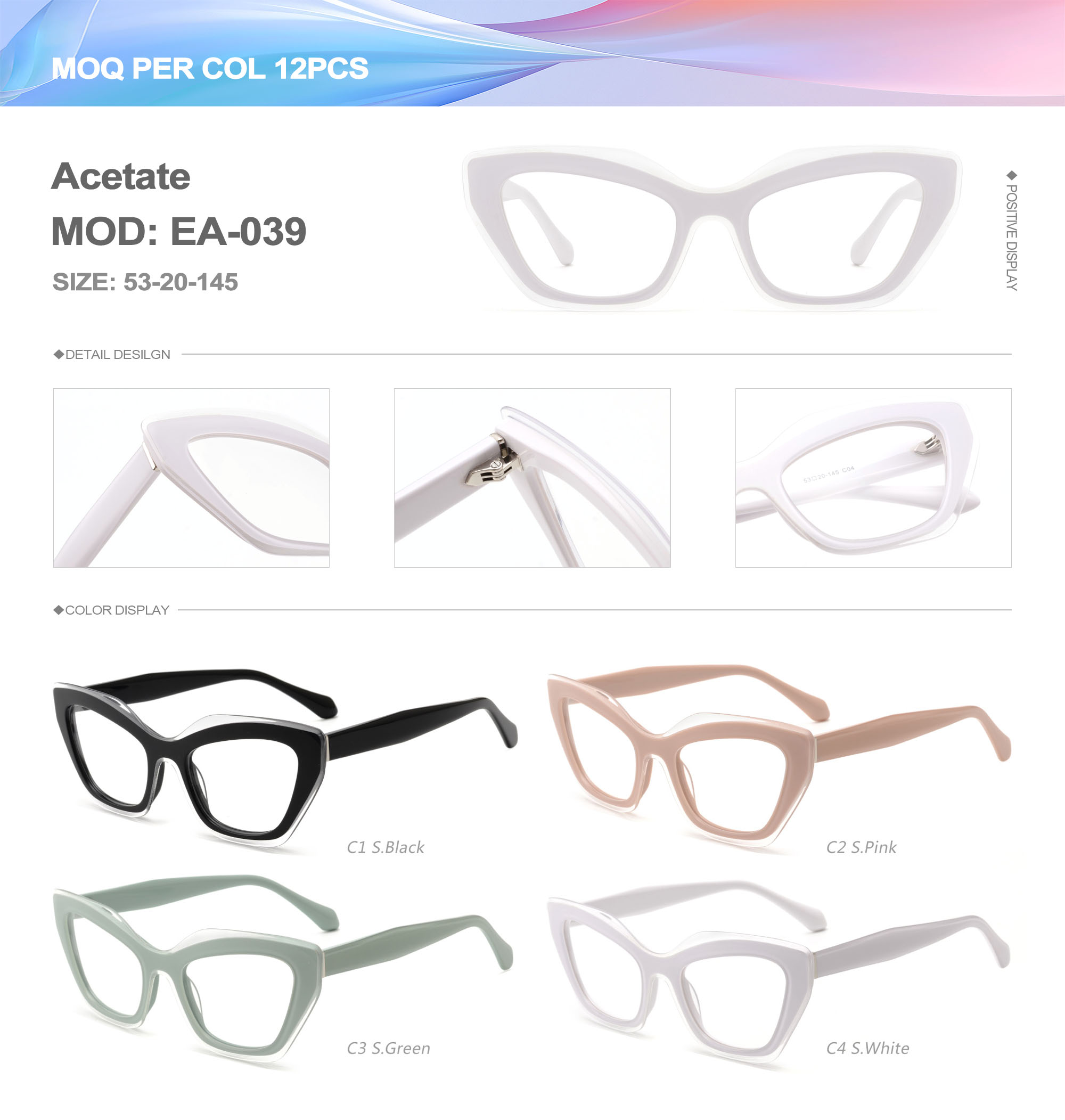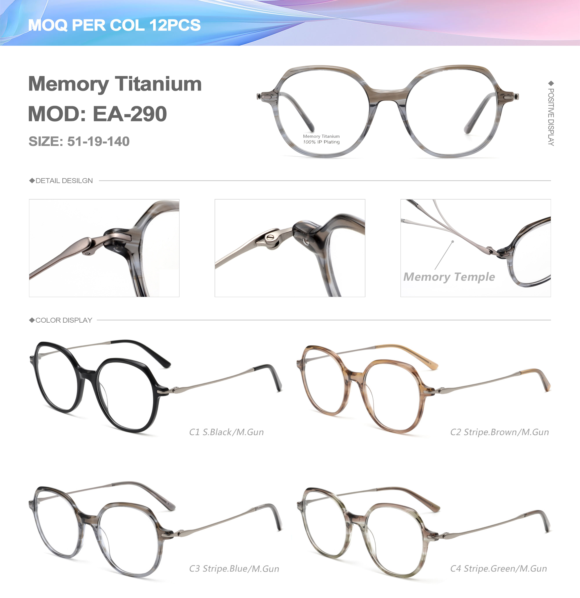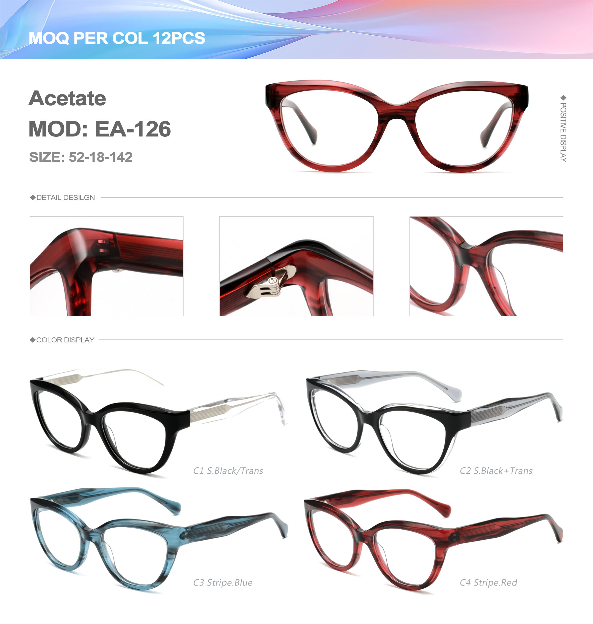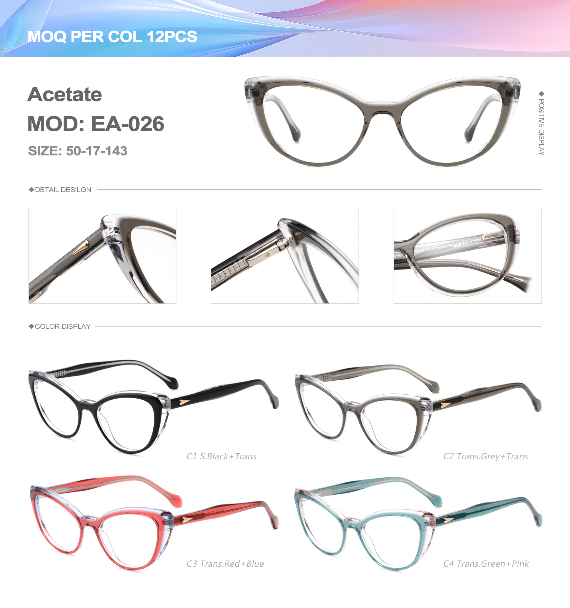 Acetate is an ideal material for eyeglass frames, it is durable and does not cause skin irritation. The acetate frame is made with a unique technology that turns plant material into durable plastic.