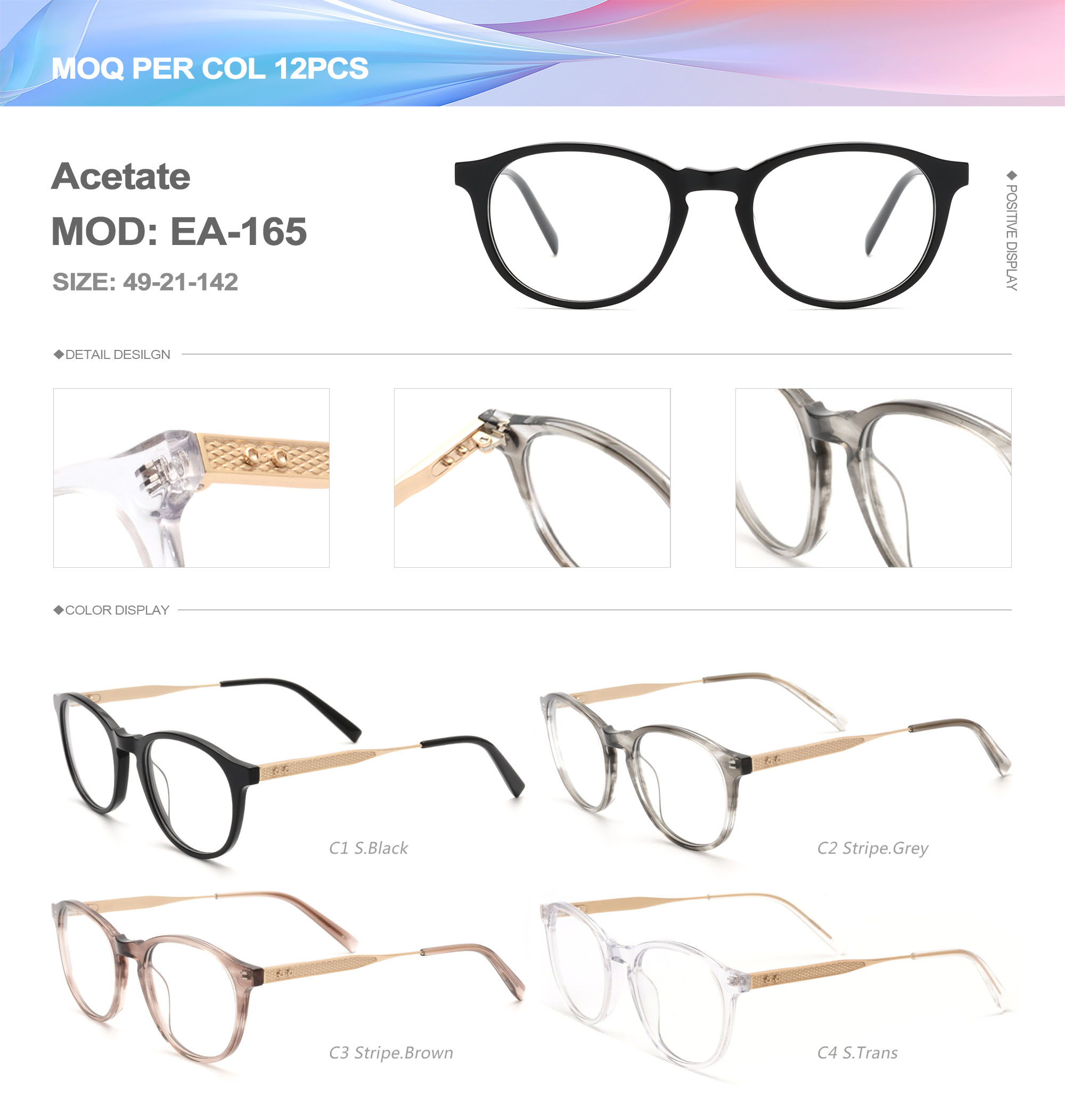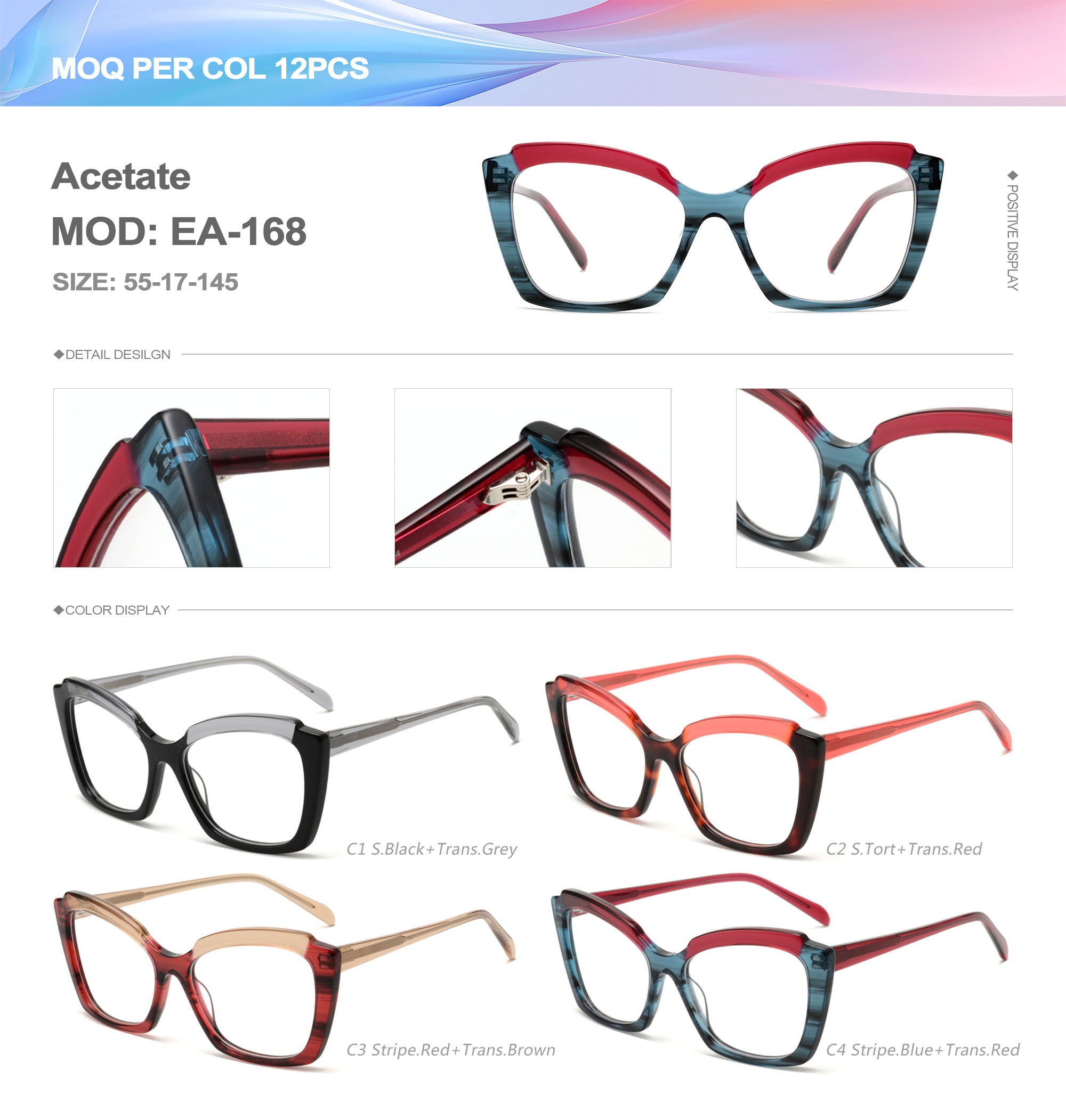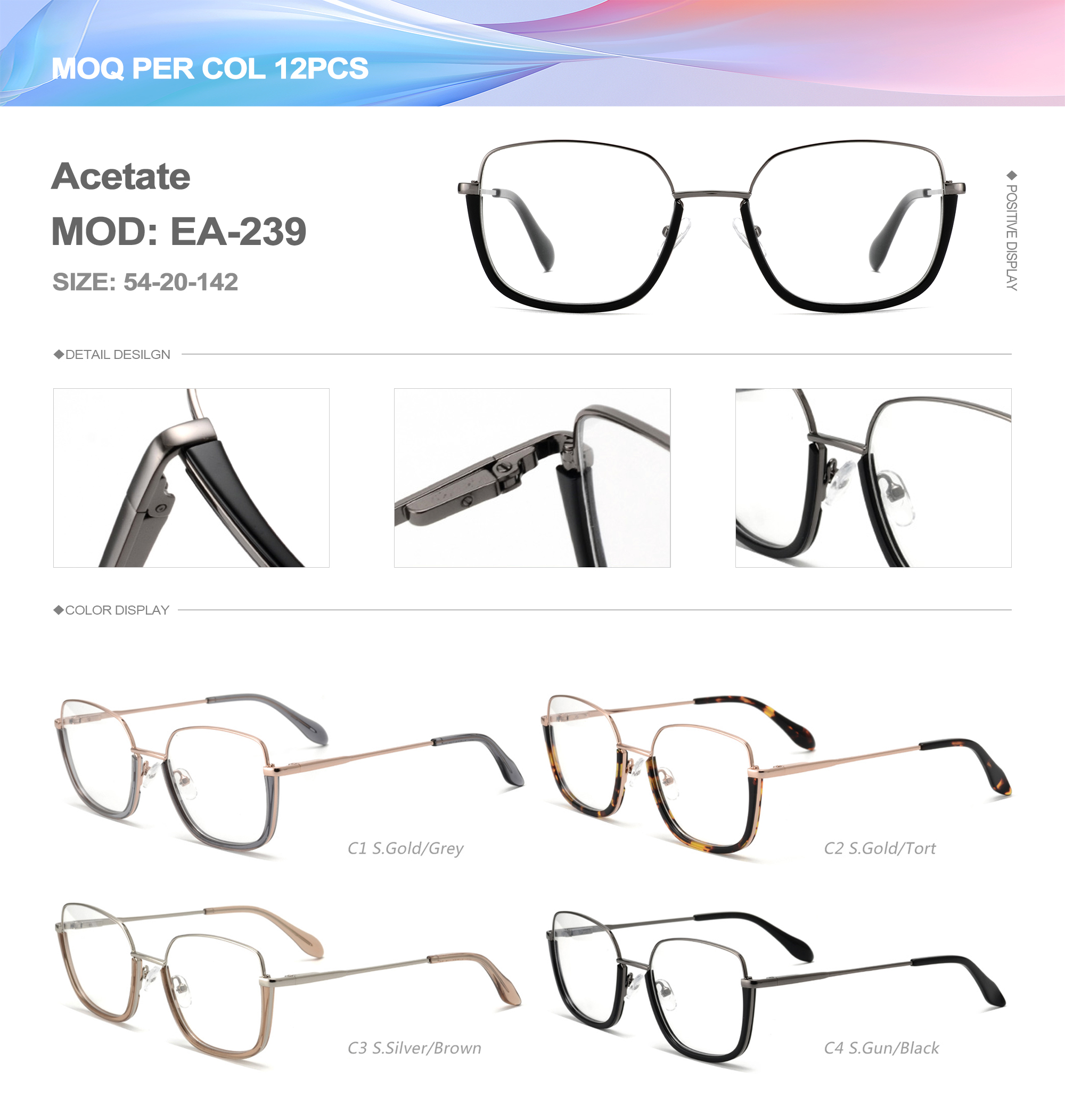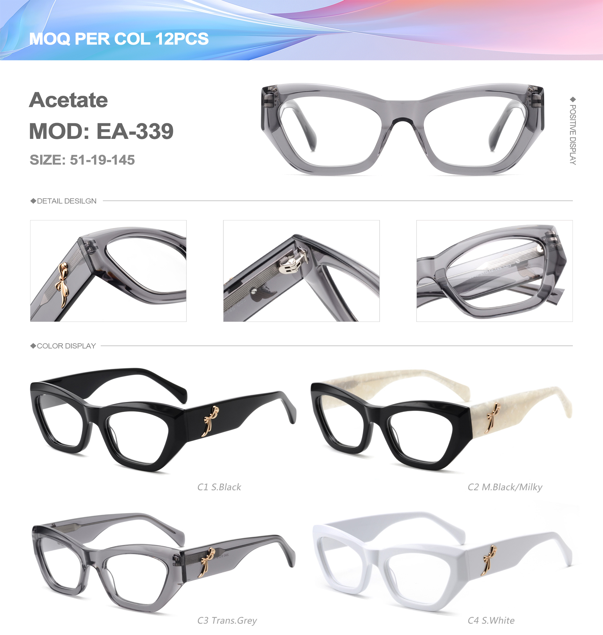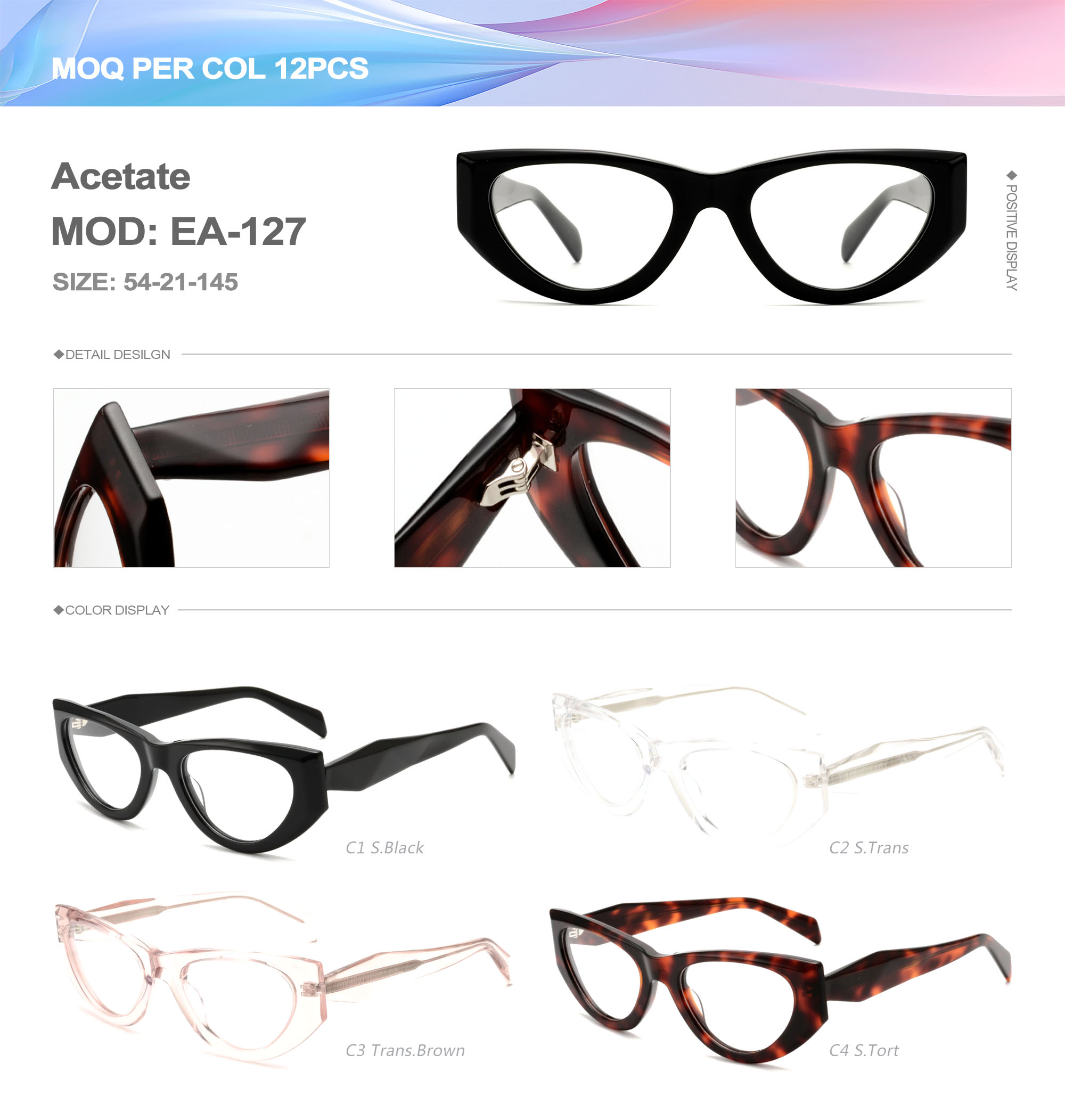 Acetate is an ideal material for eyeglass frames, it is durable and does not cause skin irritation. The acetate frame is made with a unique technology that turns plant material into durable plastic.